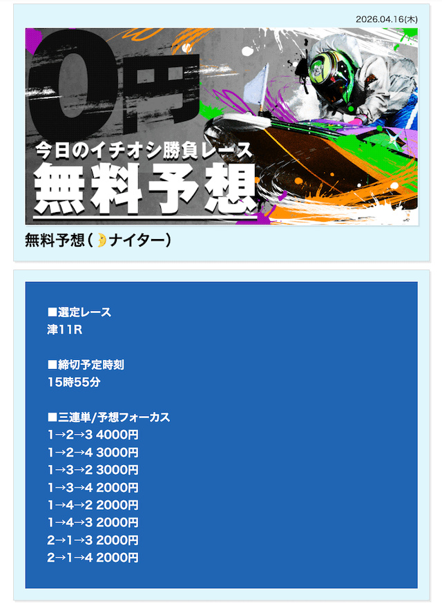 ただ、投資効率という項目が追加されています。有料予想は舟券代に加えて情報料金がかかるので、ユーザーの負担度が考慮されています。※更新頻度は毎日