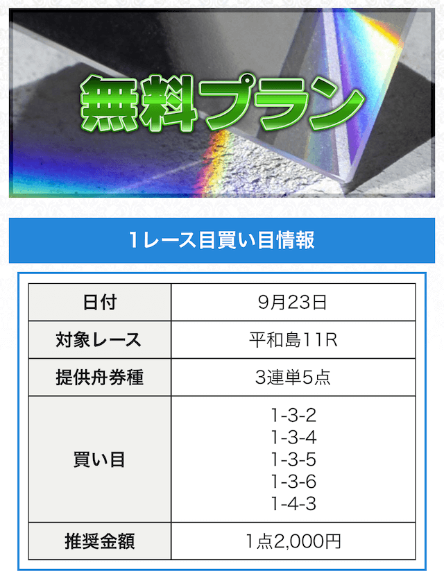 - 軍資金に余裕がある人はいきなり有料予想に参加するのおすすめかも!っていうのも、登録後24時間はポイントポイントが1.5倍〜2倍になるキャンペーンがやってるんだよ!!登録時のポイントも活用すれば上位プランにかなりお得に参加できる!おれは登録後2日目で収支140万円っす〜♪投稿日:2023/10/04