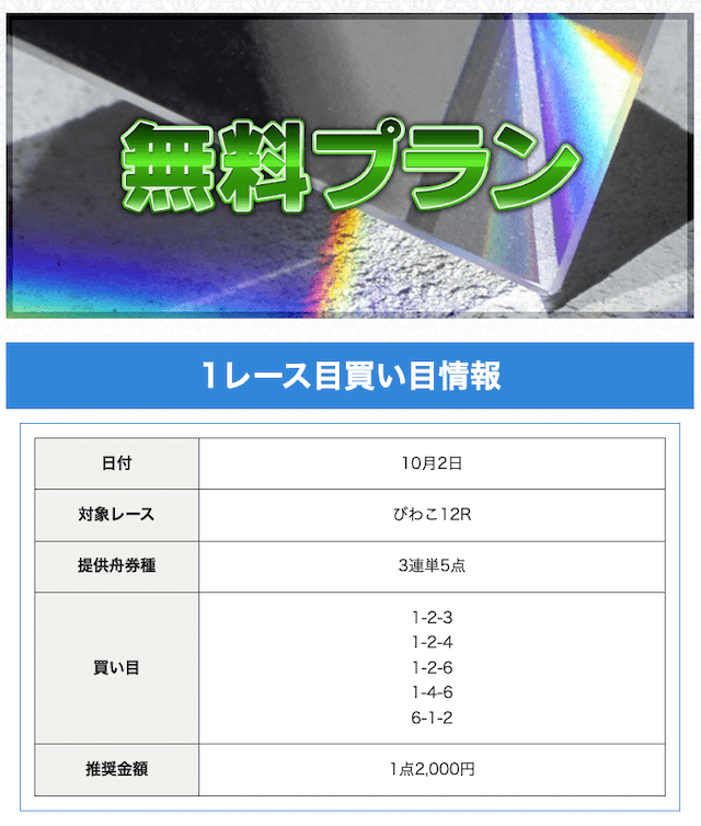 まずは買い目だけ受け取って、結果と照らし合わせてみてはいかがでしょうか?