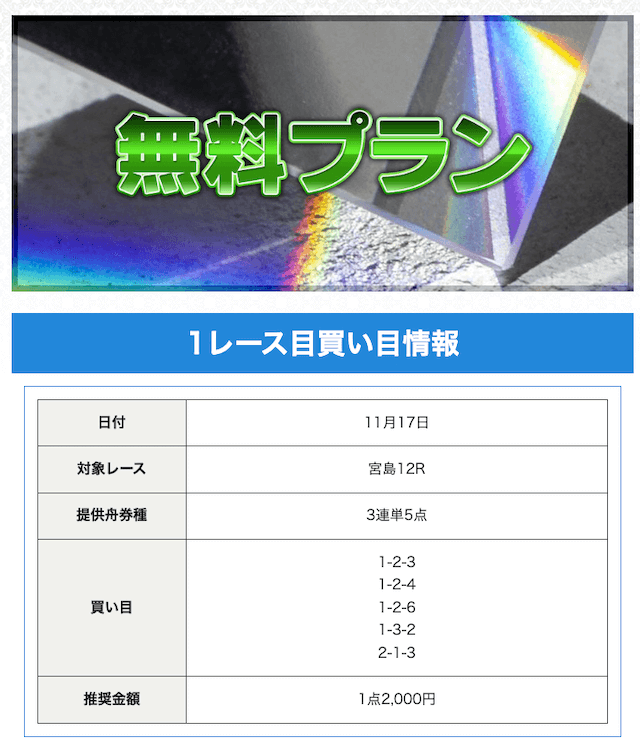| 的中実績の信憑性 | 参加したプランの的中実績の正確性 | 1.0点 |