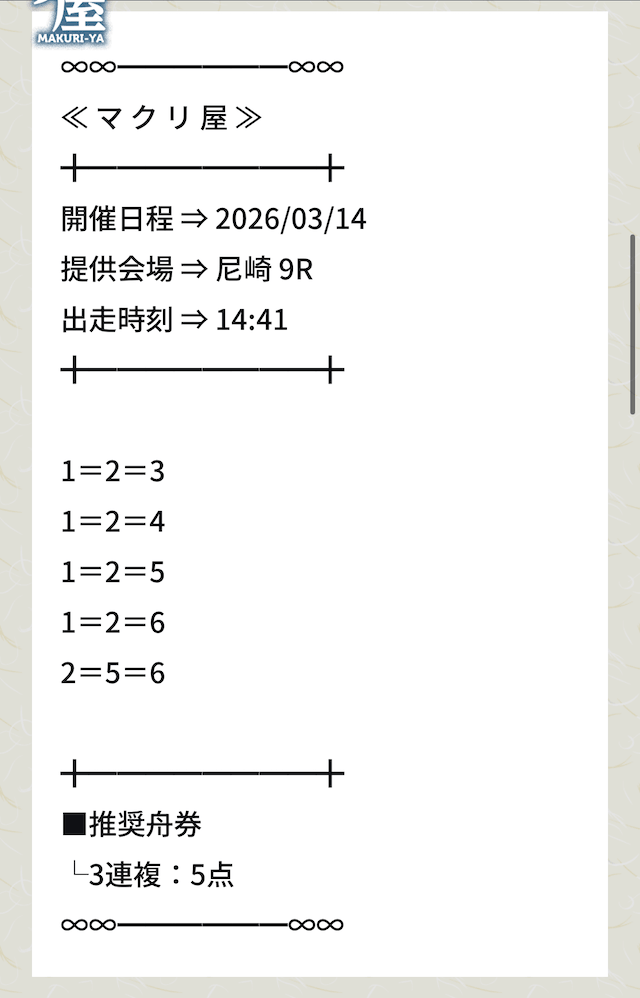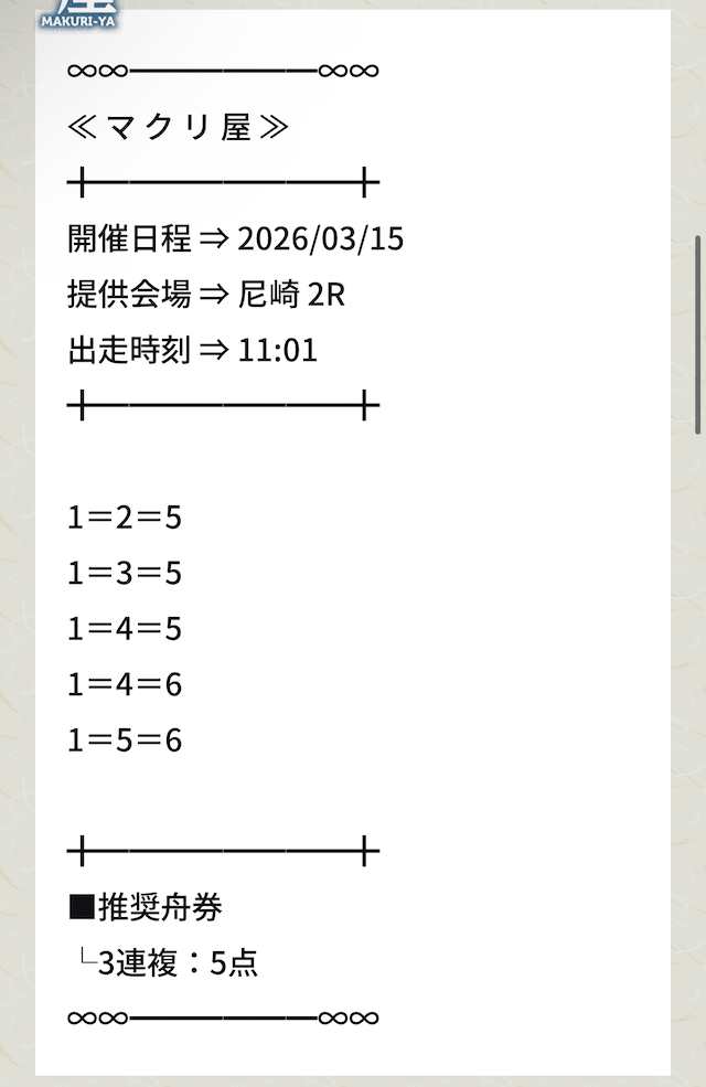 今回は、そんなマクリ屋の無料予想結果をご紹介します。