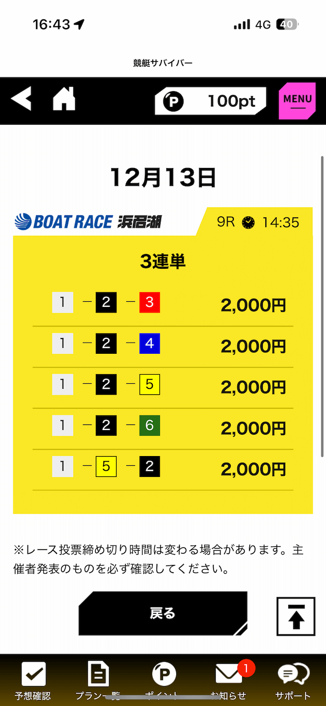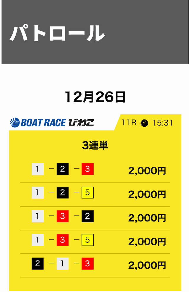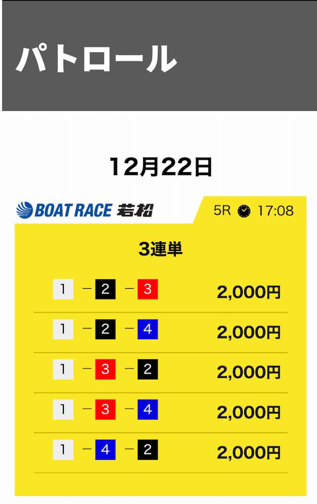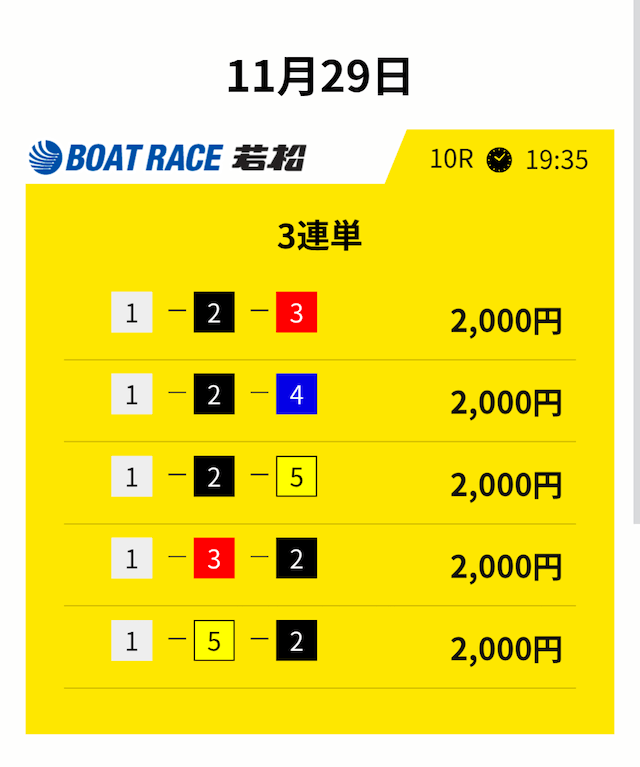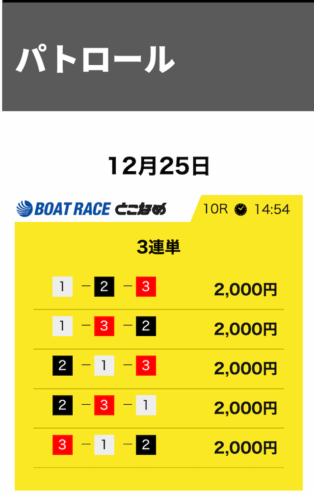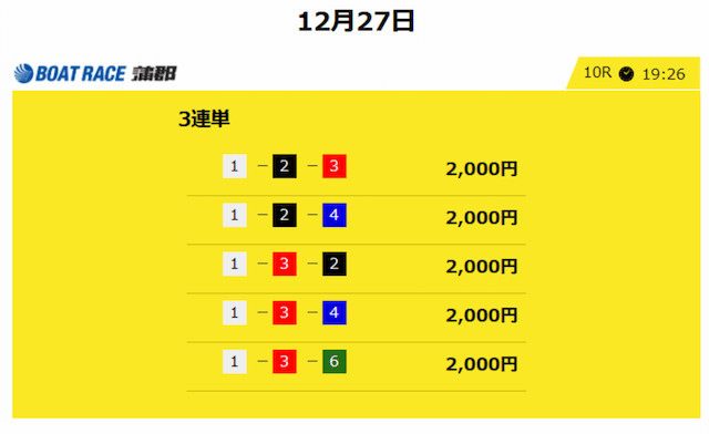 前提として、荒れないレースをピンポイントで拾っているのが凄ぇ。①号艇にA1が座ってる番組が多いが、外枠にもきっちり実力者が配置されてる。そこで1Mの展開を読み切って、ヒモを外さないのが見事だな。