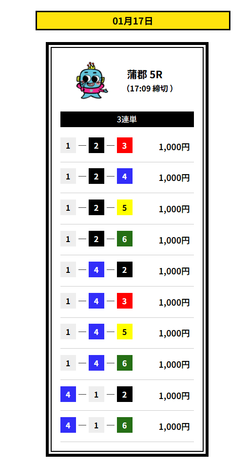 合計舟券代 210,000円