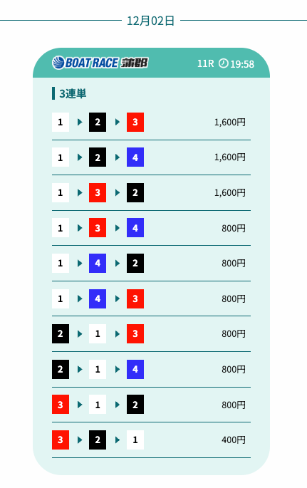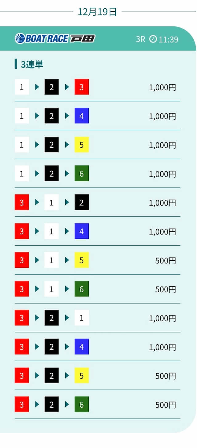 - 券種:3連単