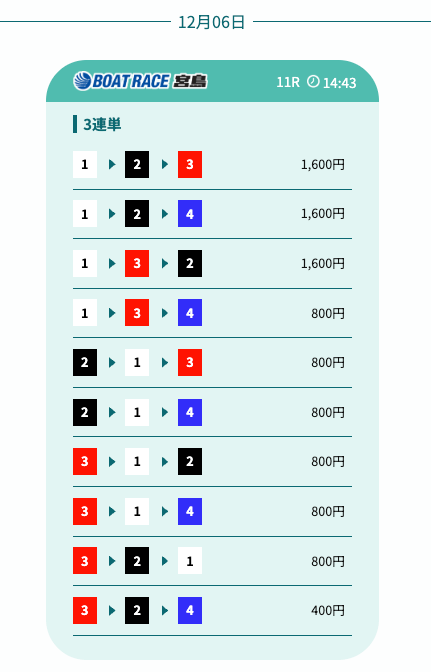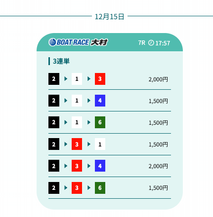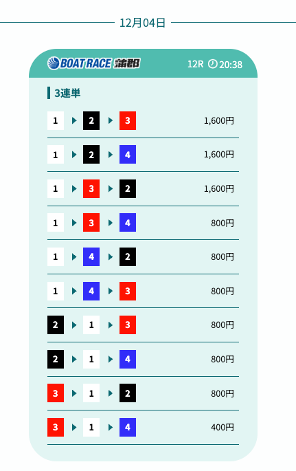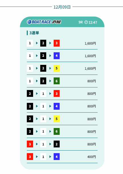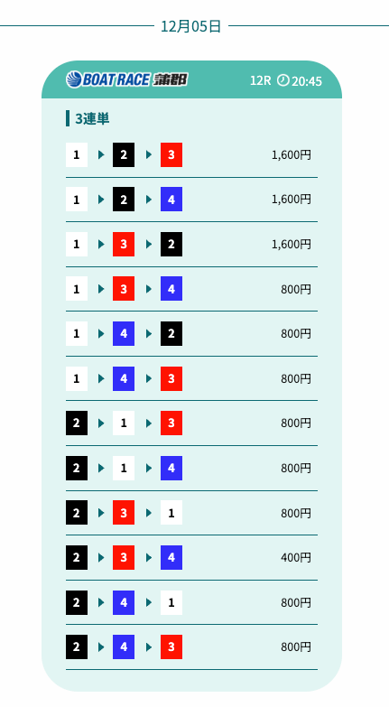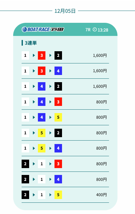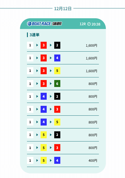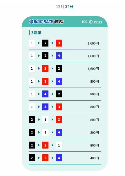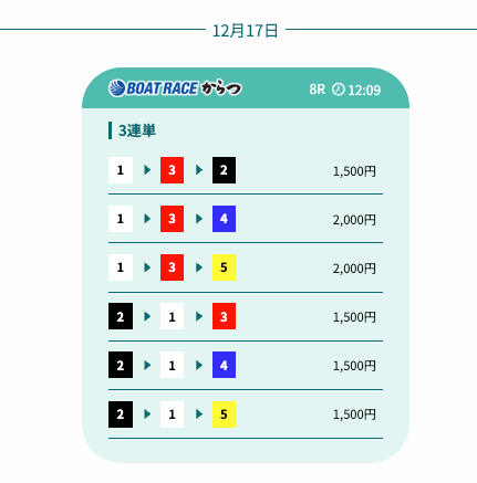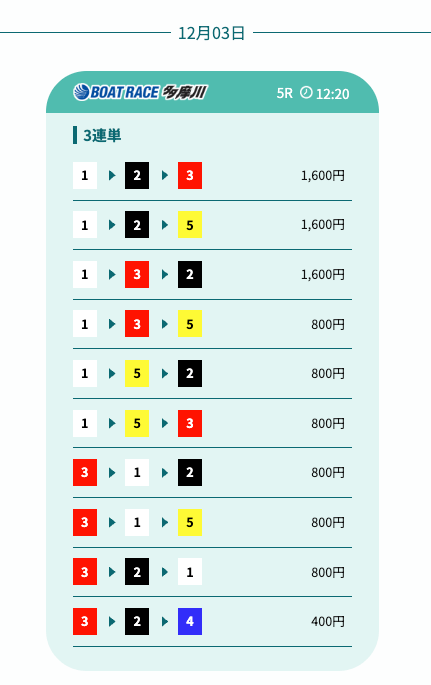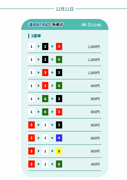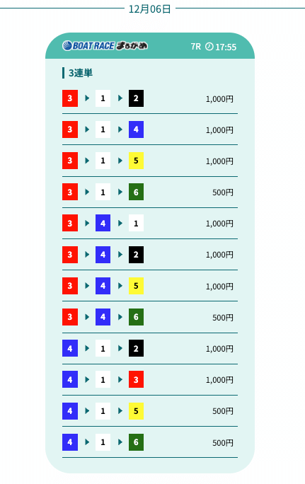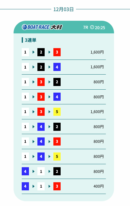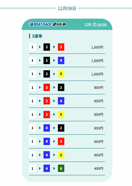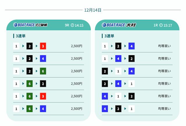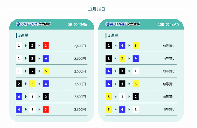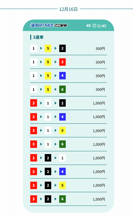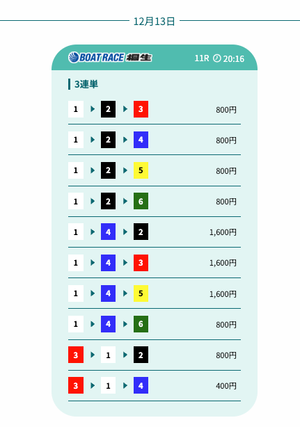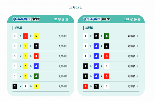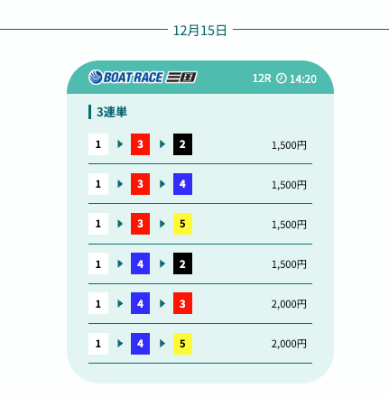 - 予想の公開後、締切までの時間が近いことがあり、急いで舟券を買う必要があったかな〜。そこは注意したいところ。投稿日:2025/12/07