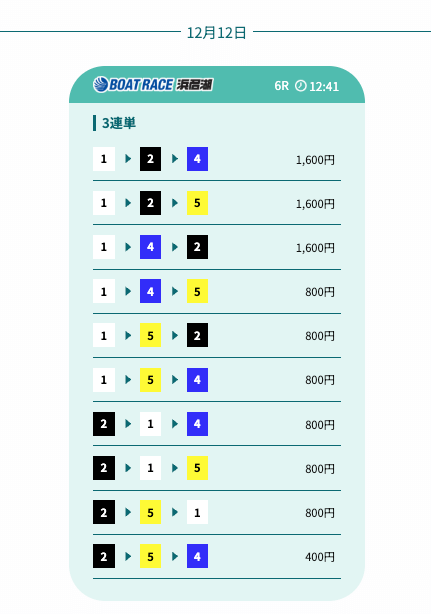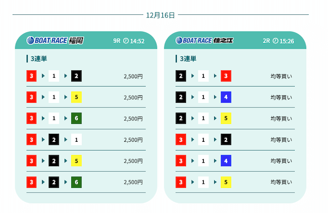 匿名資金配分が組まれていて、鉄板買い目でもトリガミを回避できる。色々と考えなくていいのは助かる。投稿日:2025/12/11