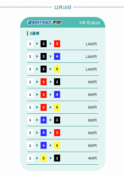 競艇戦線が参加した結果が以下の通り。