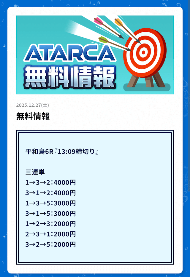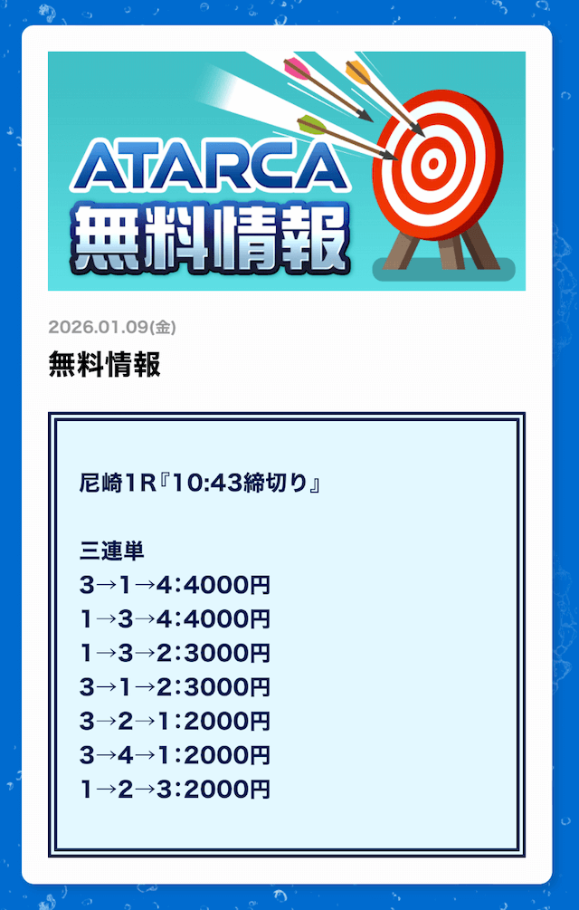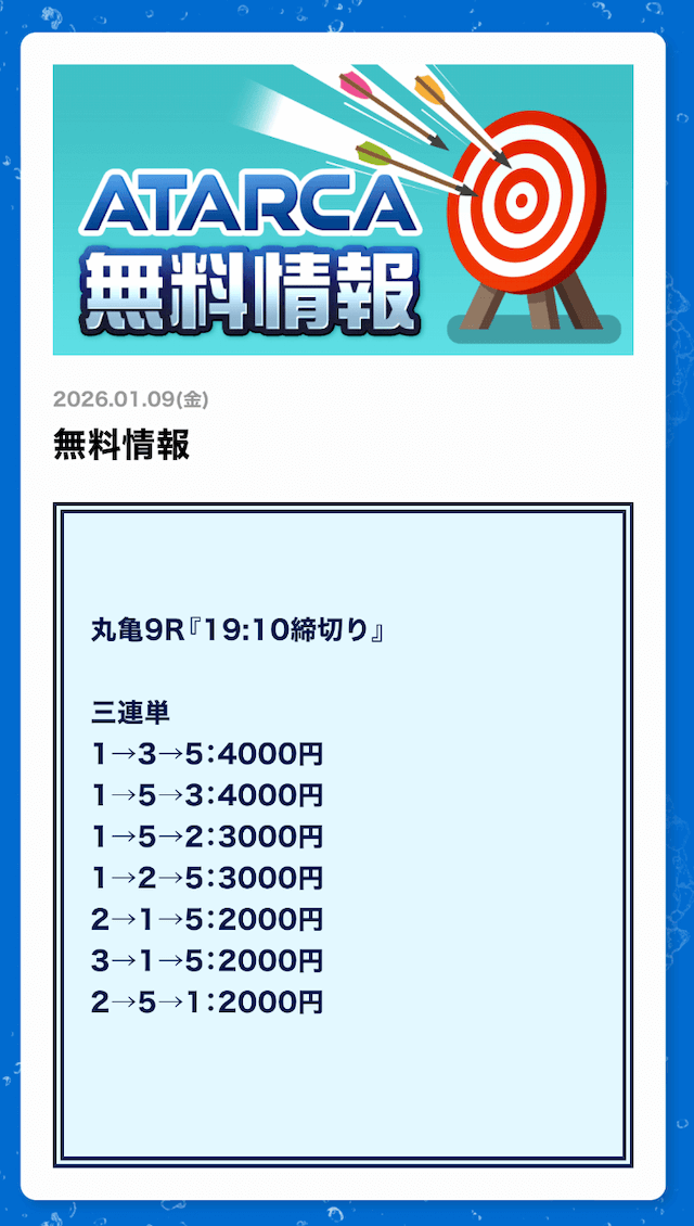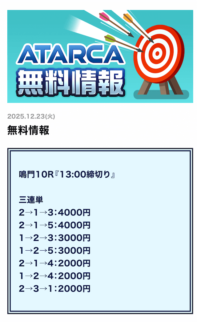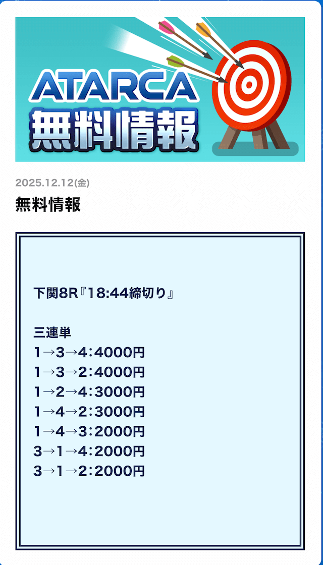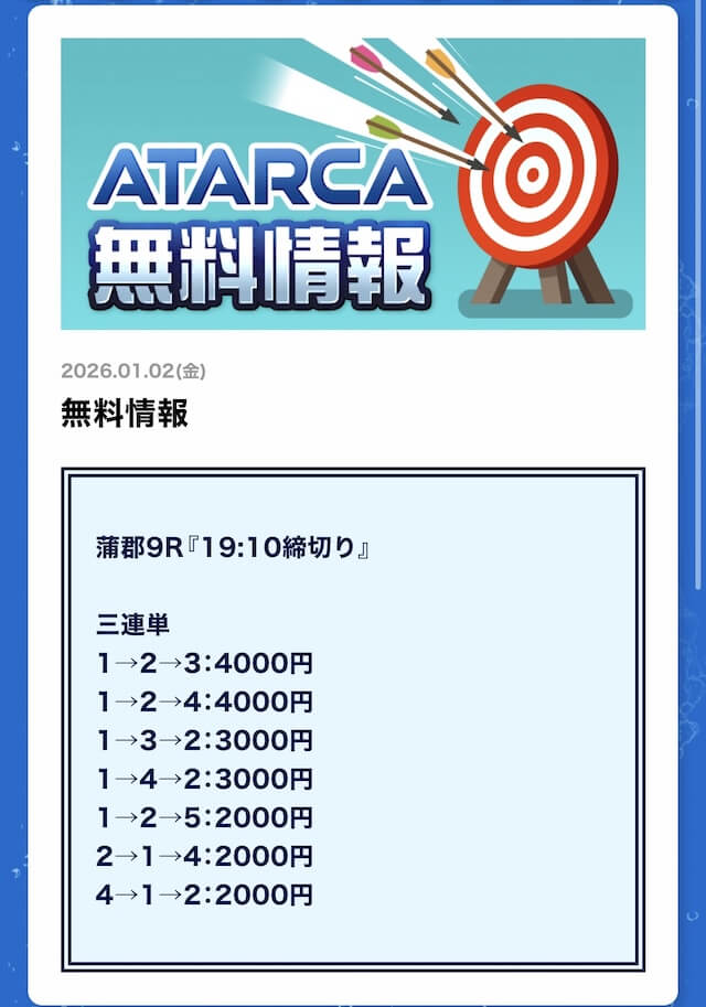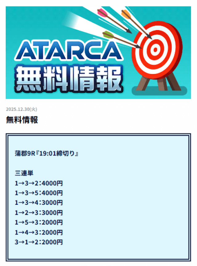 無料予想・有料情報ともに好成績を記録した競艇アタルカですが⋯