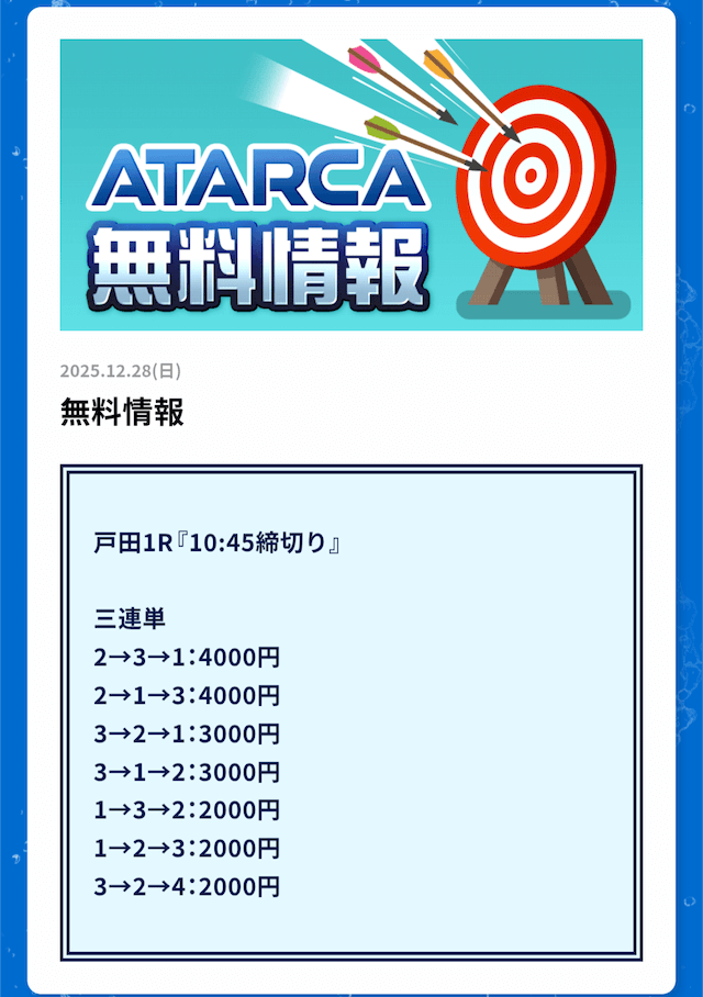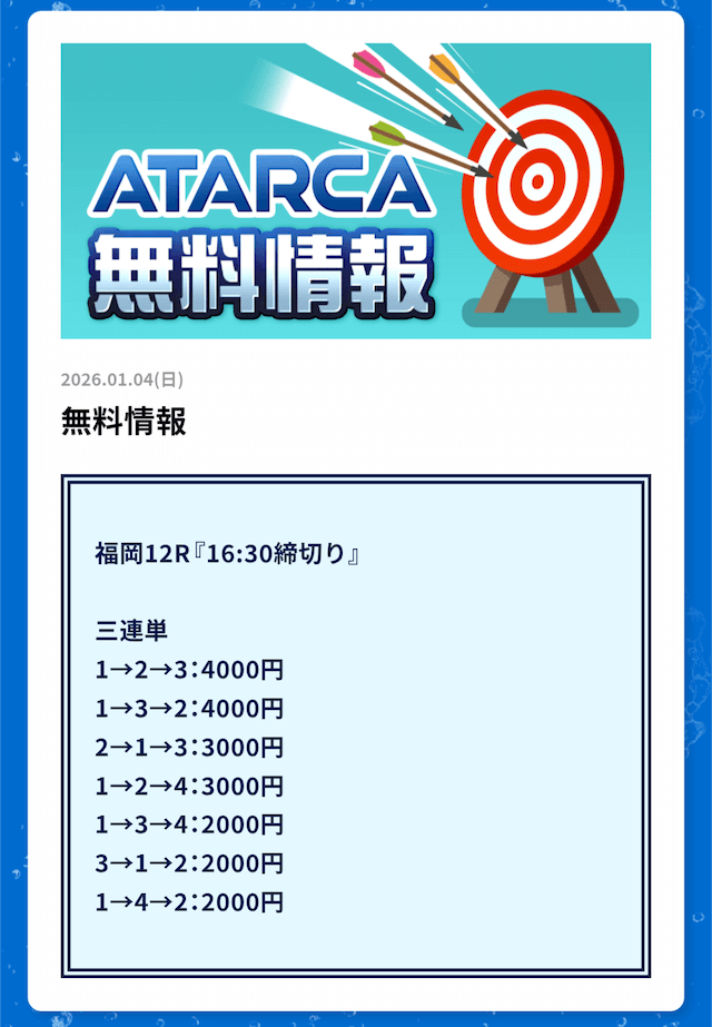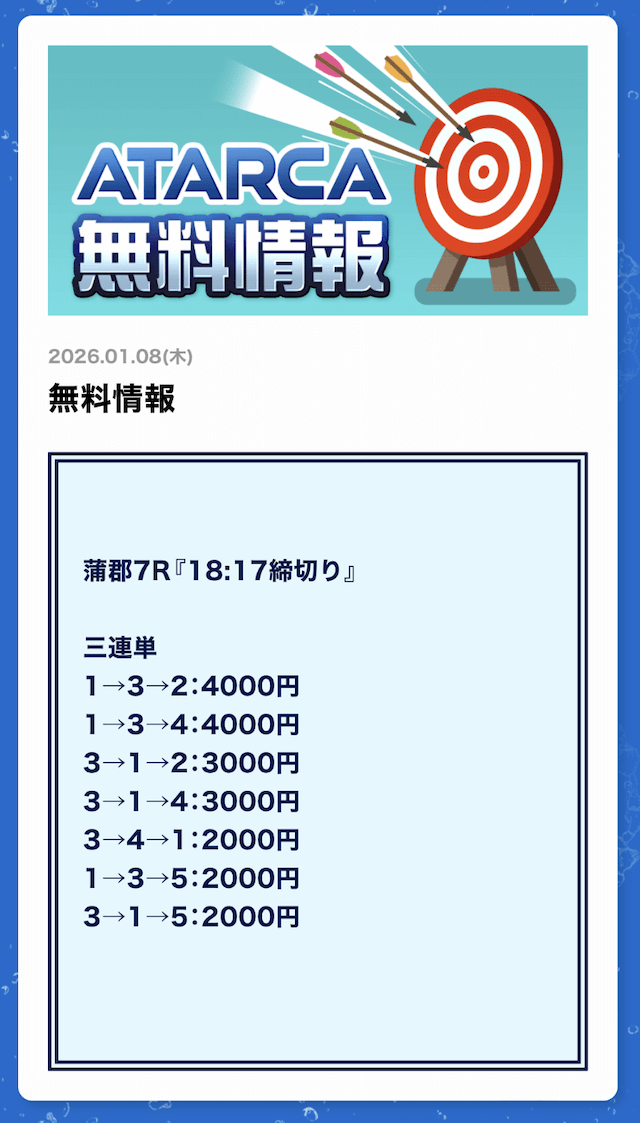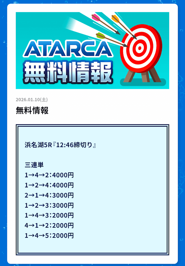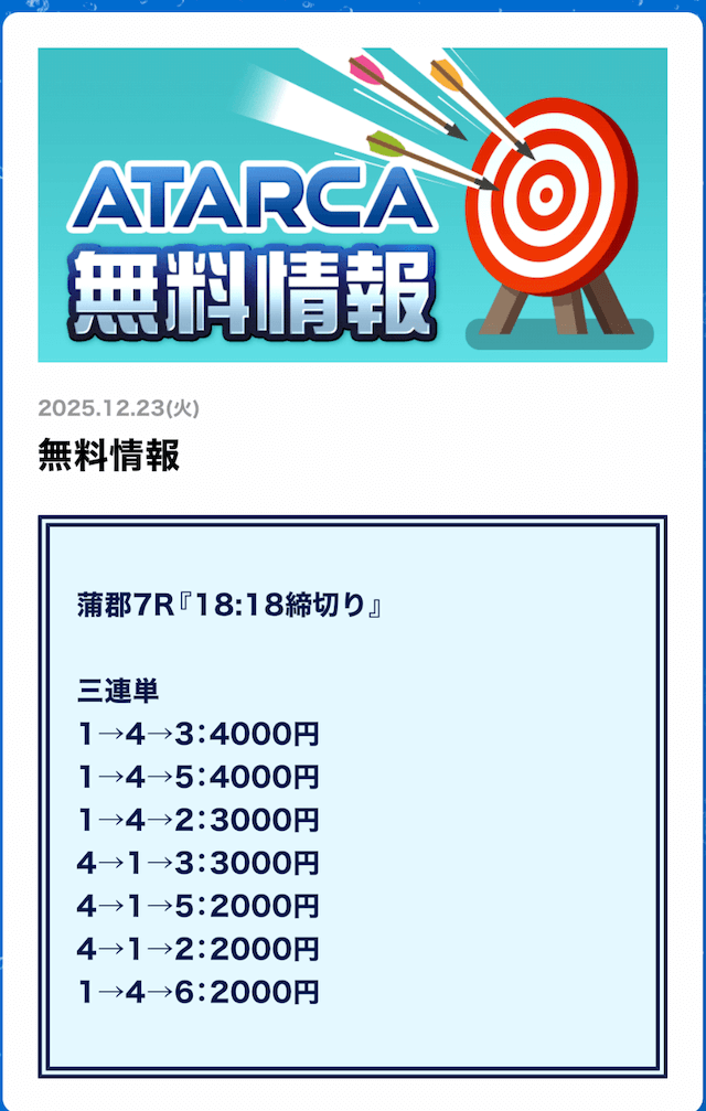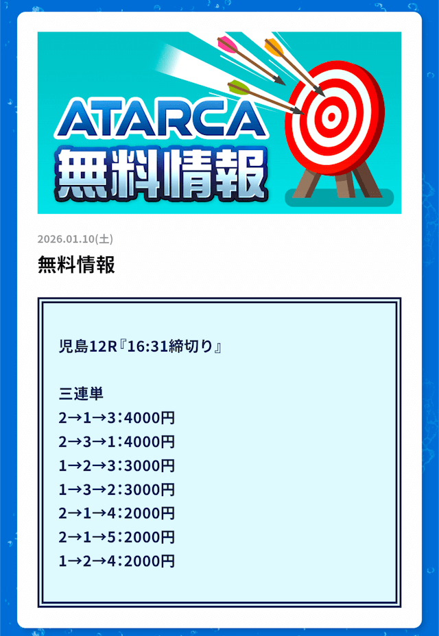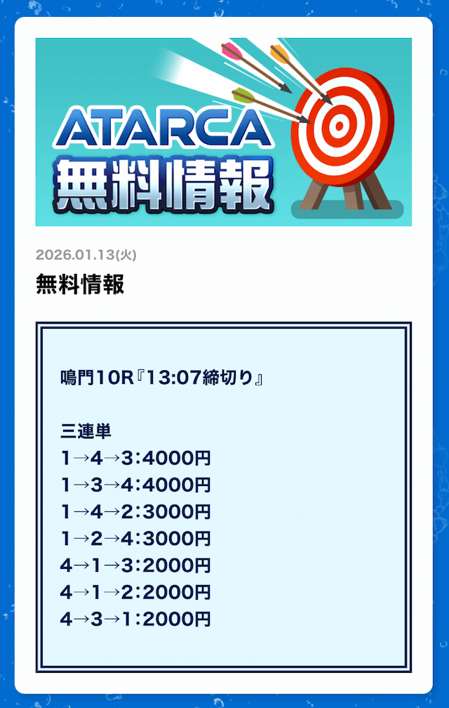 無料予想・有料情報ともに好成績を記録した競艇アタルカですが⋯