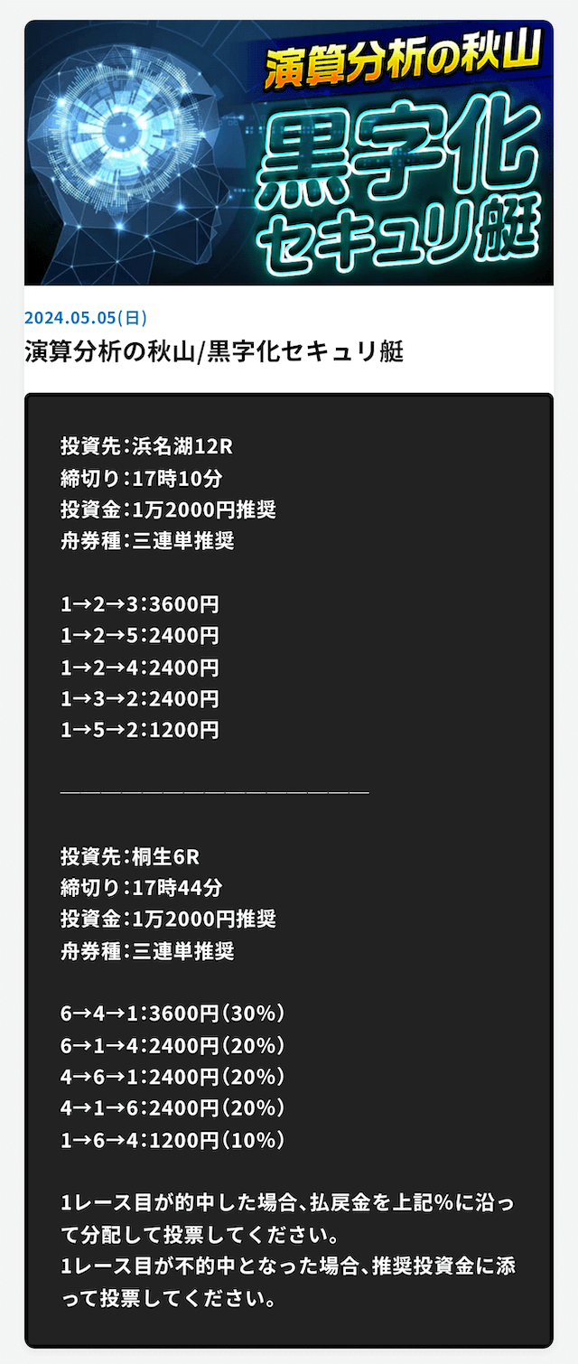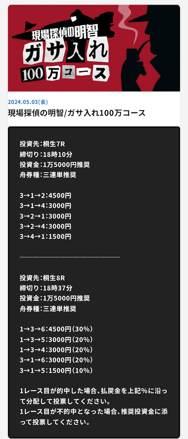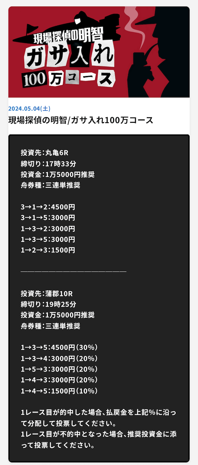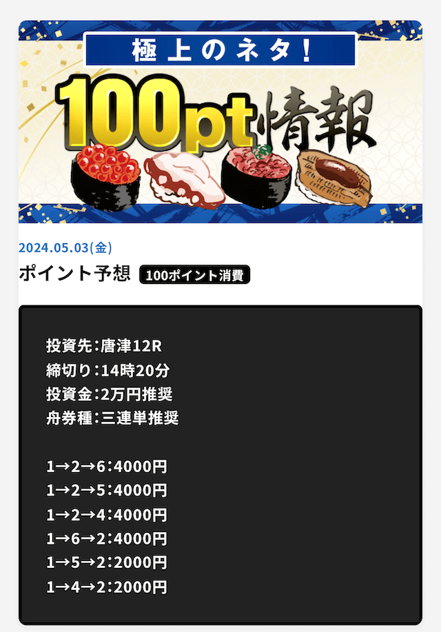 | 2024/5/3 ポイント情報 情報料金+舟券代 10,000円+円 |