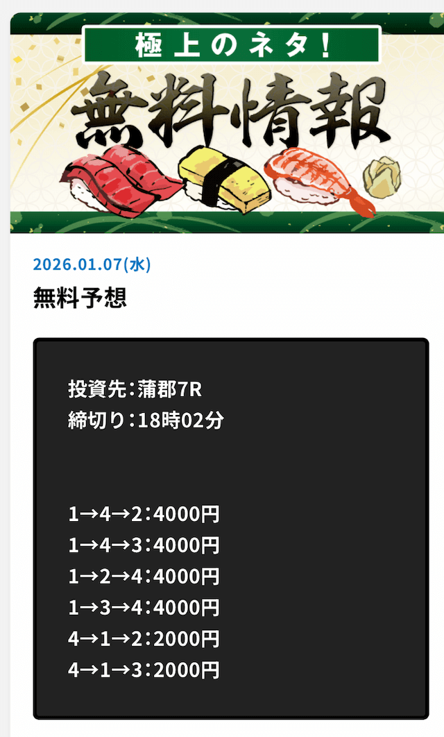 言うほど無料予想の的中率は高いか?普通に外れる日もあるし、タイミング次第だと思うけど、長期的に参加するべきだと思います。