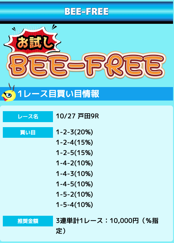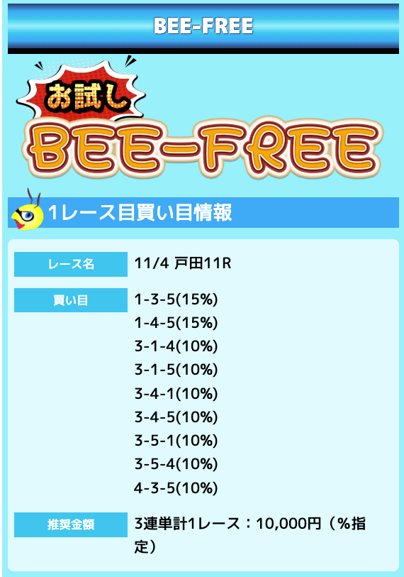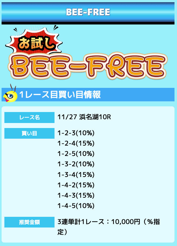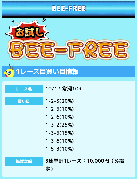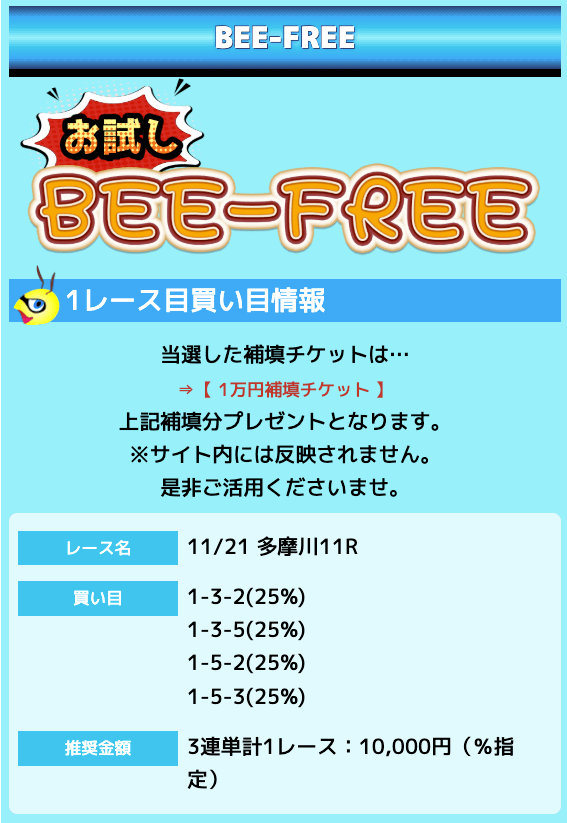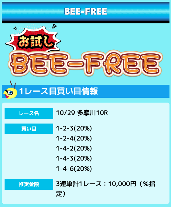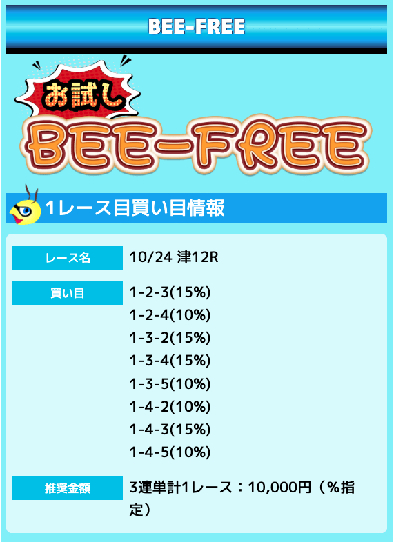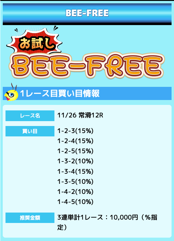 - 料金の安いプランから試したけど、的中率が高くて利益がしっかり残った。「安かろう悪かろう」じゃなかった。そういった面では、無料予想だけではなく有料予想にもチャレンジして欲しいなって思った。投稿日:2025/09/03