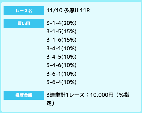 | 目標金額 | 直近10レースの目標金額と差(小さいほど評価) | 1.0点 |
