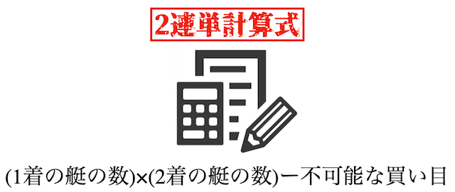 2連単フォーメーションの買い目点数は「(1着の艇の数)×(2着の艇の数)ー不可能な買い目」で計算できます。