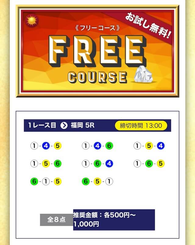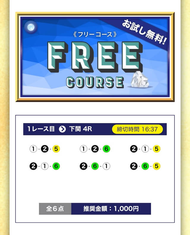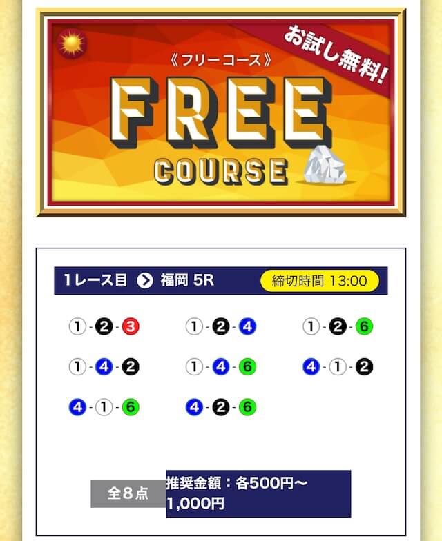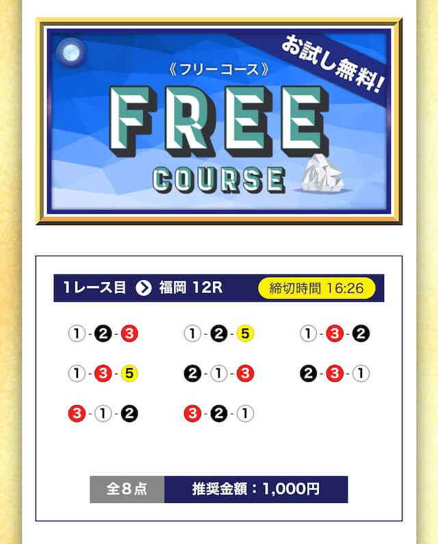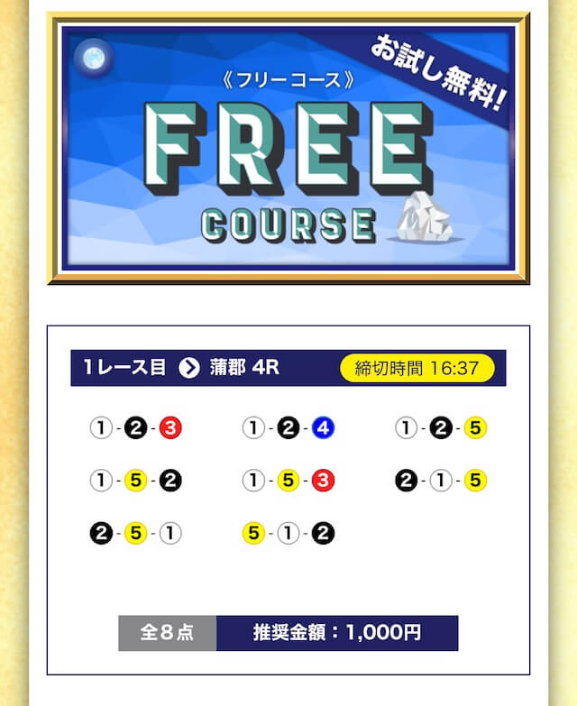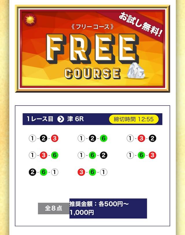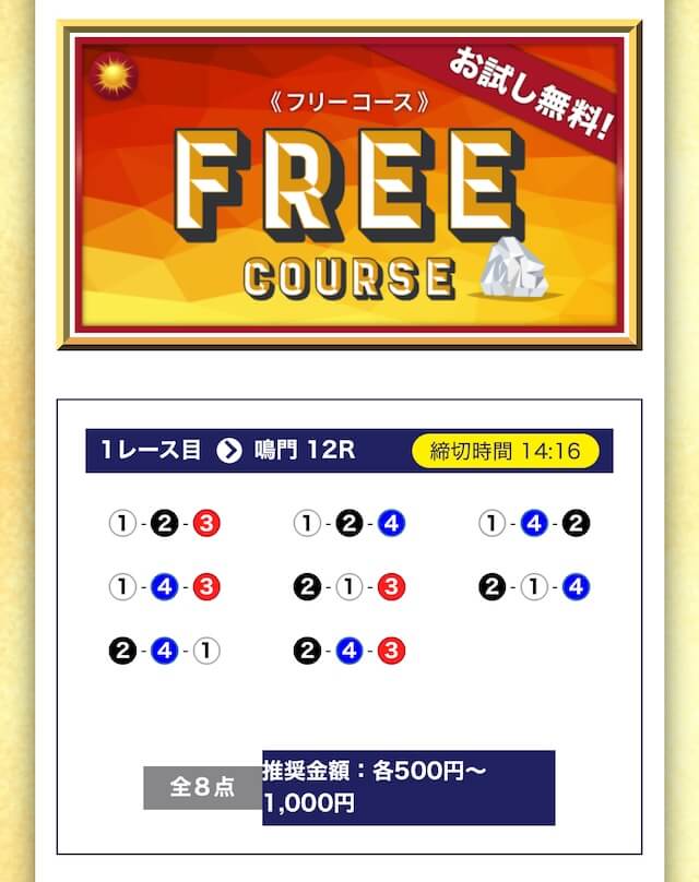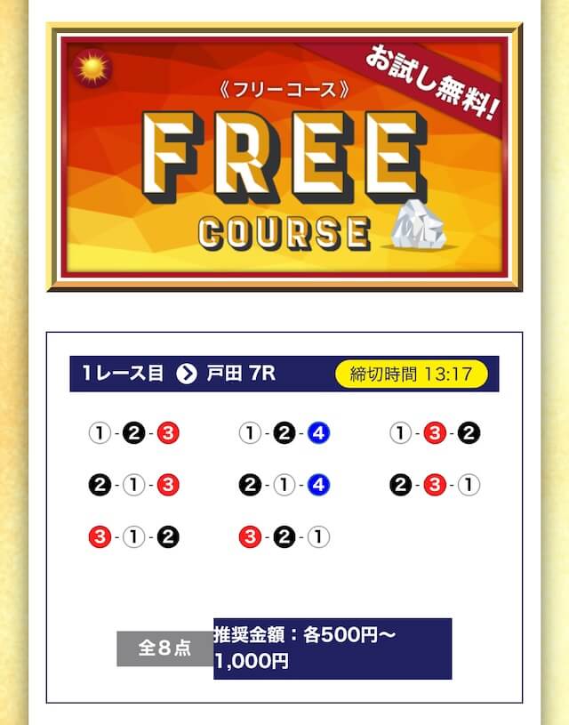 - 無料でもしっかり当ててくれるから、最初から「ここは他と違う」と思えた。有料予想も一番安いプランは2万円だし、自然と進める作りがうまい。投稿日:2025/04/22