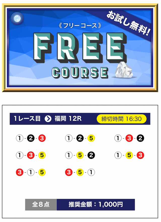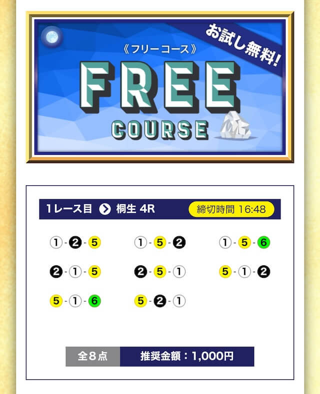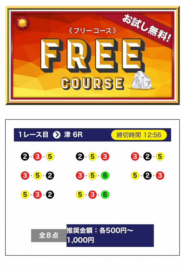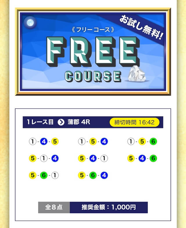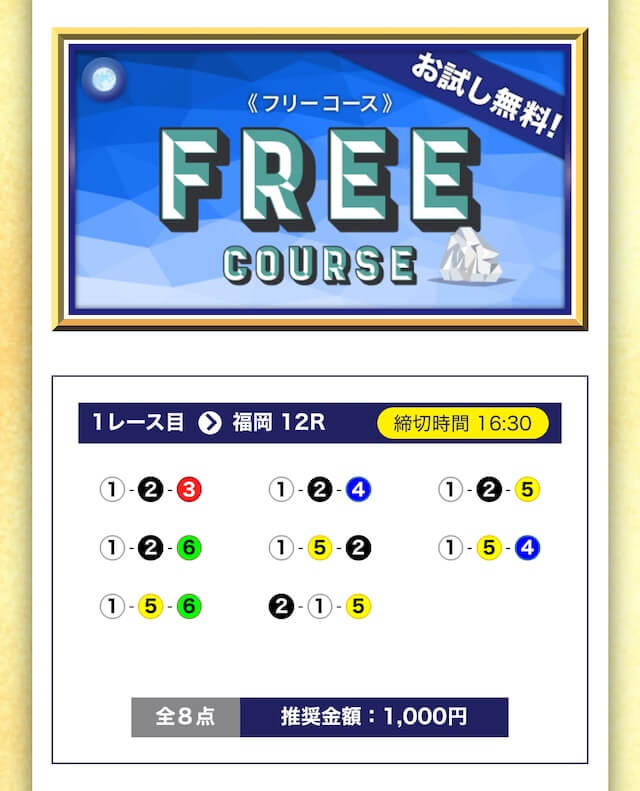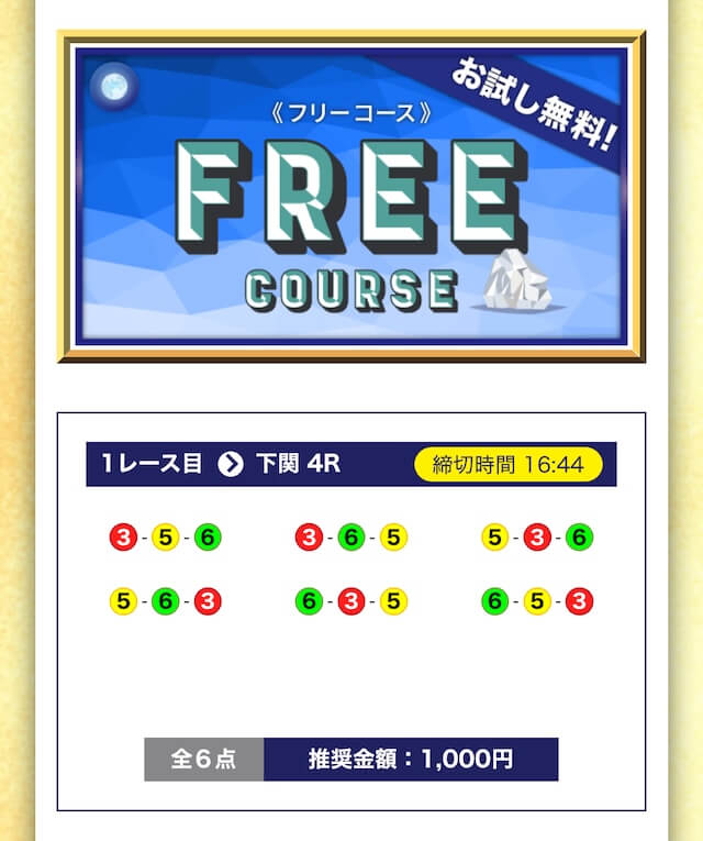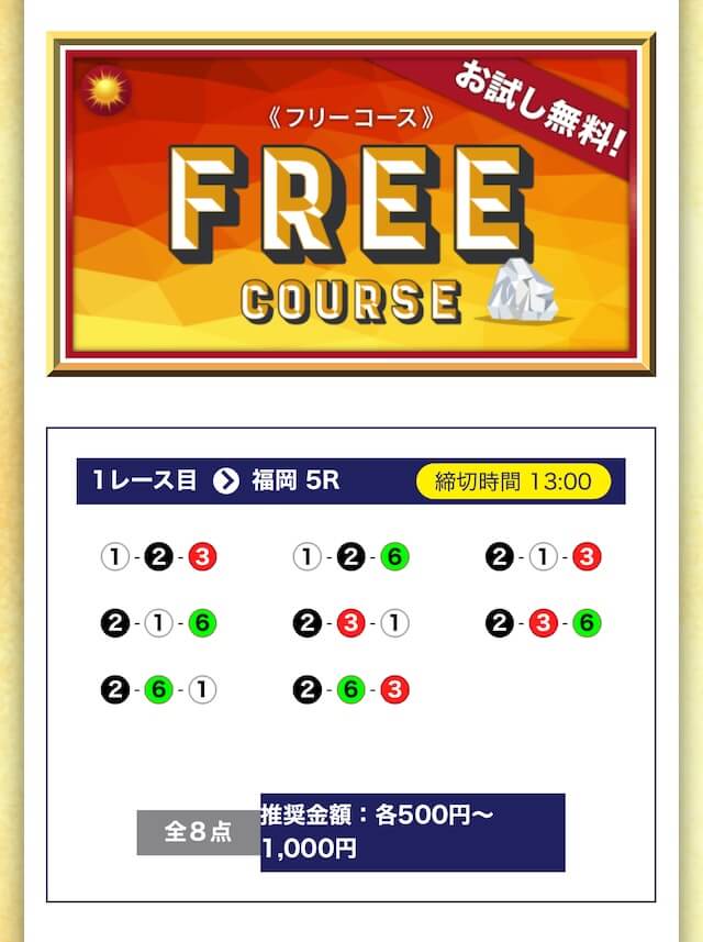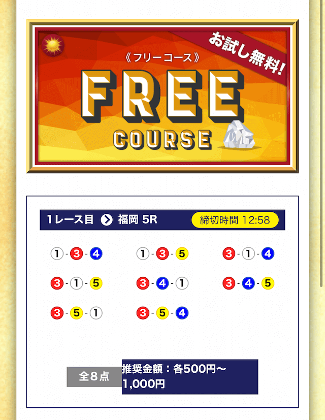- 無料でもしっかり当ててくれるから、最初から「ここは他と違う」と思えた。有料予想も一番安いプランは2万円だし、自然と進める作りがうまい。投稿日:2025/04/22