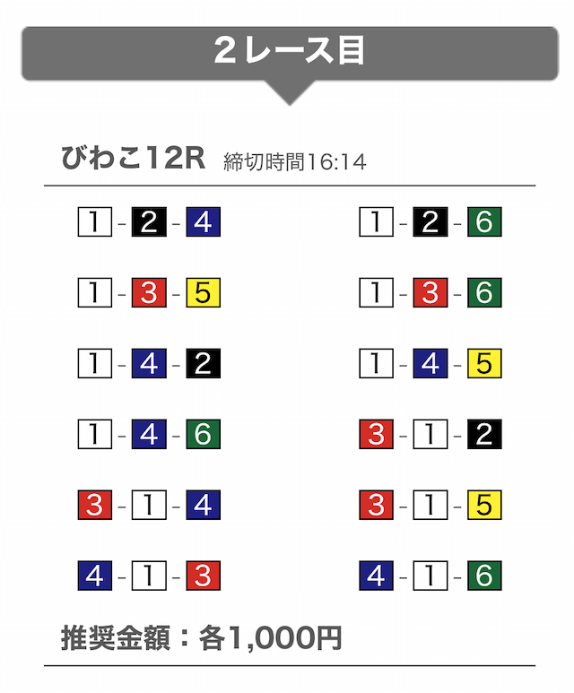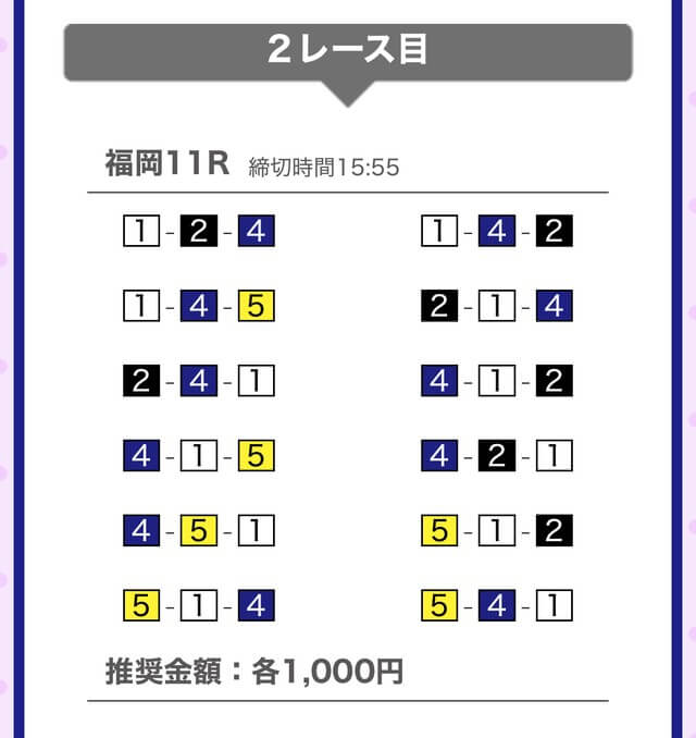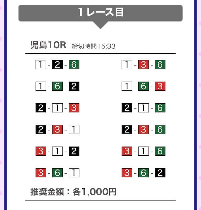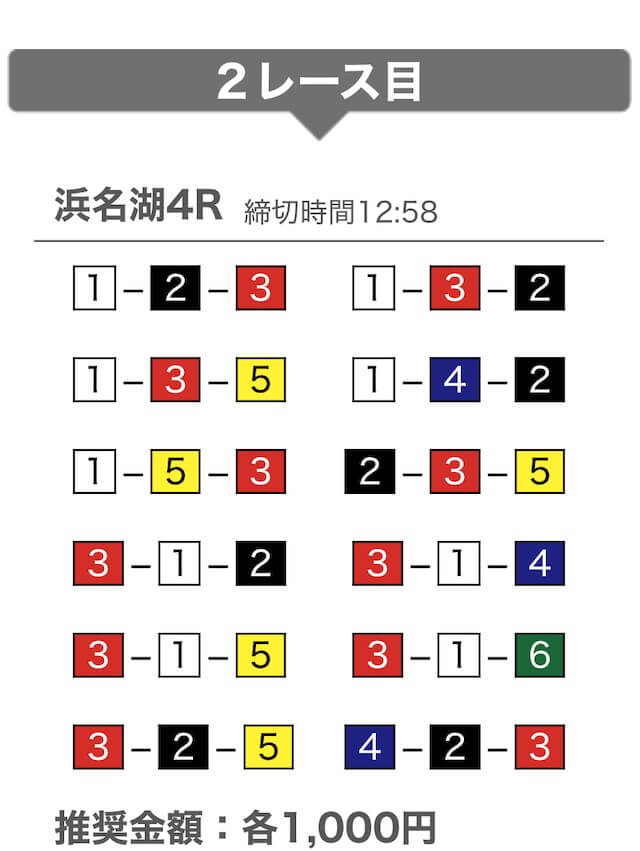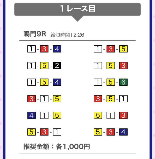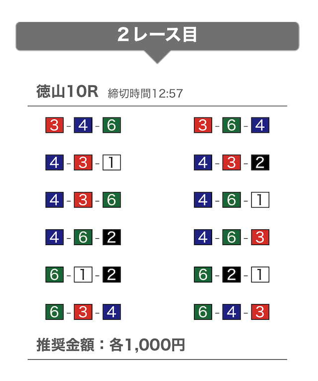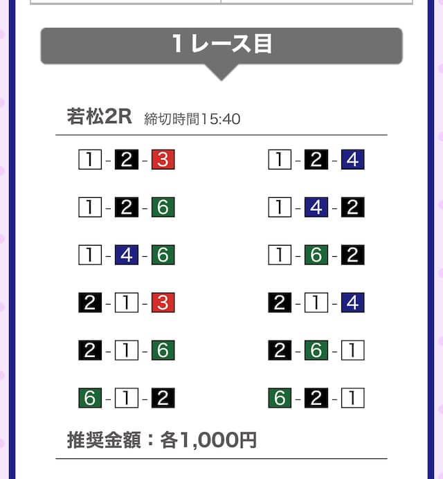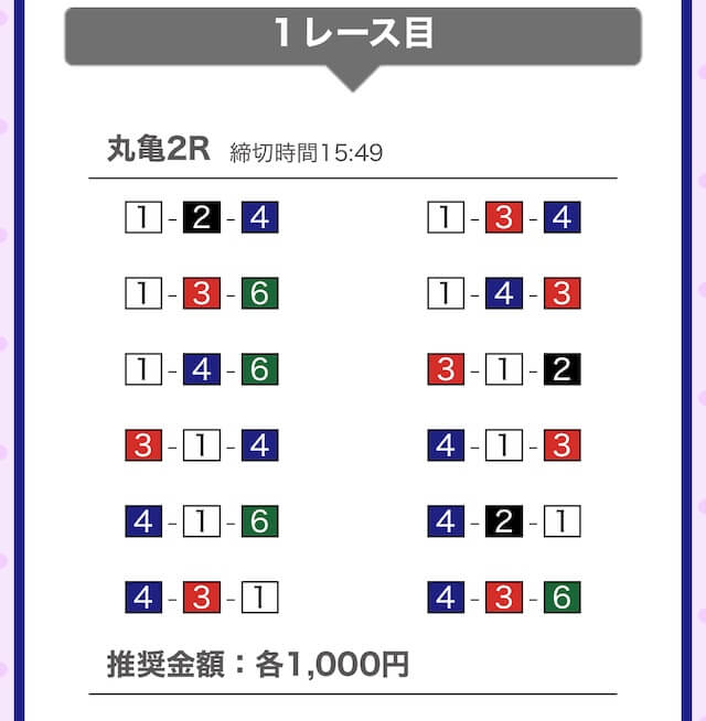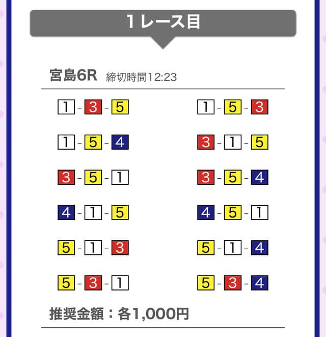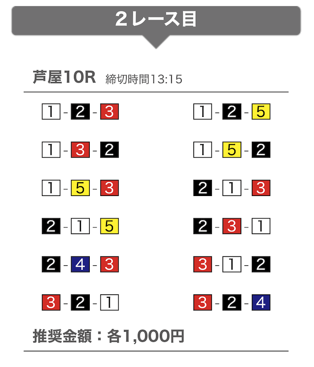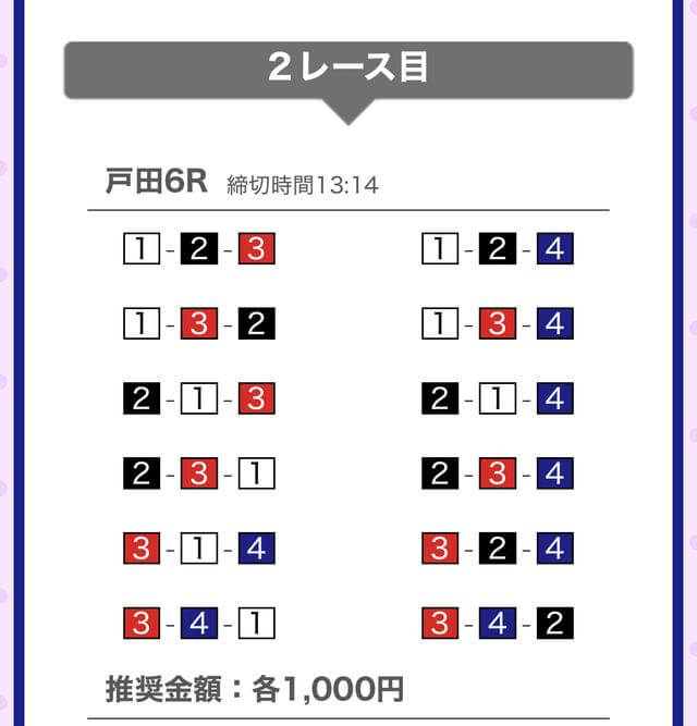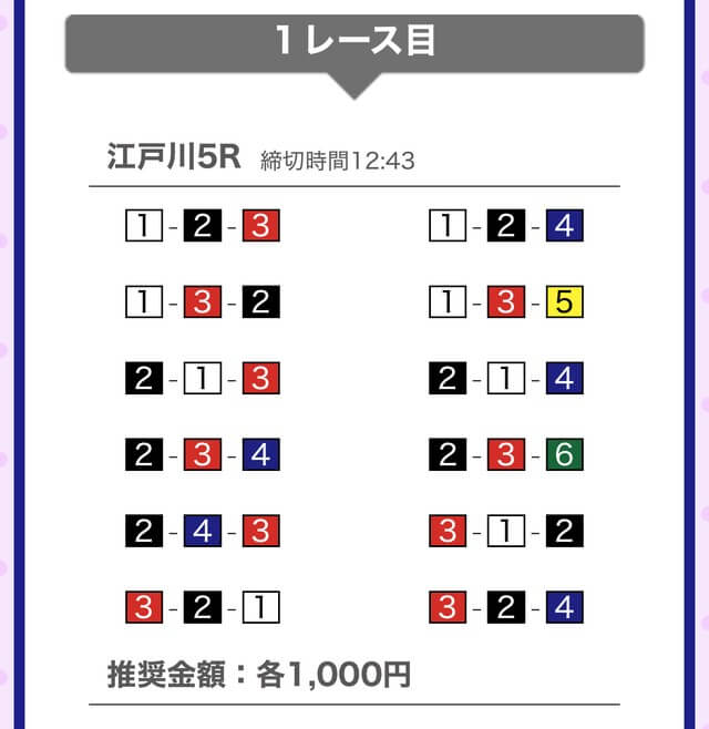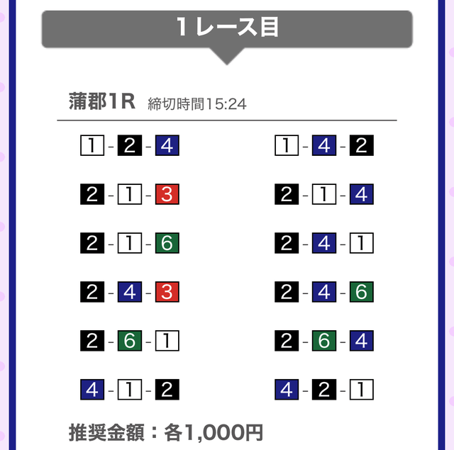 買い目は「①-②③④-②③④・②-①-③④」の組み合わせ。