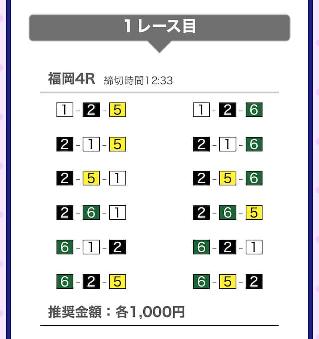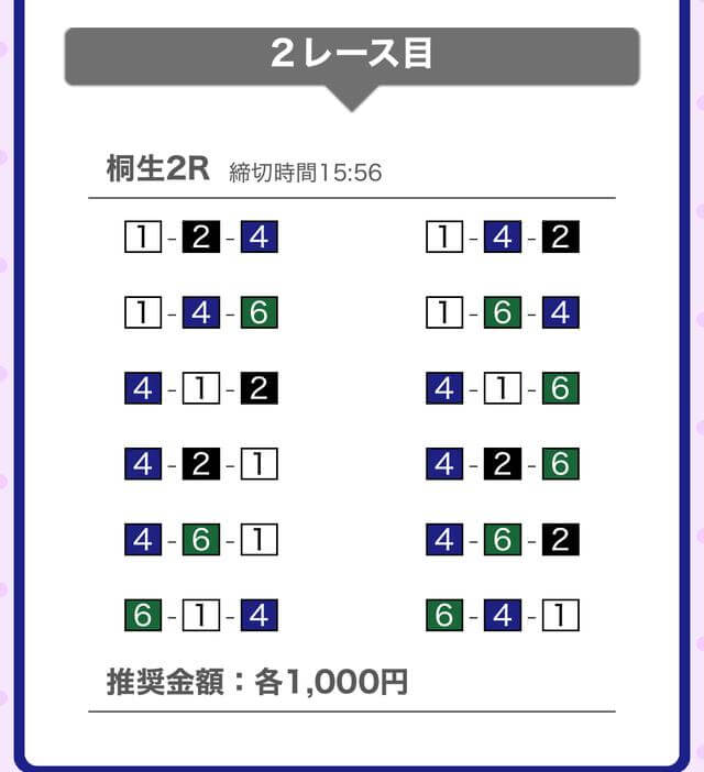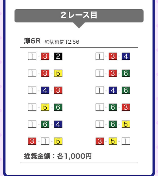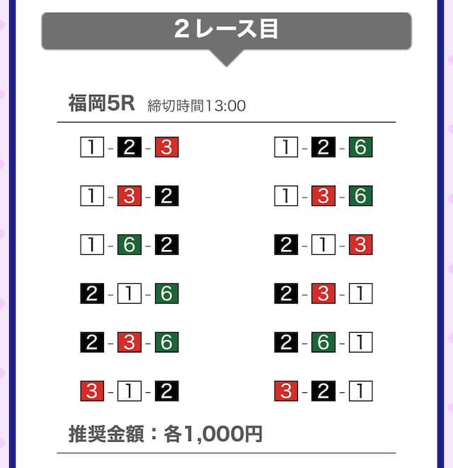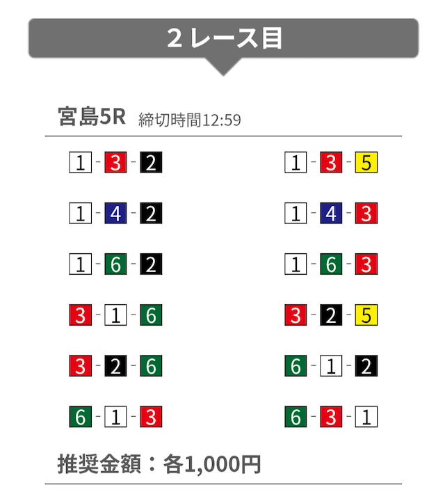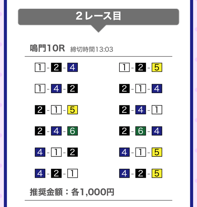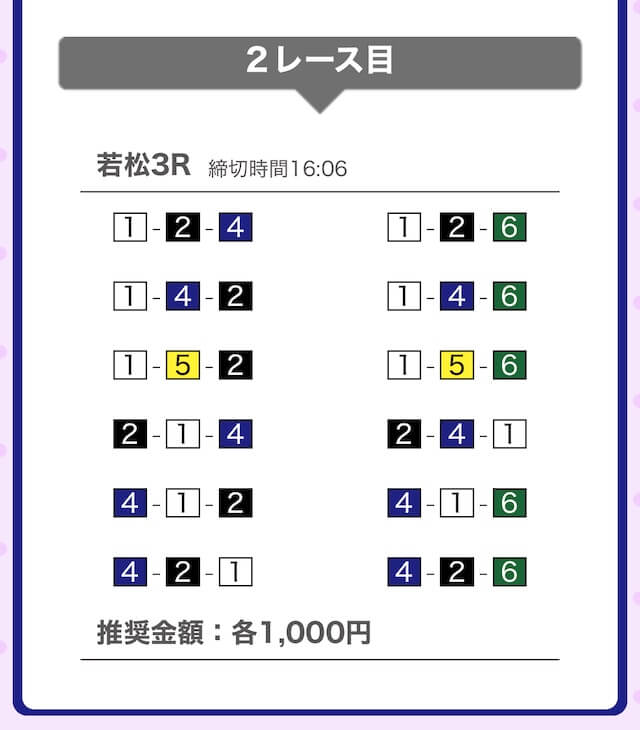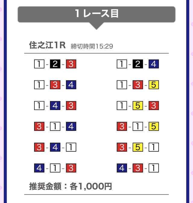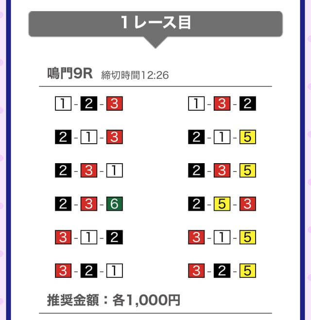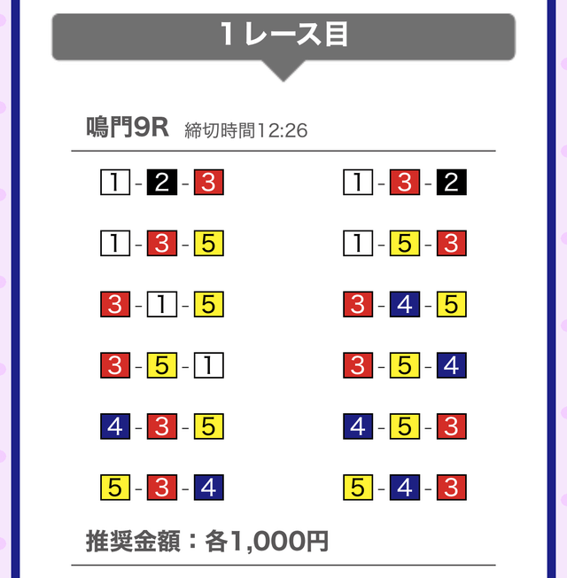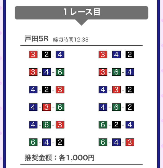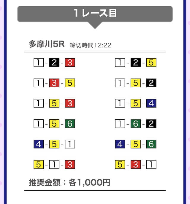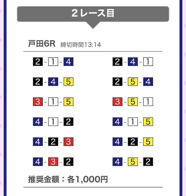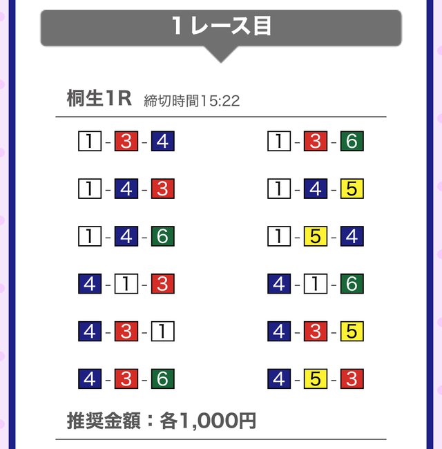 買い目は「①-②③④-②③④・②-①-③④」の組み合わせ。