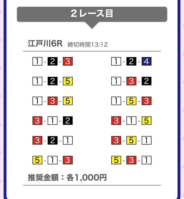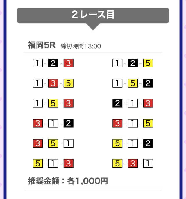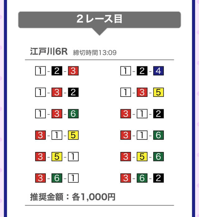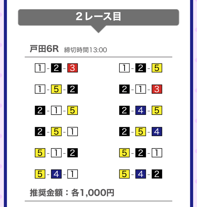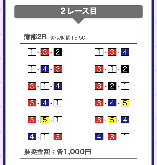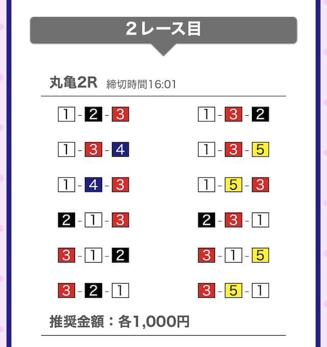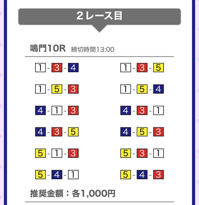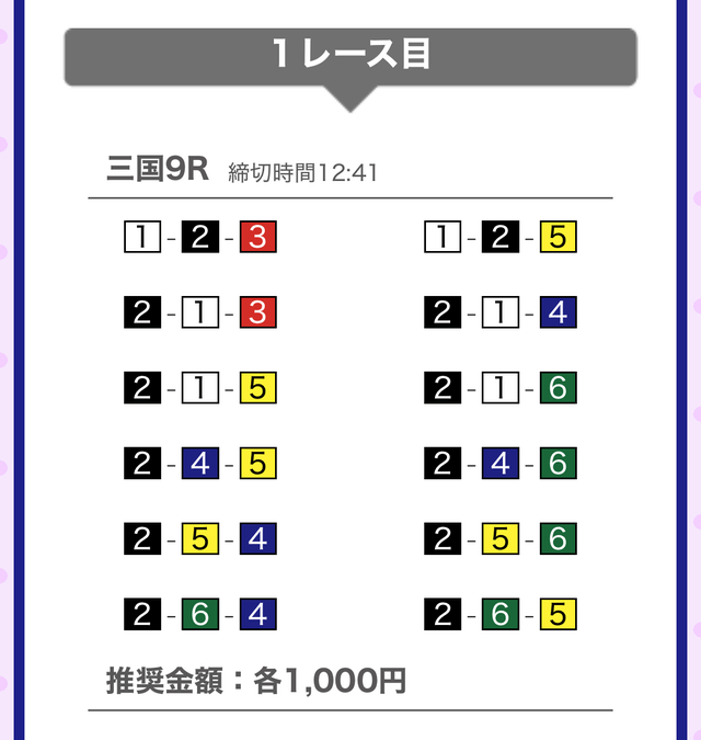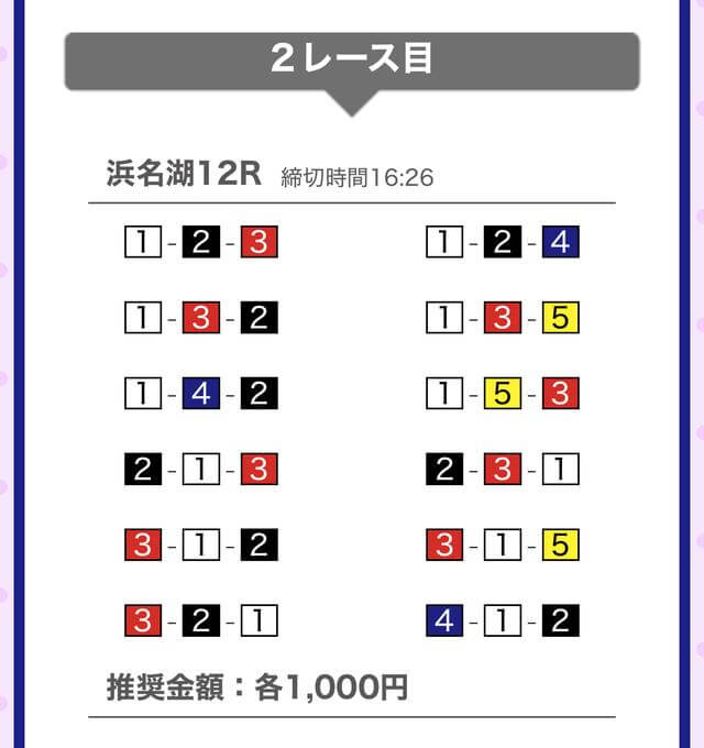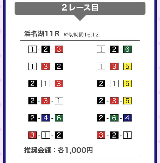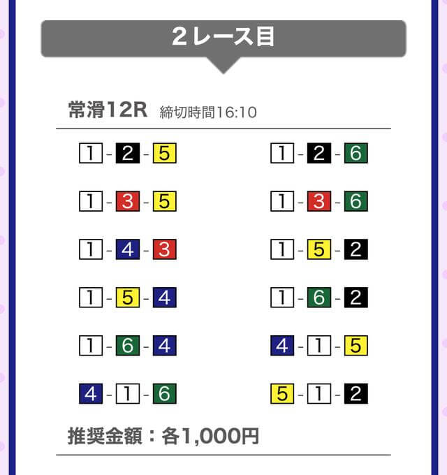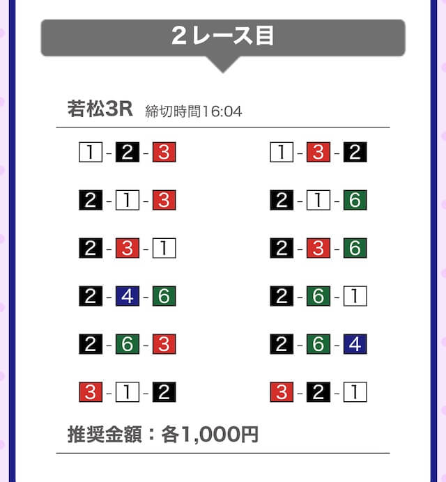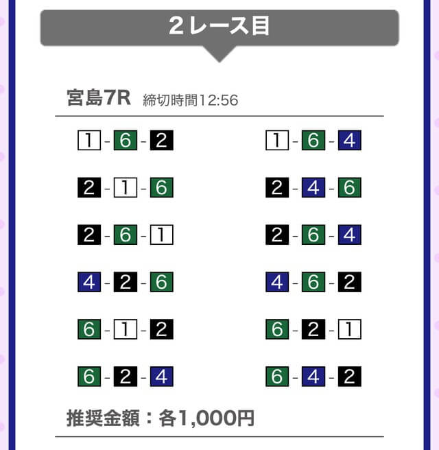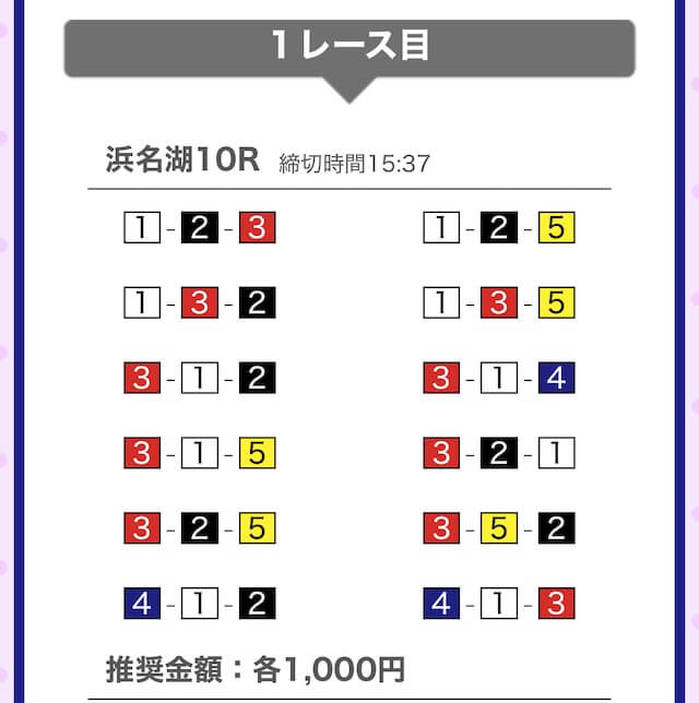 買い目は「①-②③④-②③④・②-①-③④」の組み合わせ。