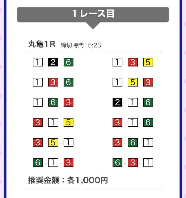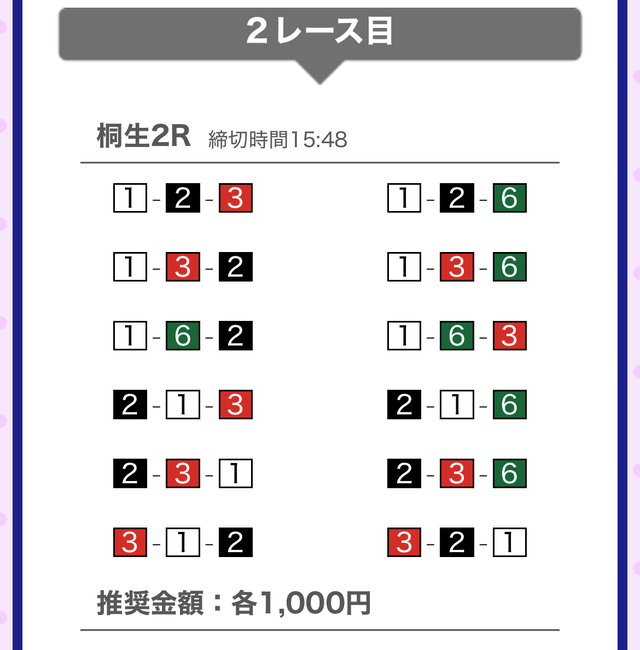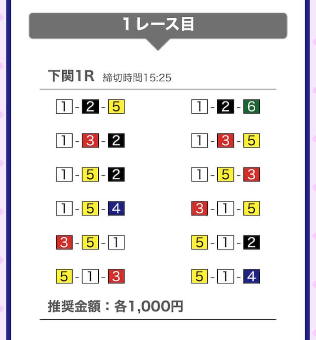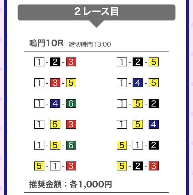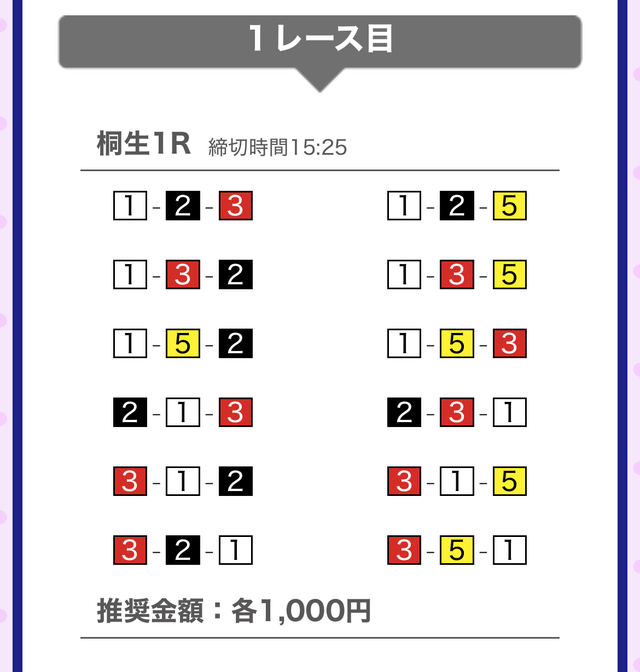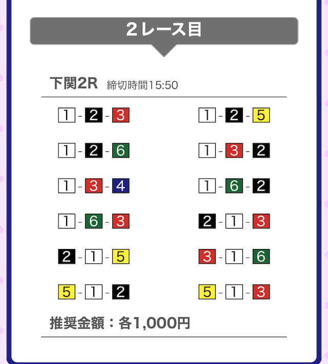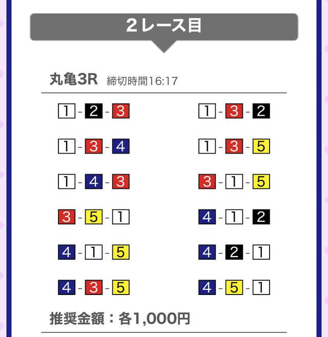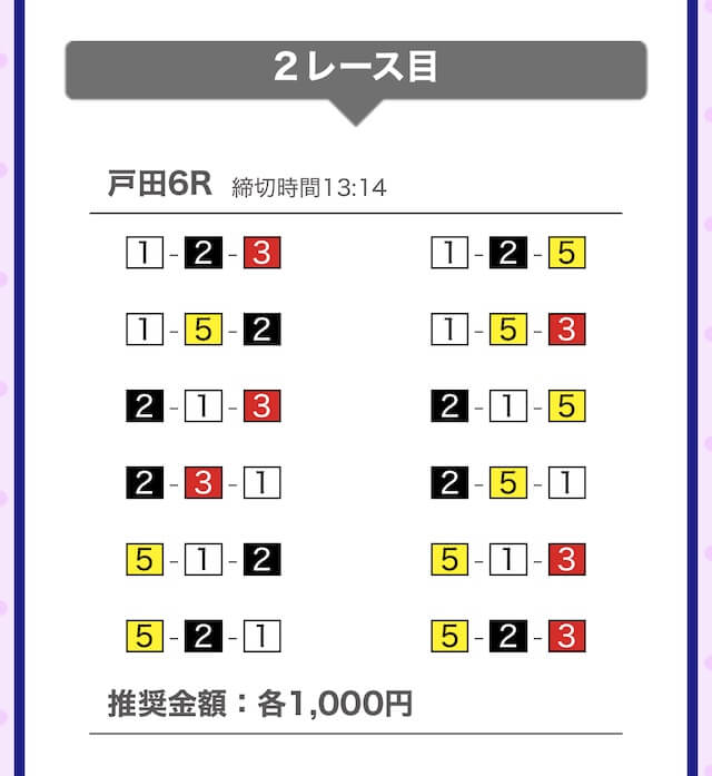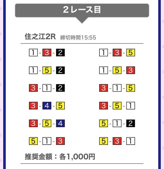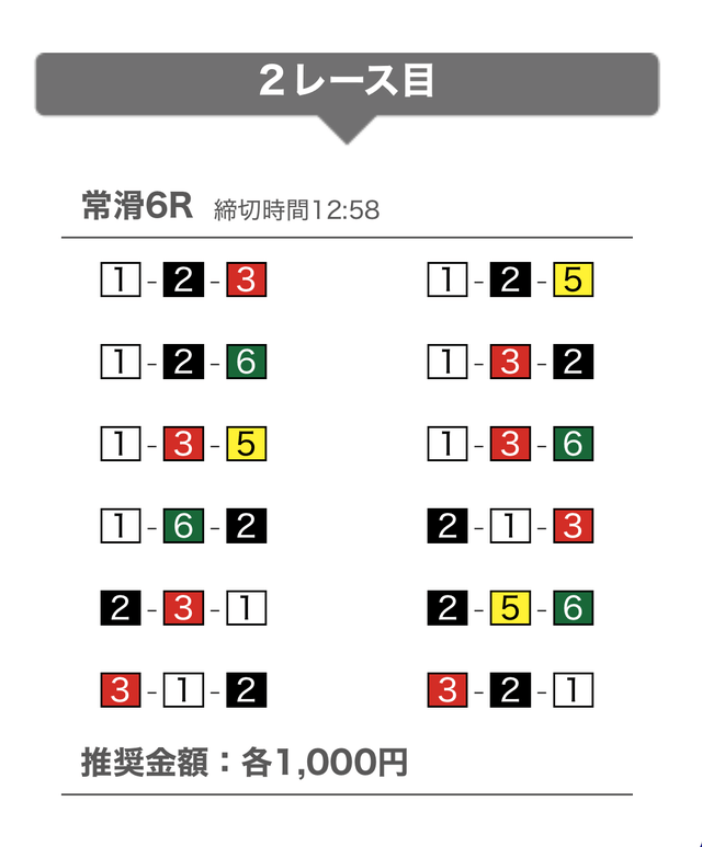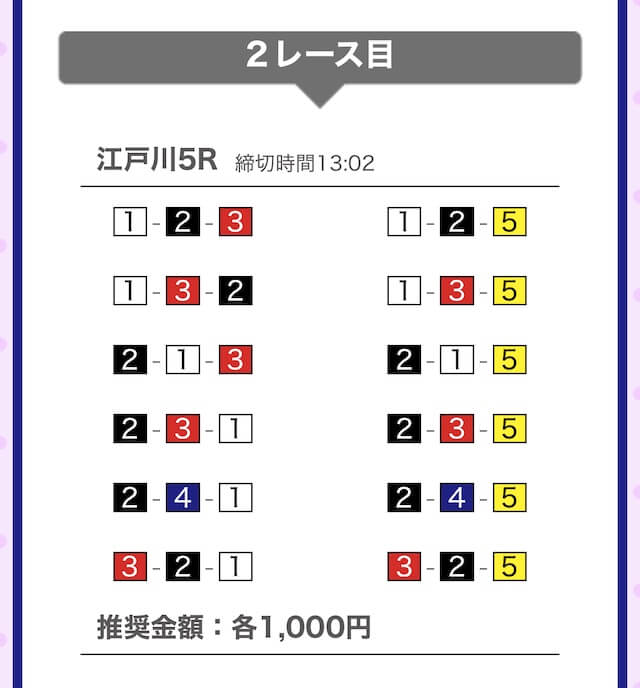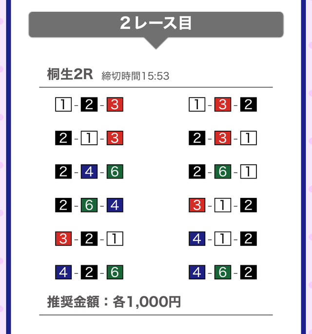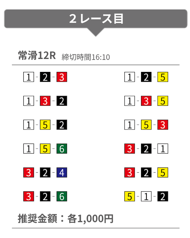 買い目は「①-②③④-②③④・②-①-③④」の組み合わせ。