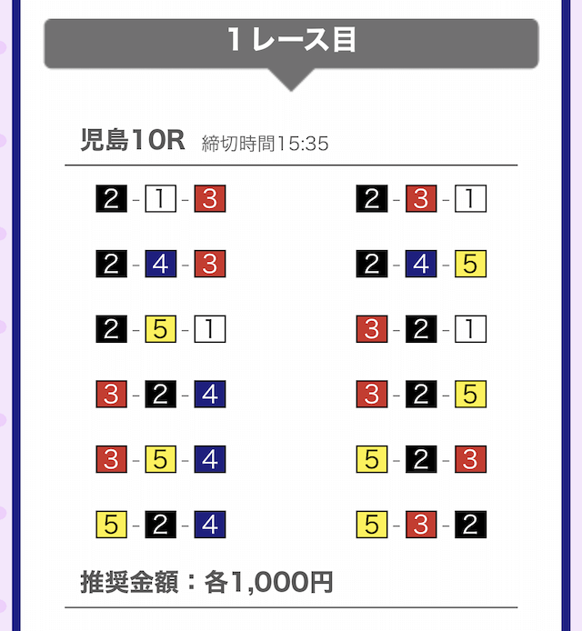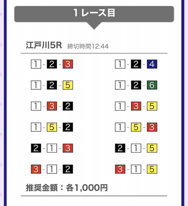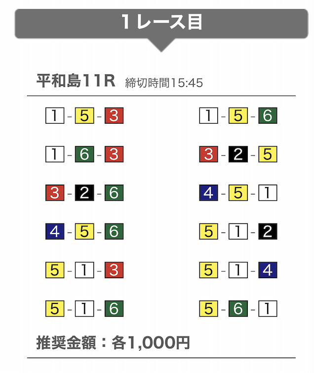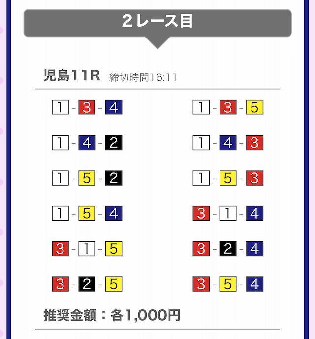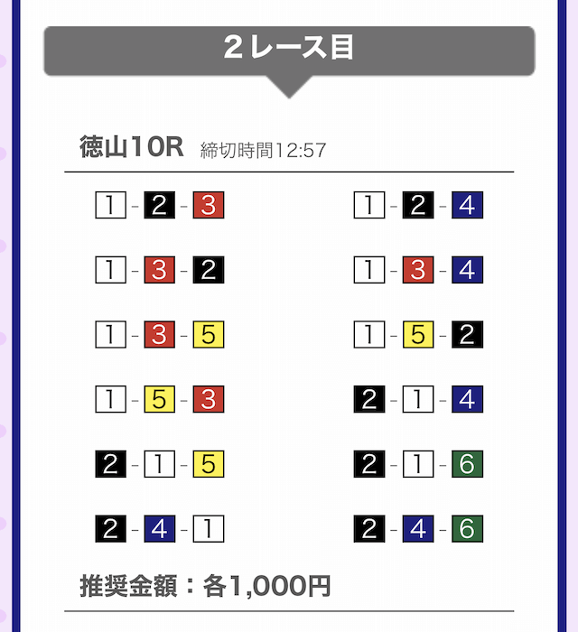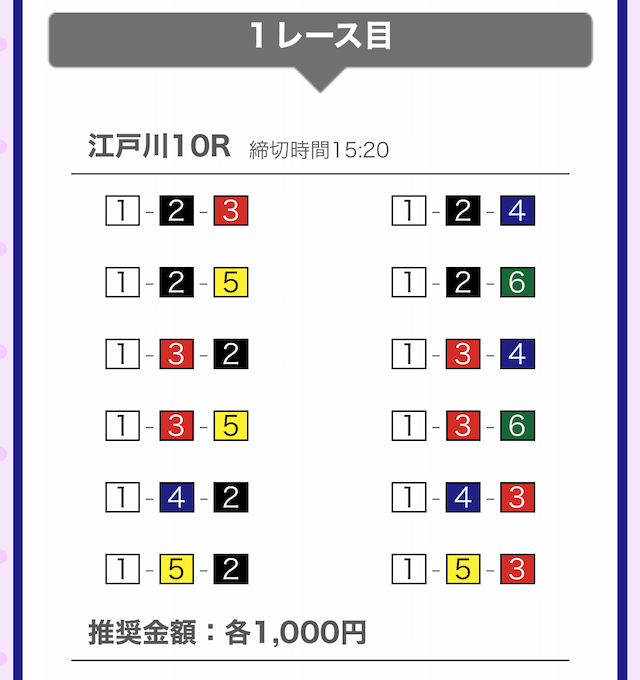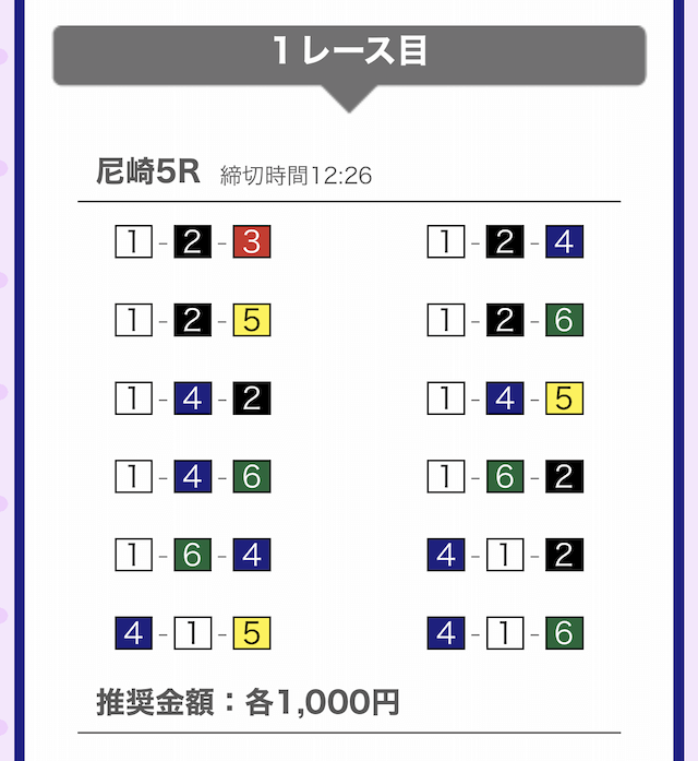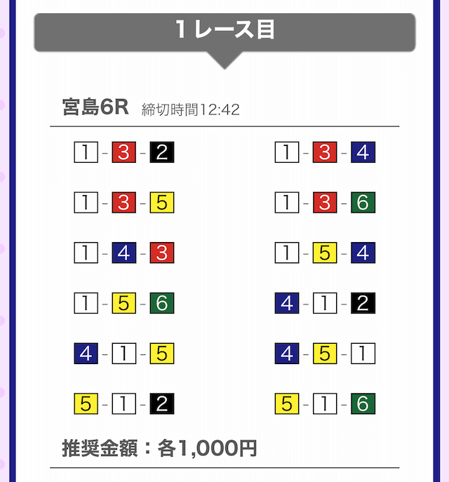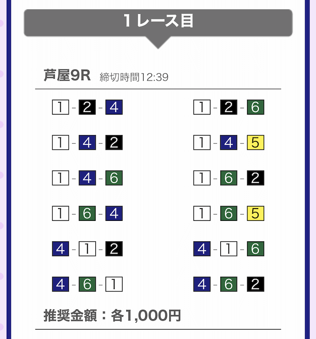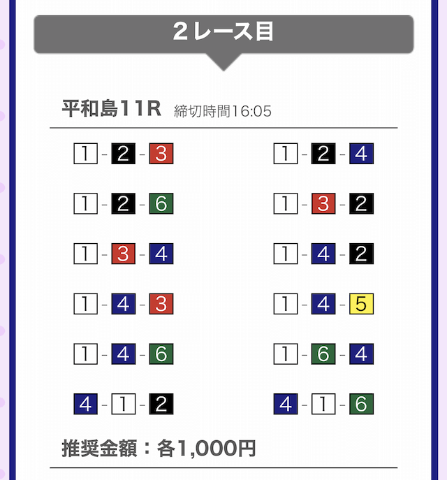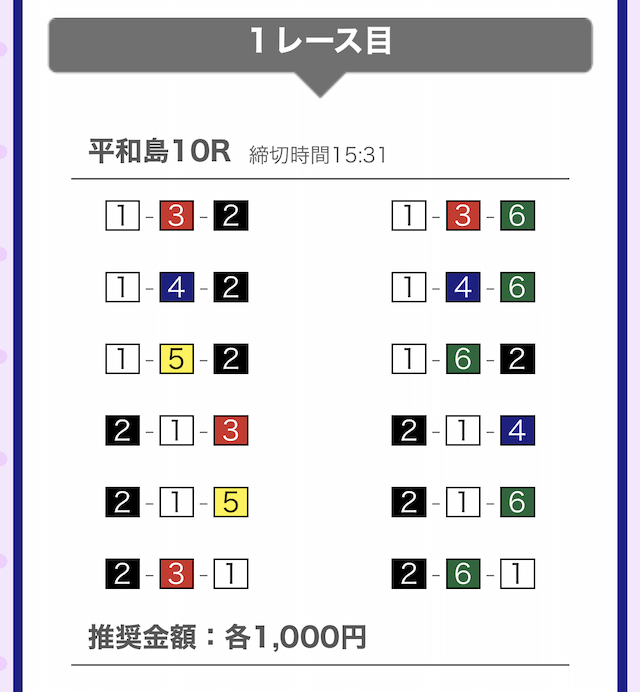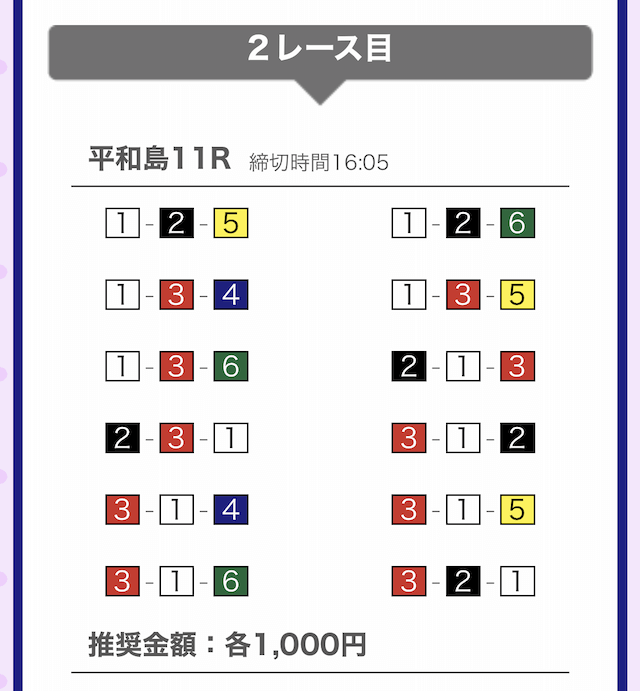 では、競艇戦線が実際に閲覧した買い目を見てみると・・・