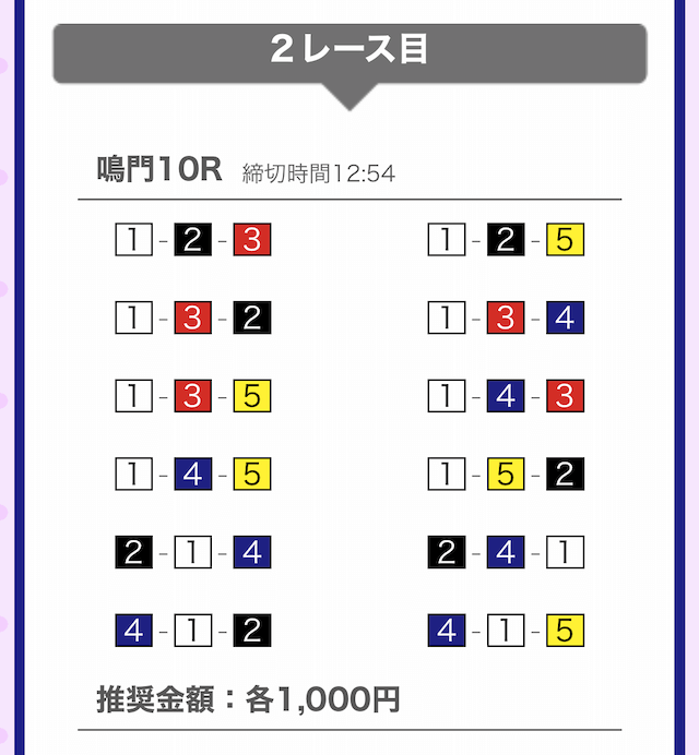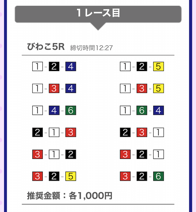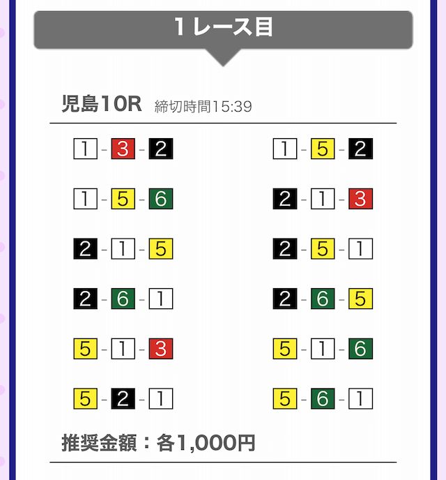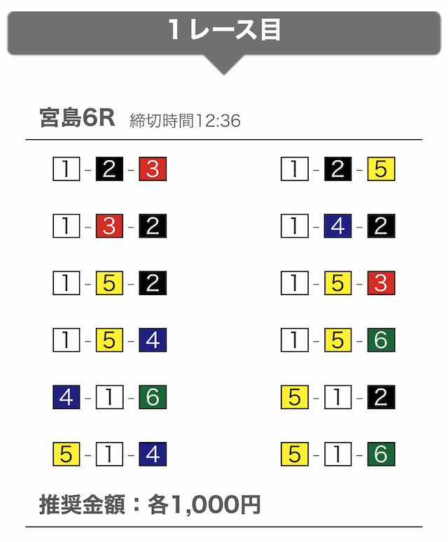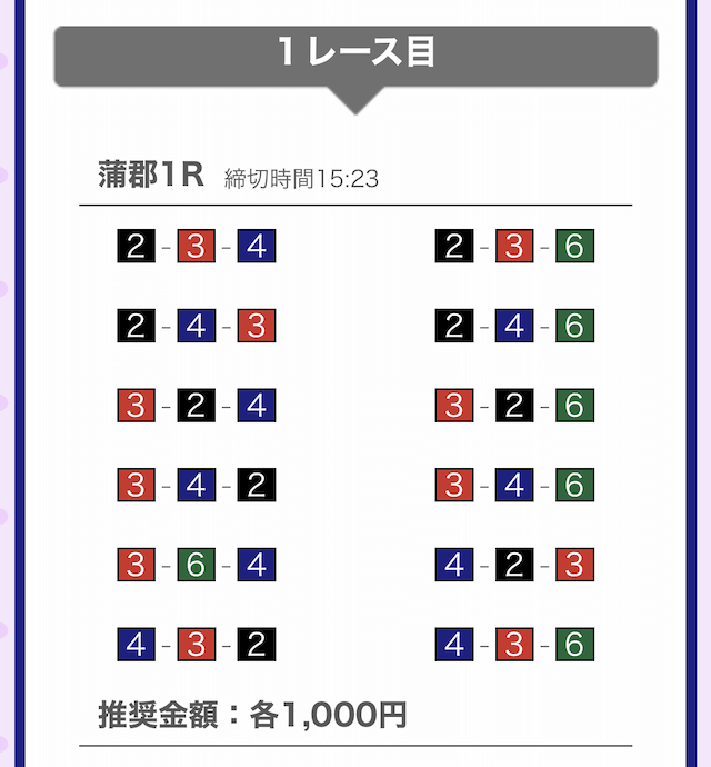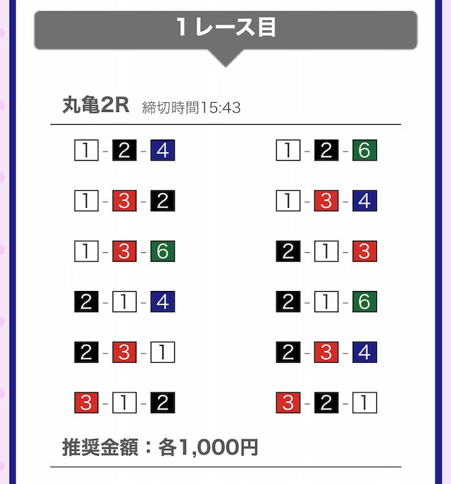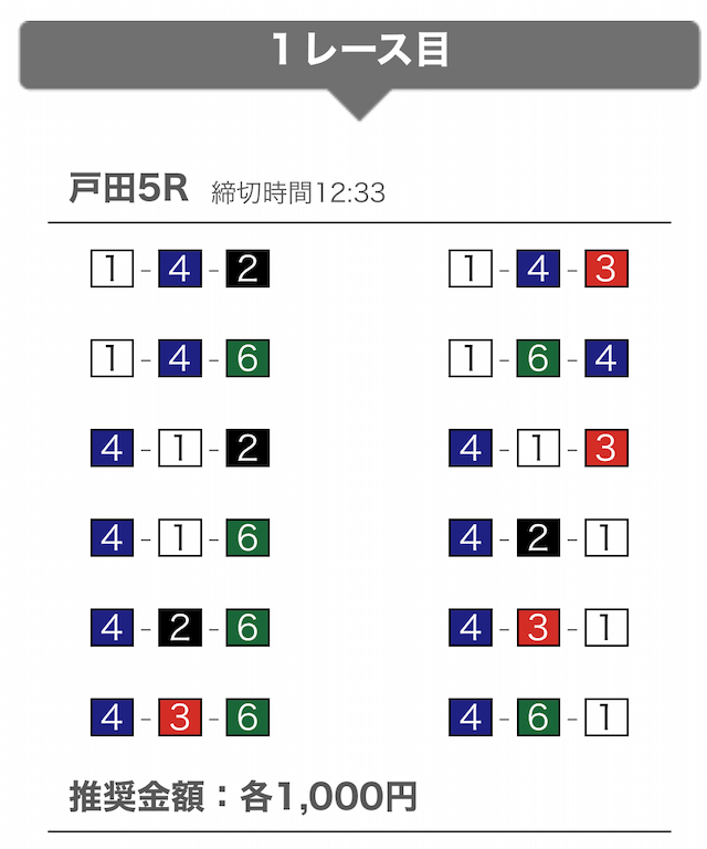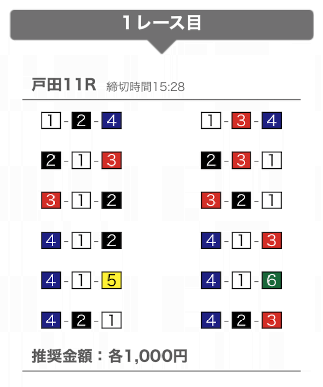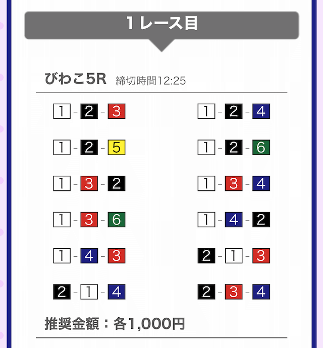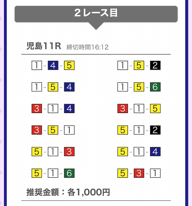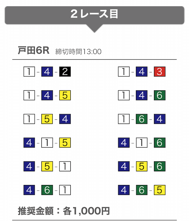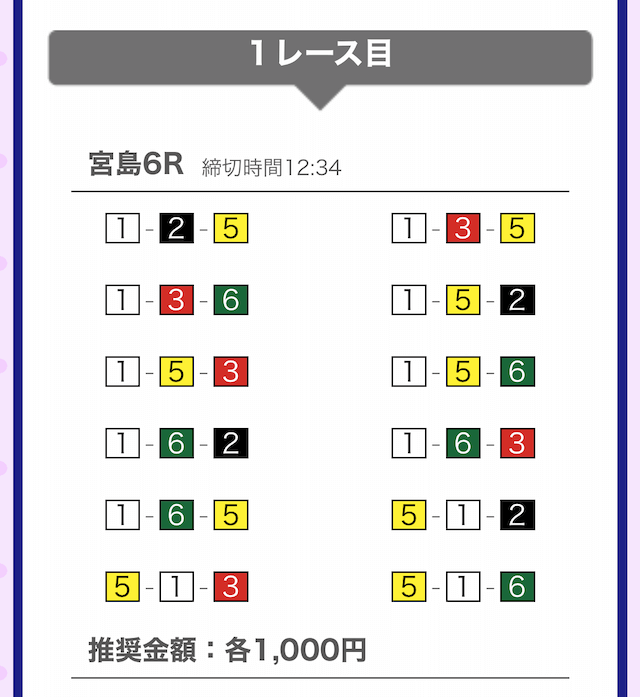では、競艇戦線が実際に閲覧した買い目を見てみると・・・