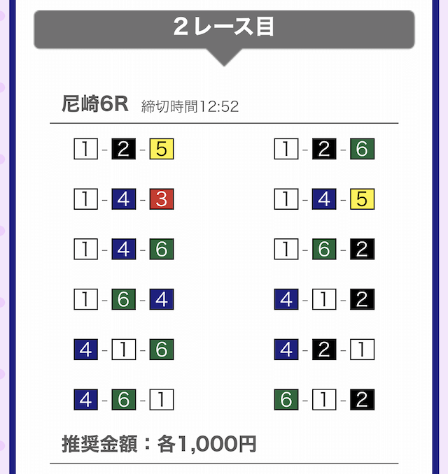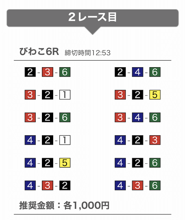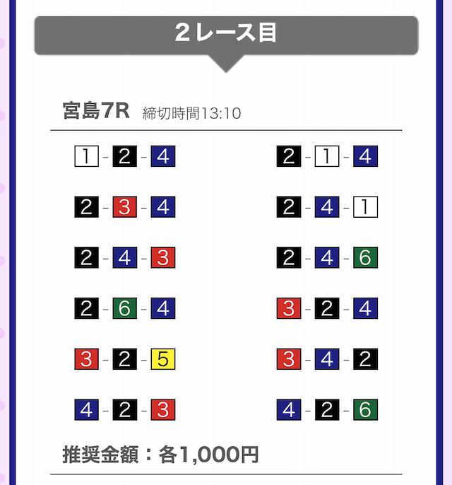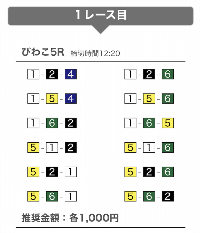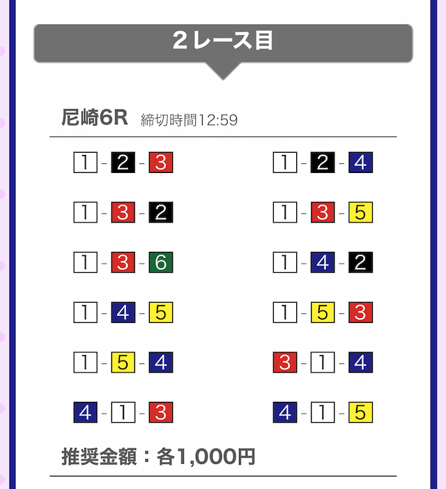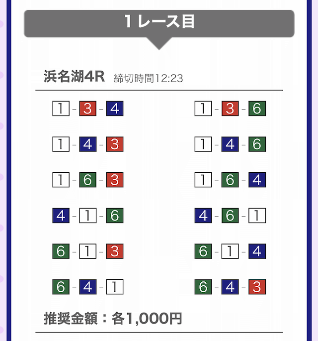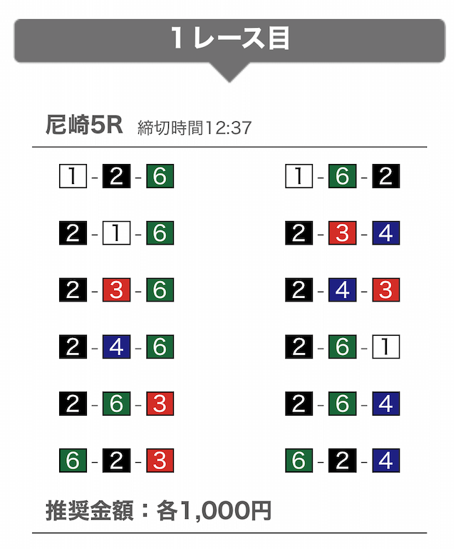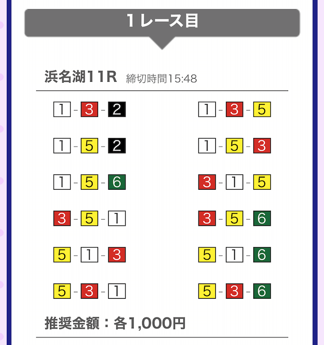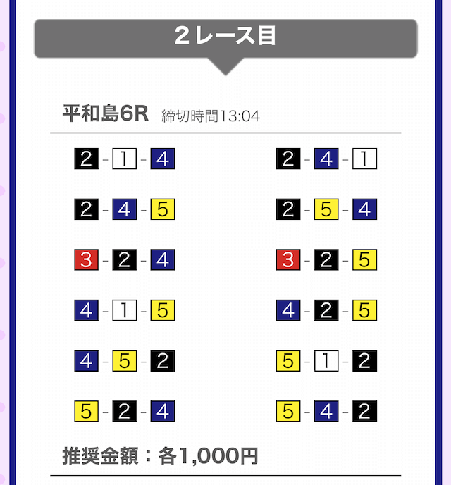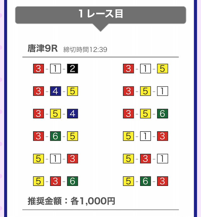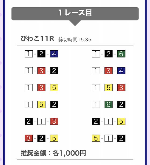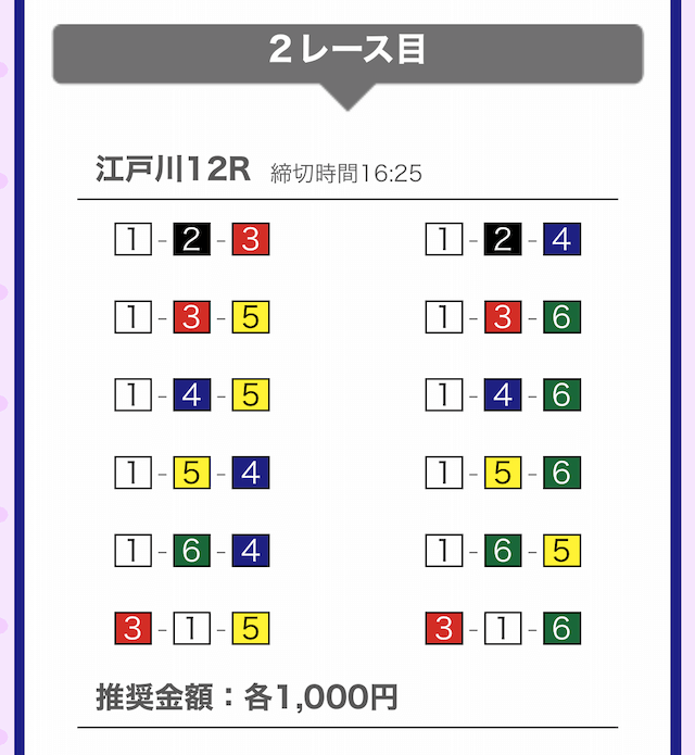 では、競艇戦線が実際に閲覧した買い目を見てみると・・・