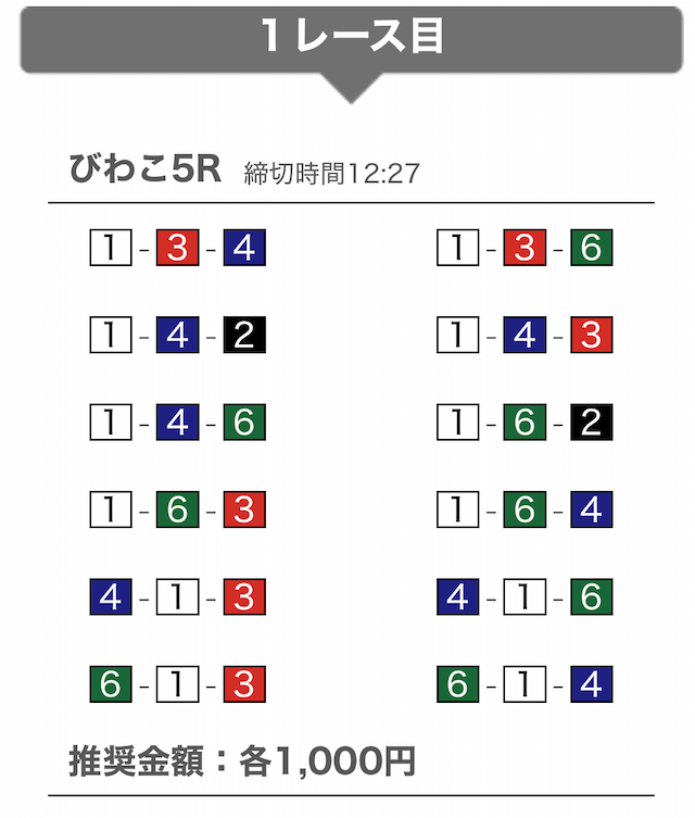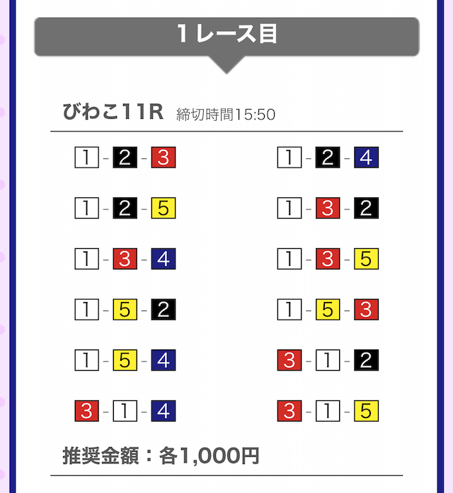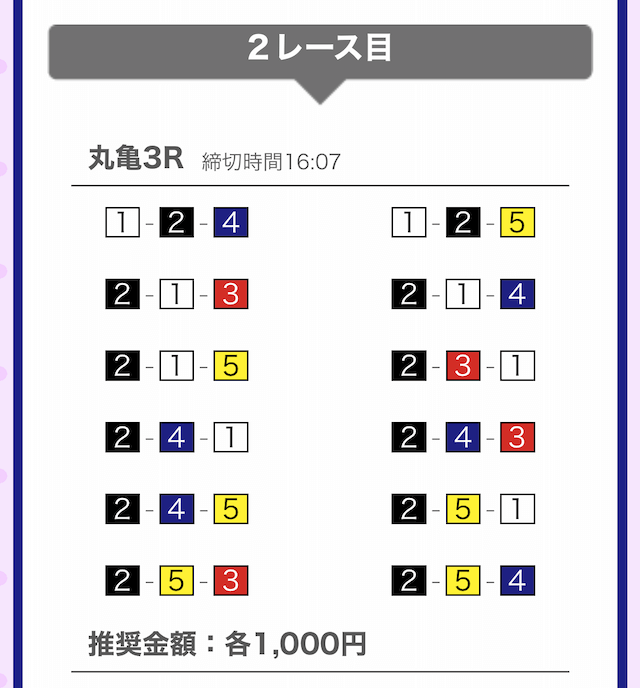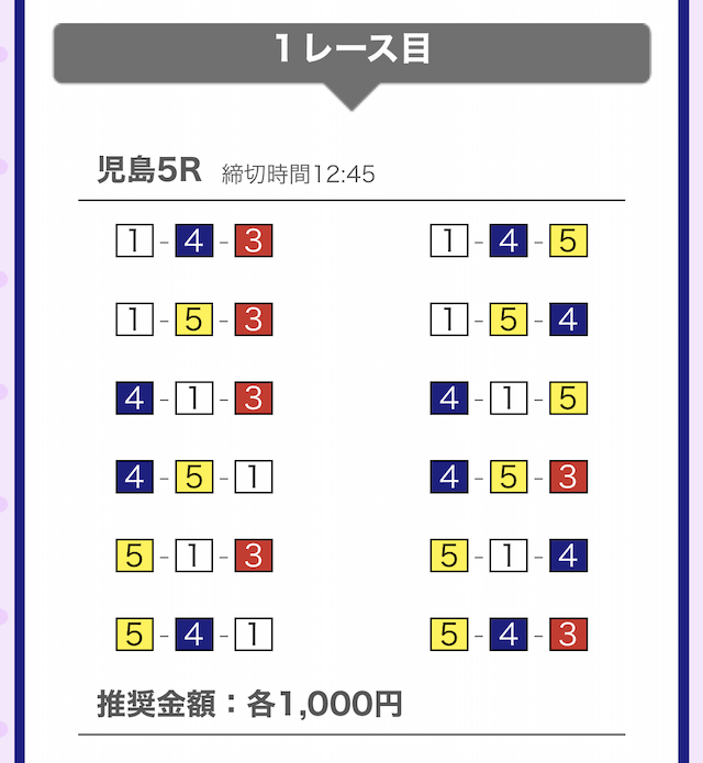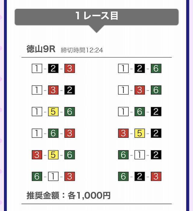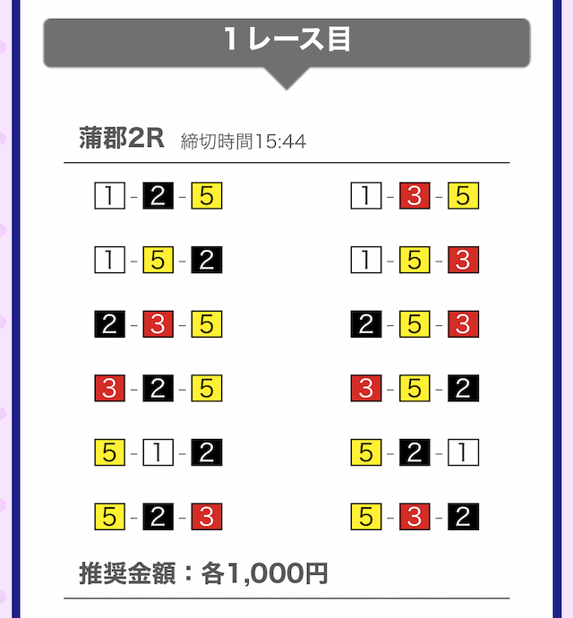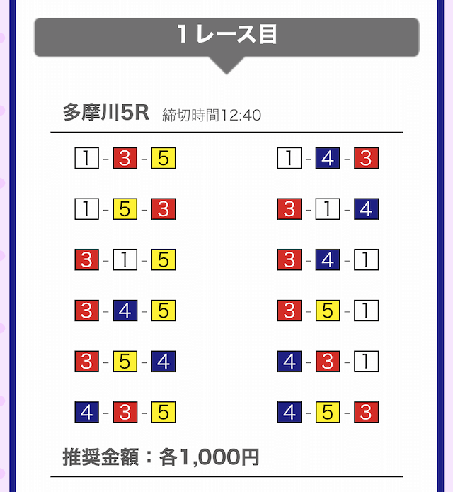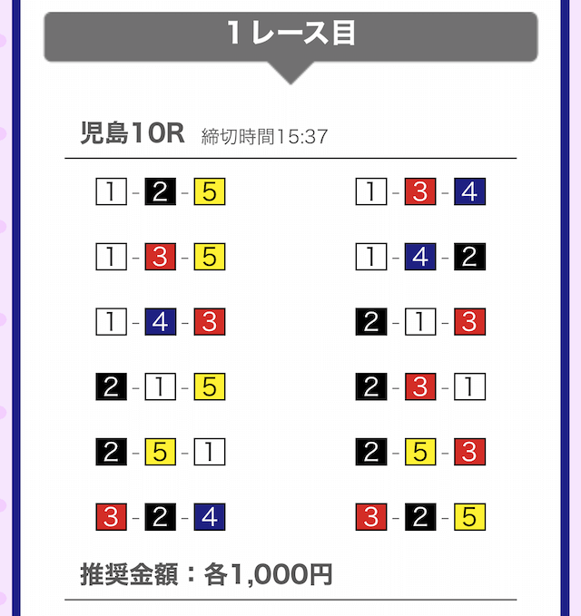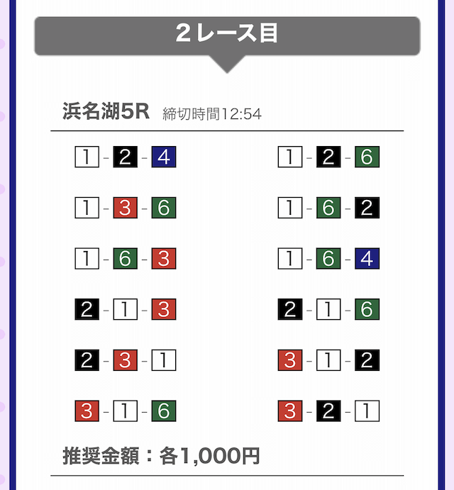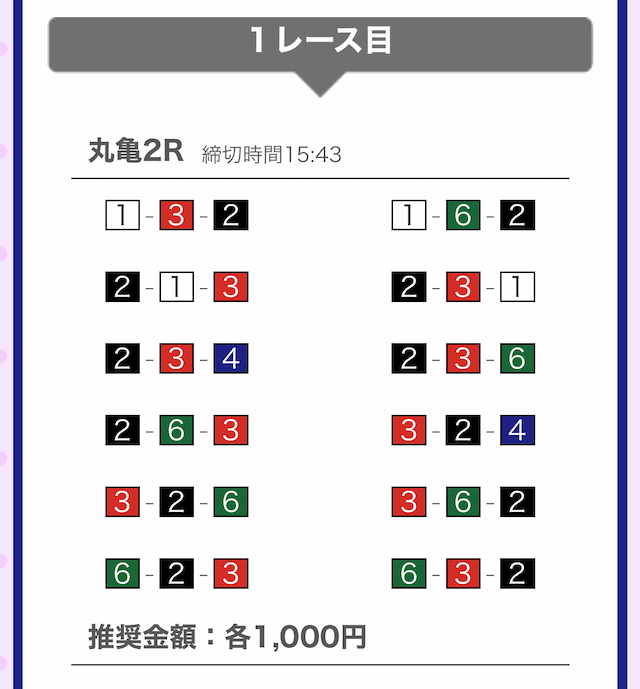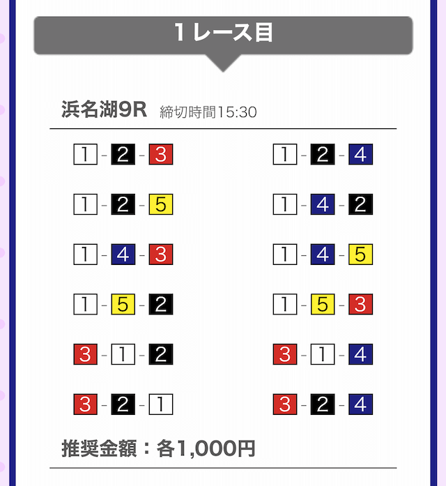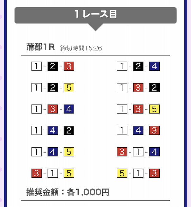 では、競艇戦線が実際に閲覧した買い目を見てみると・・・