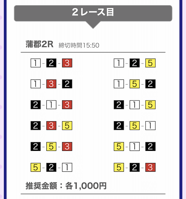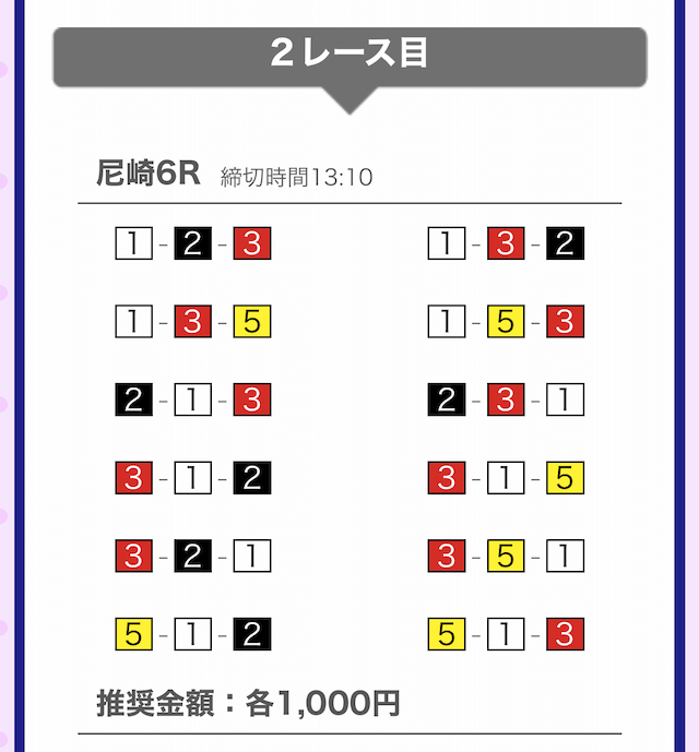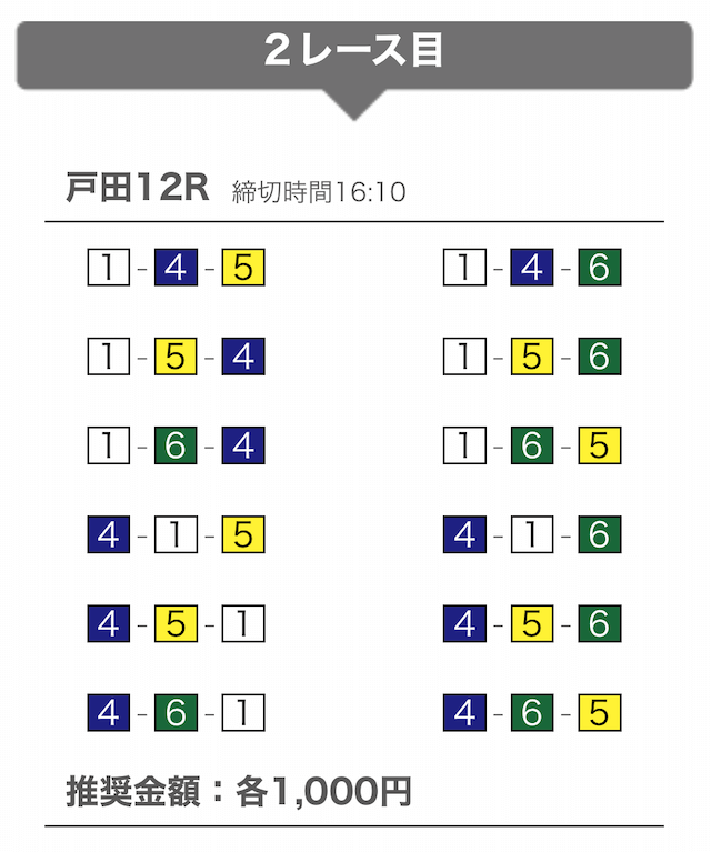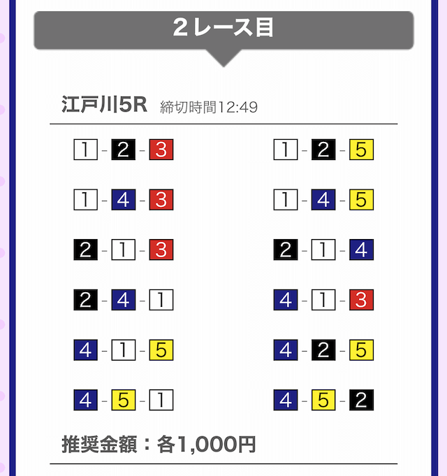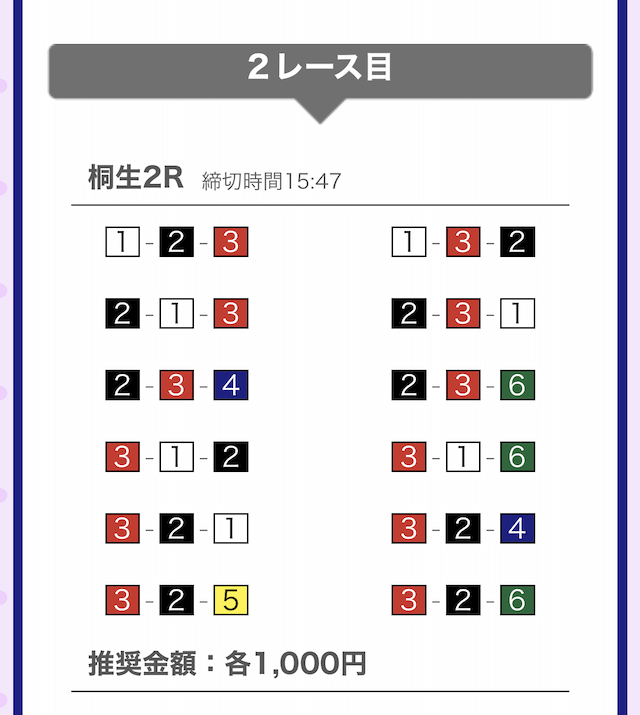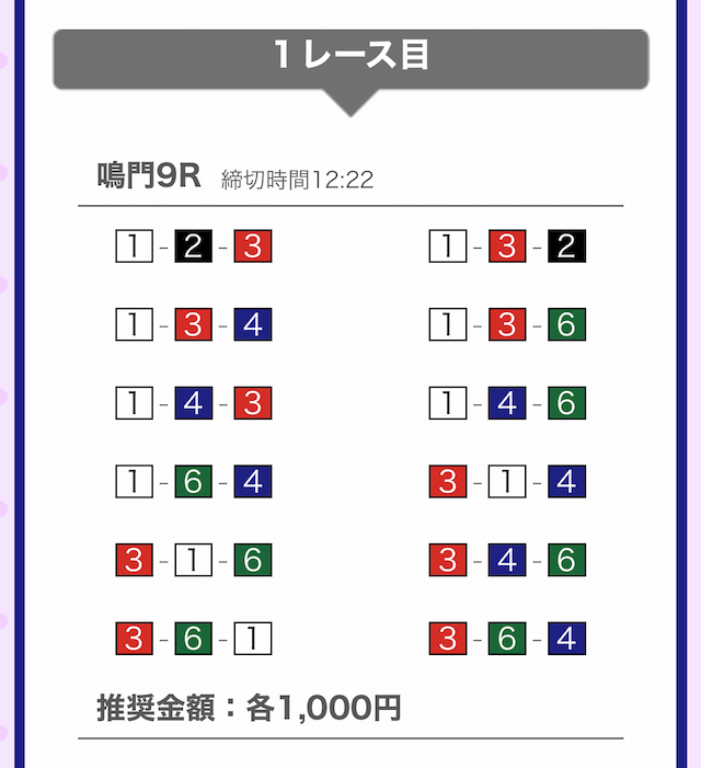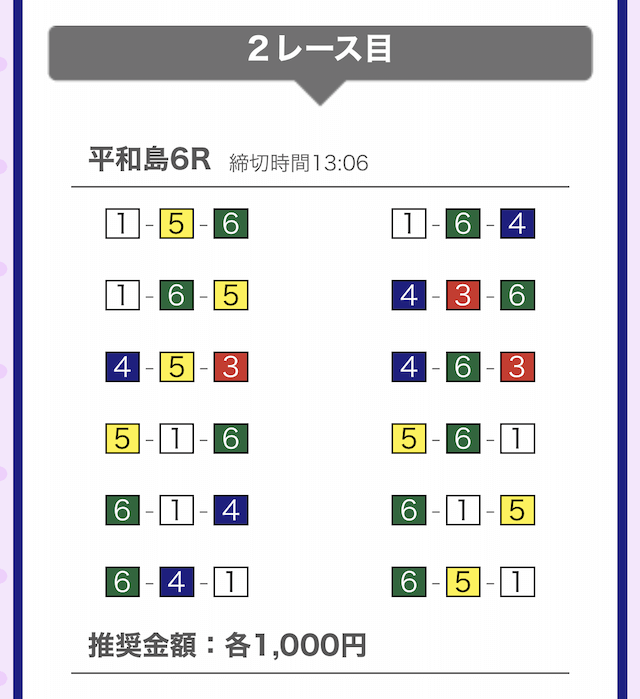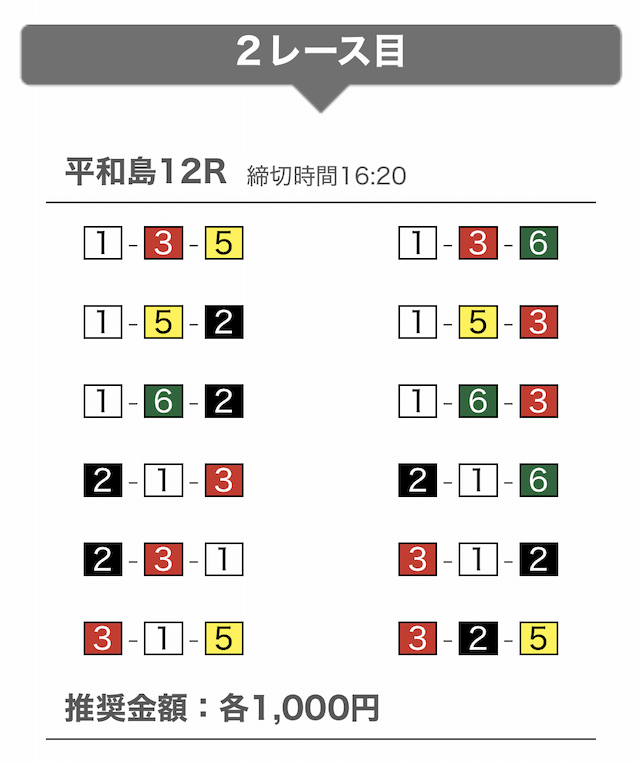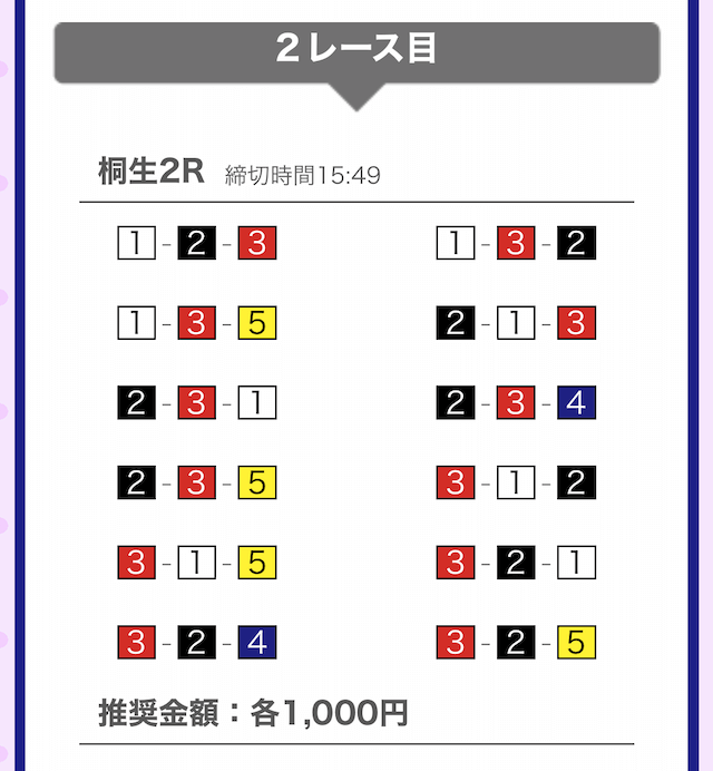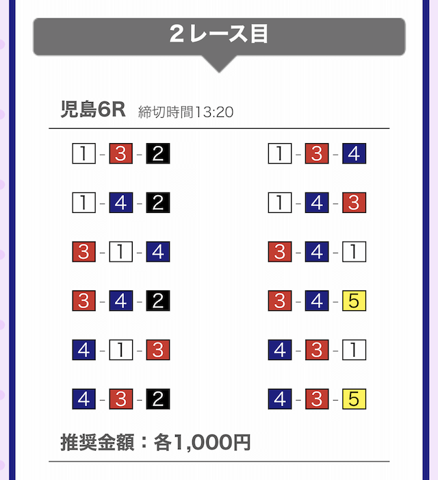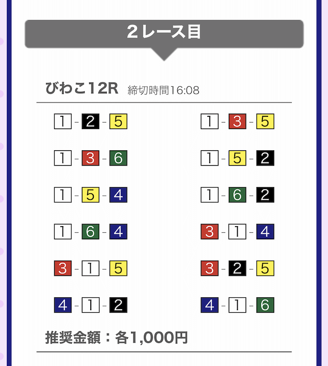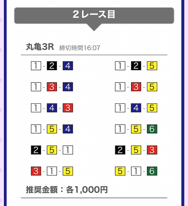 では、競艇戦線が実際に閲覧した買い目を見てみると・・・