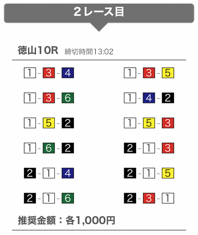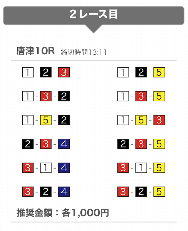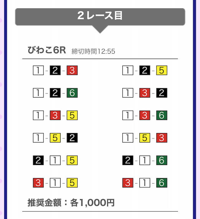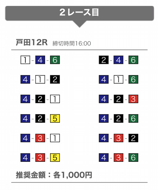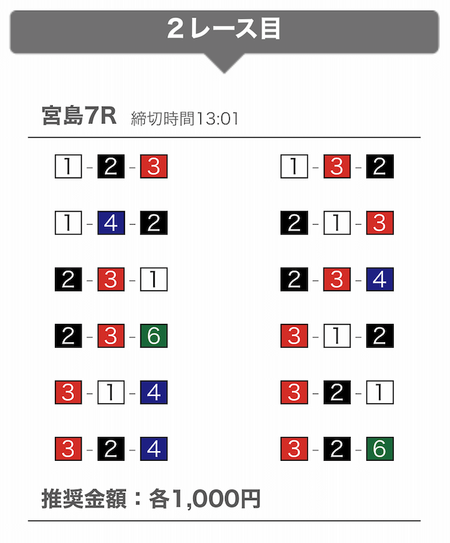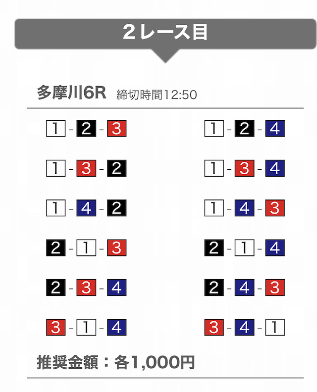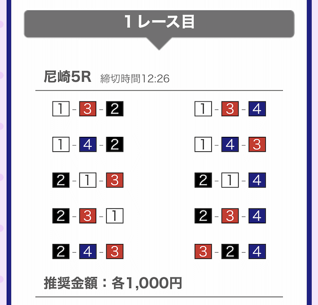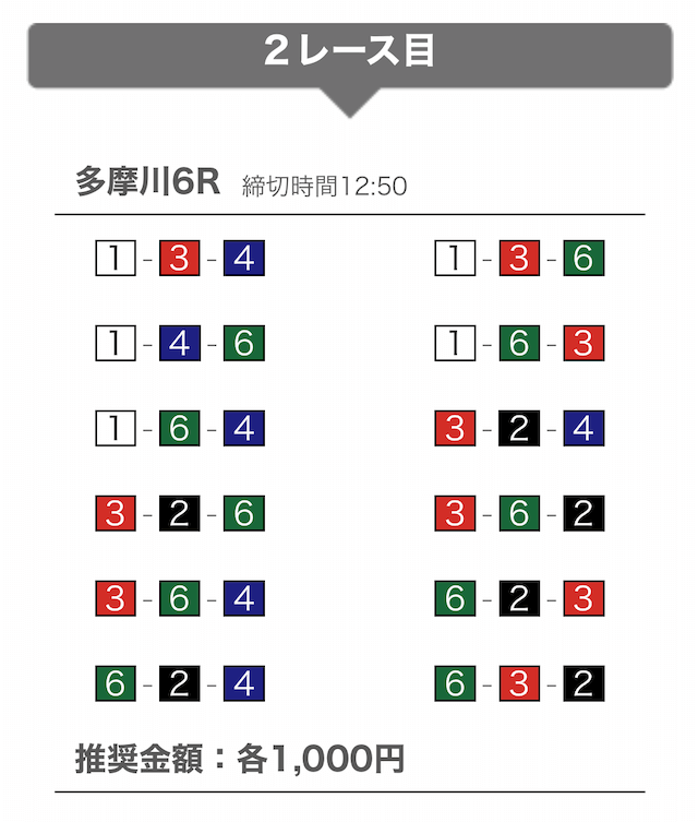 - 提供開始時刻:12時(2レース分公開)