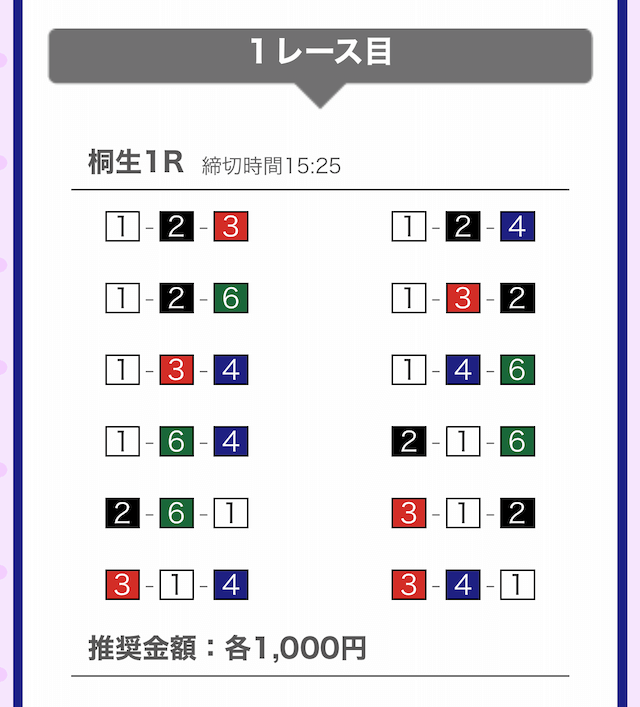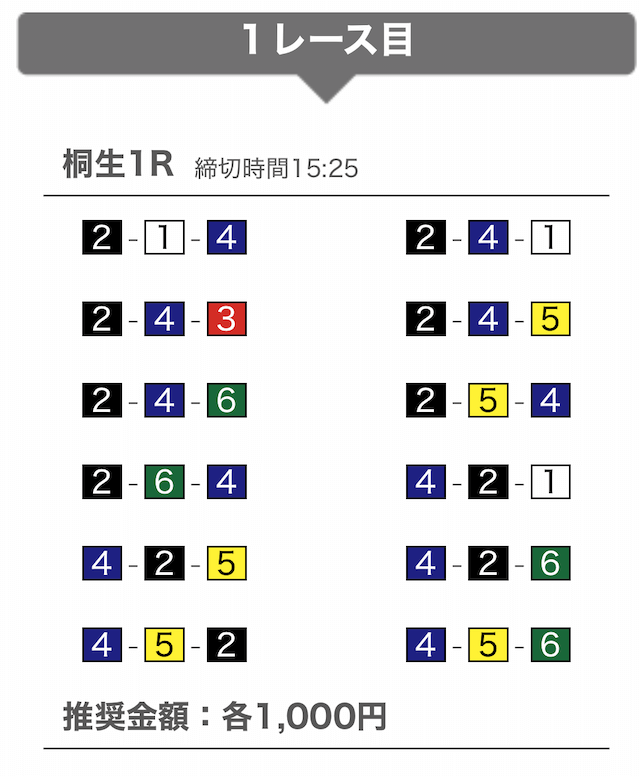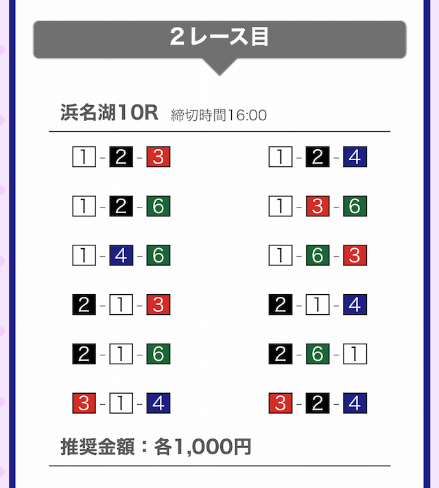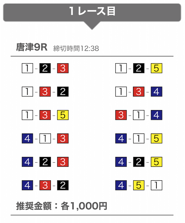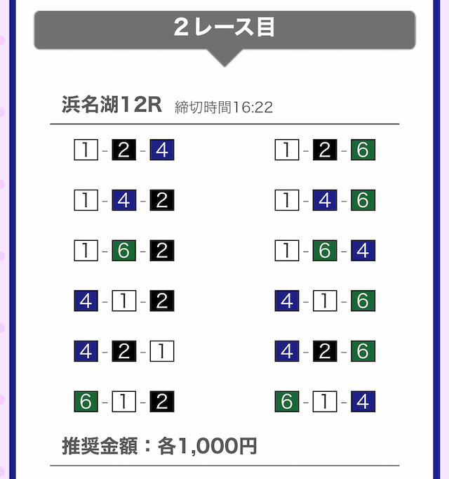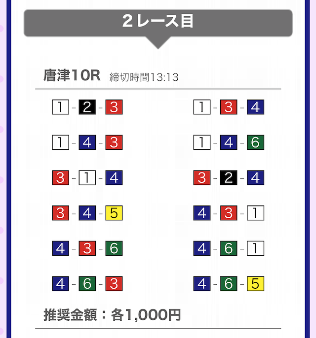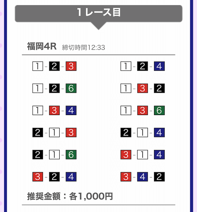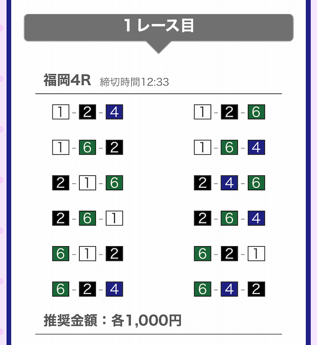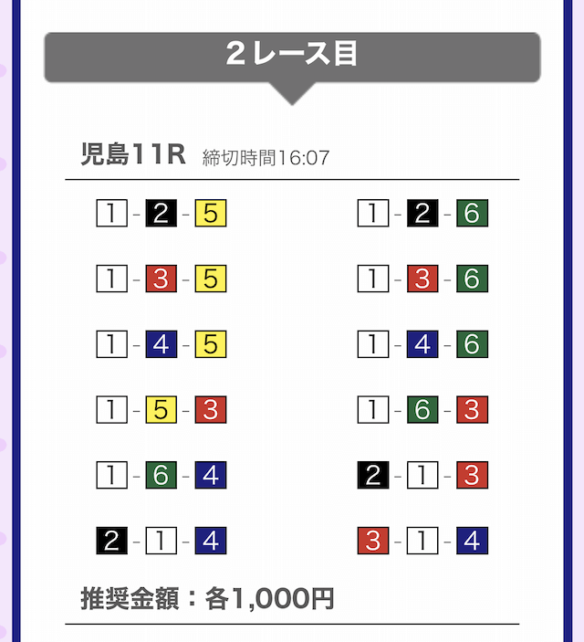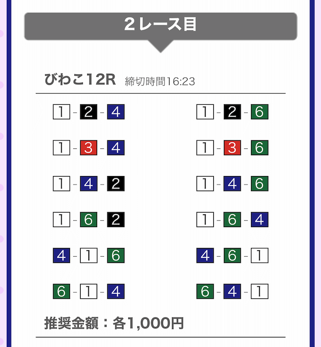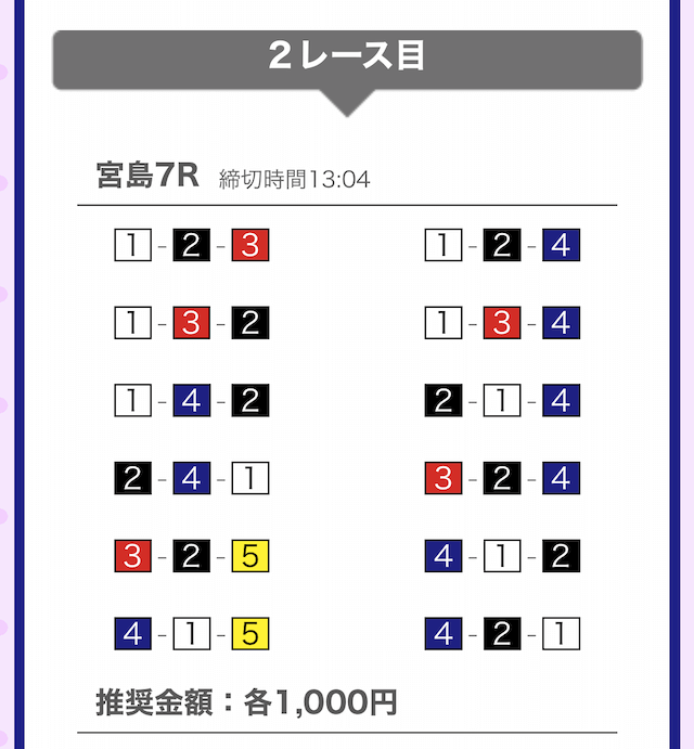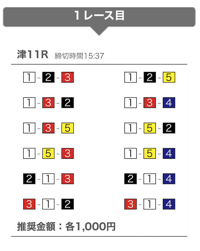 しっかりと①-②-④に1,000円を賭けています。