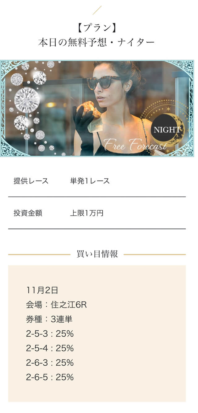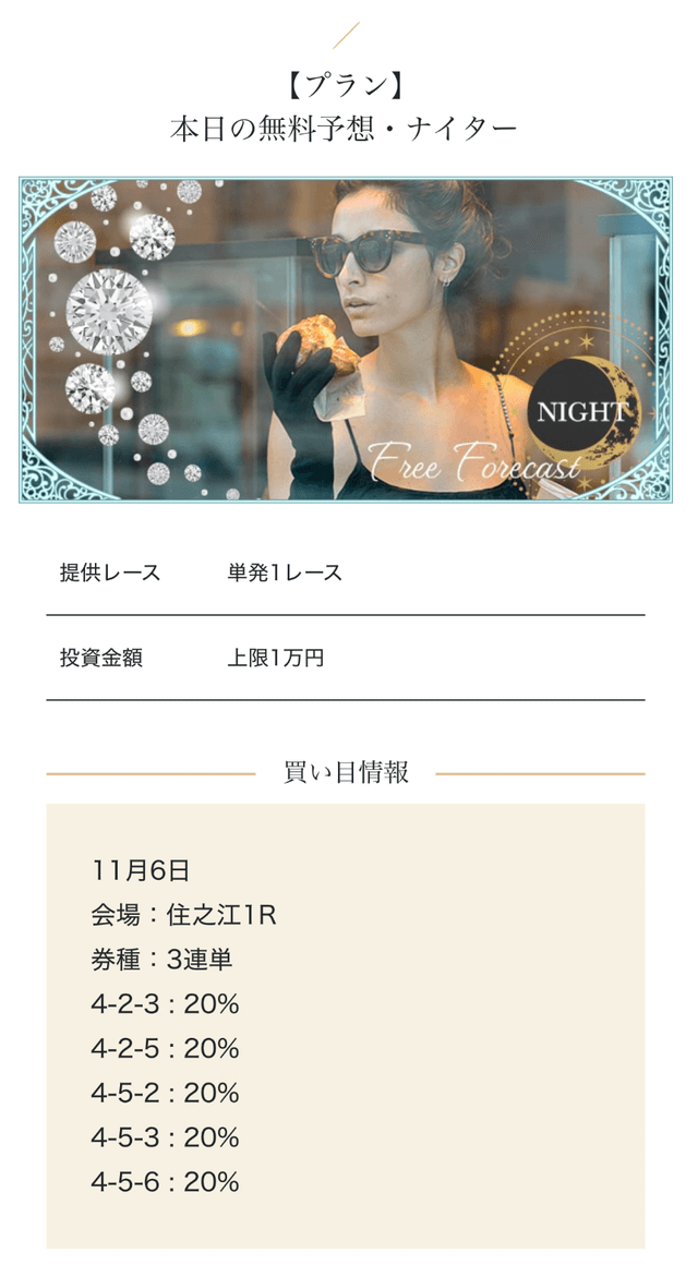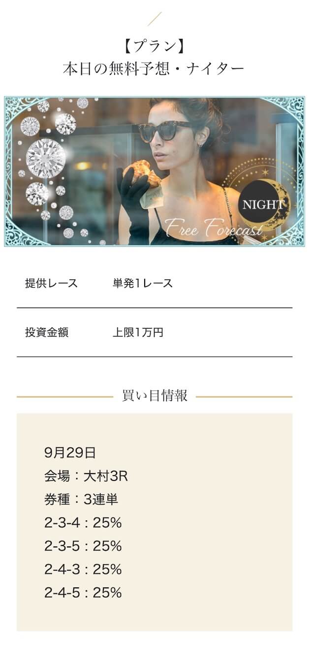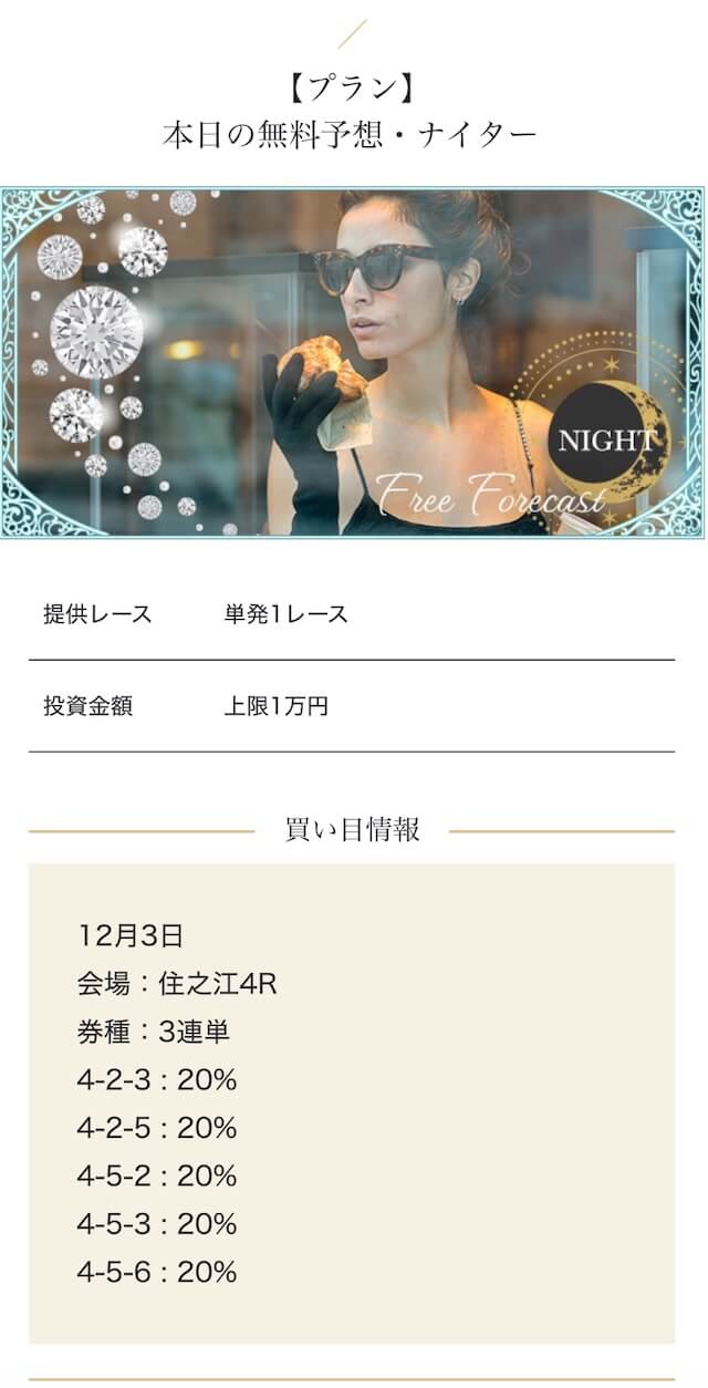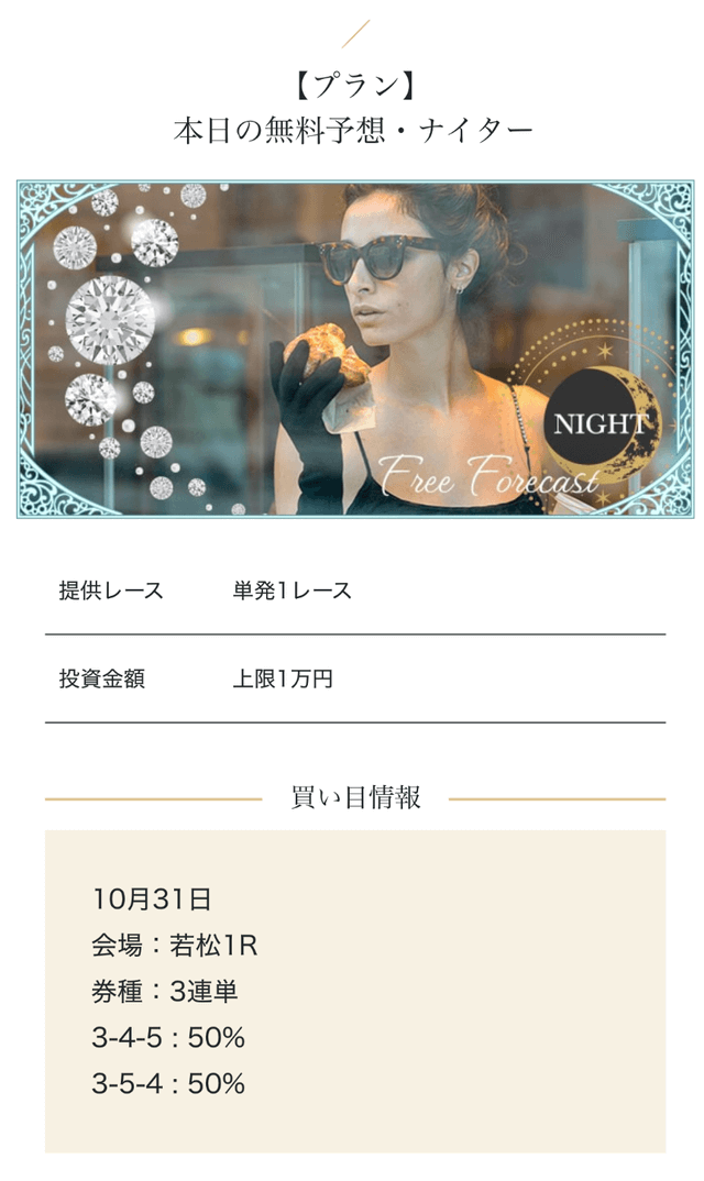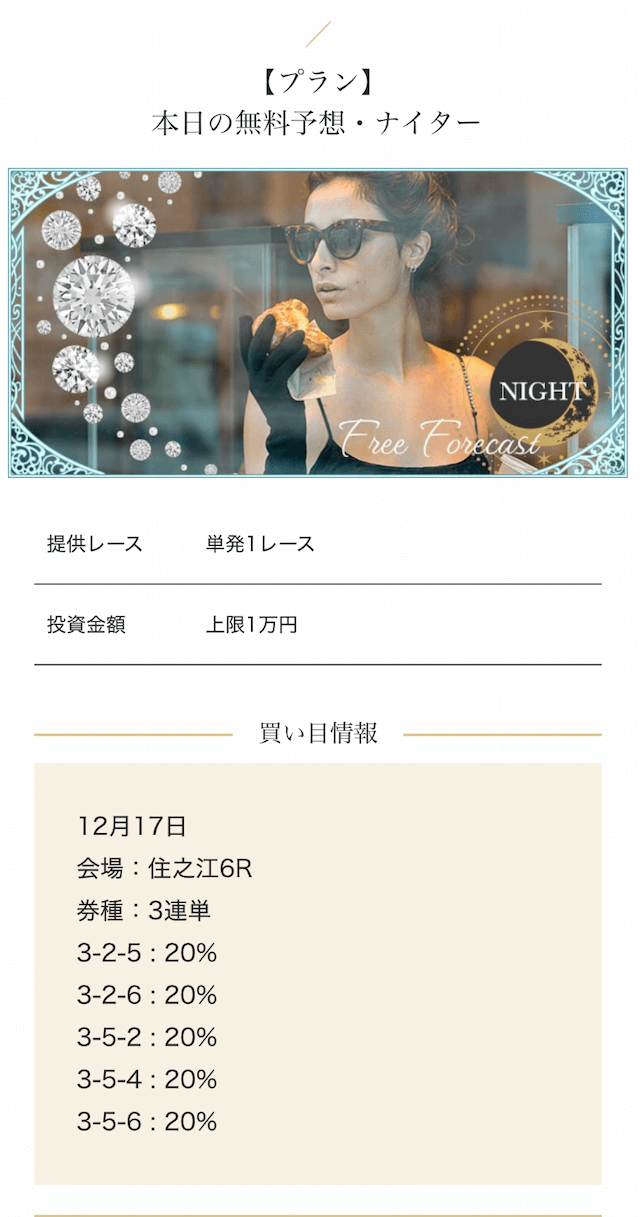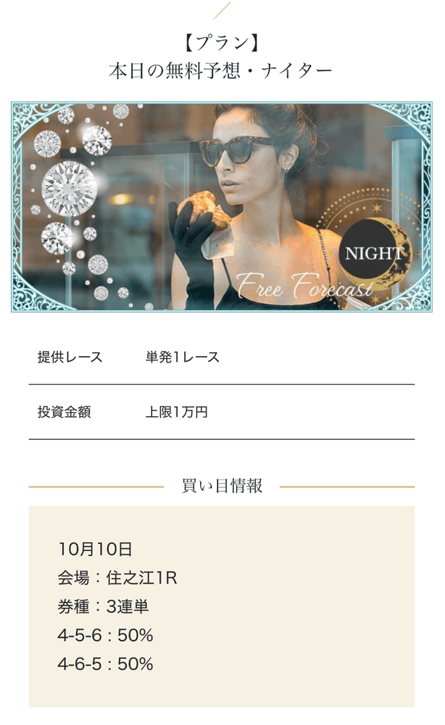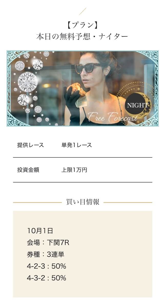 匿名高額プランを試したが、思ったほどの爆発力は感じなかった。期待が大きすぎたかもしれない・・・。結果的にプラったから良いけど、1レースで負けた時はハラハラしましたよ・・・。投稿日:2025/10/02