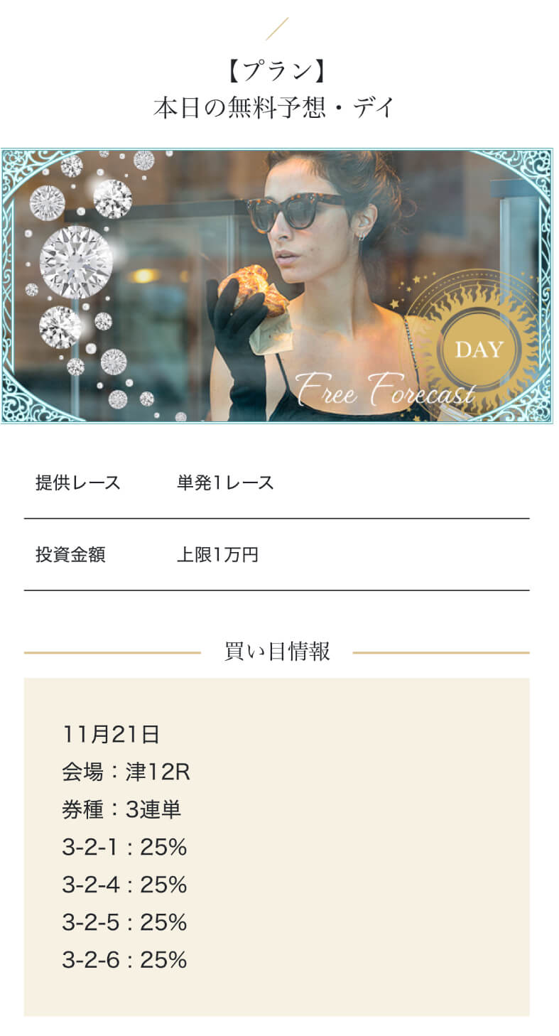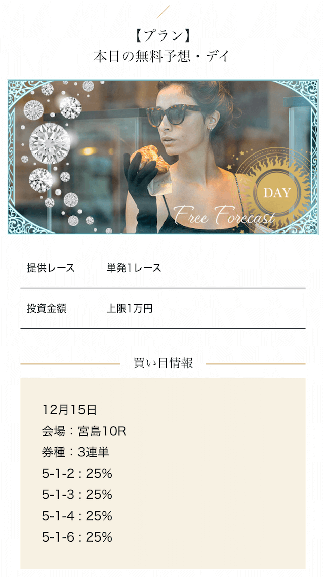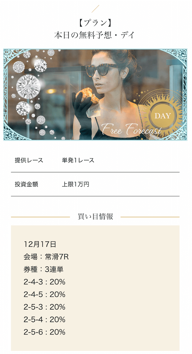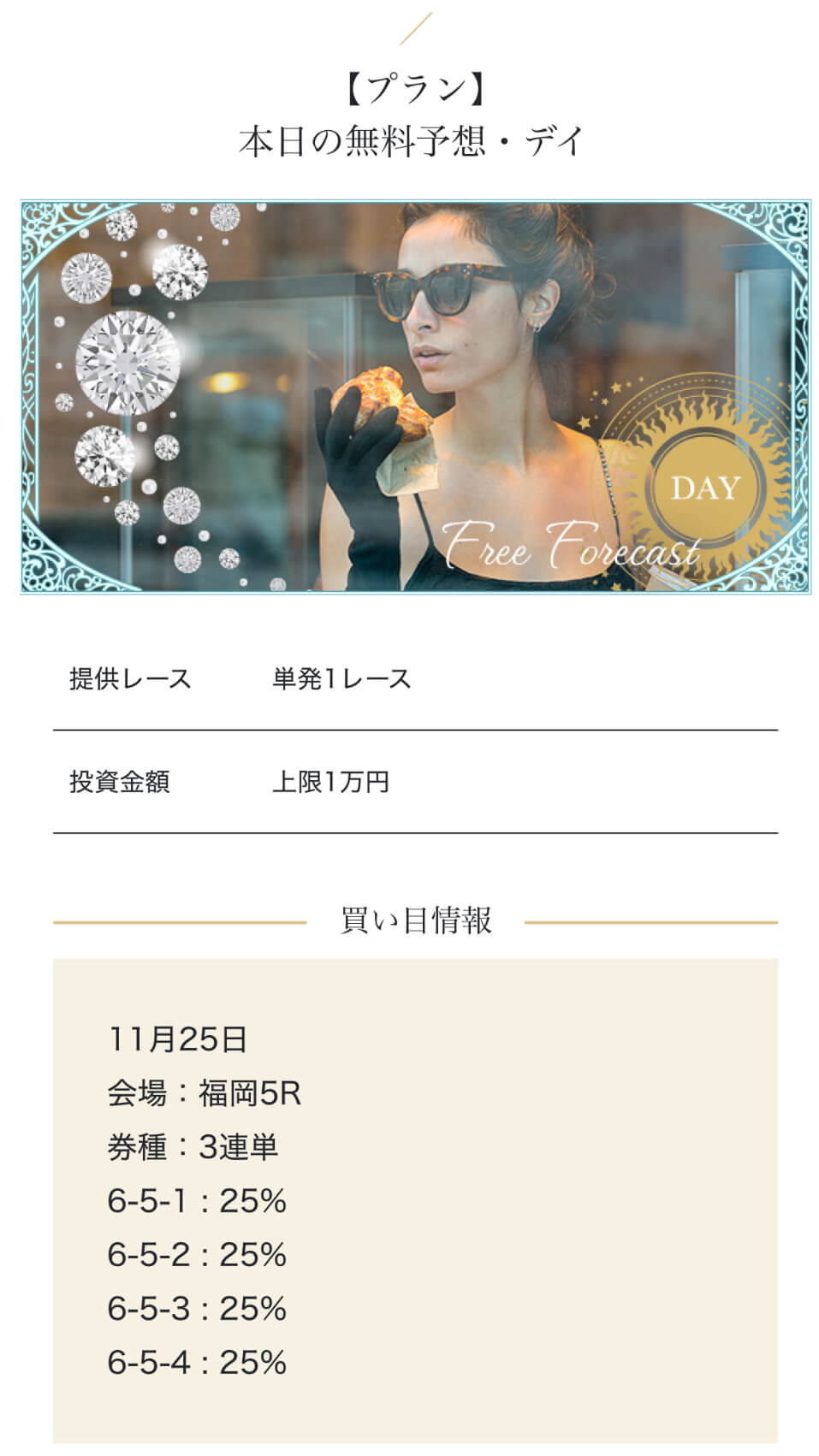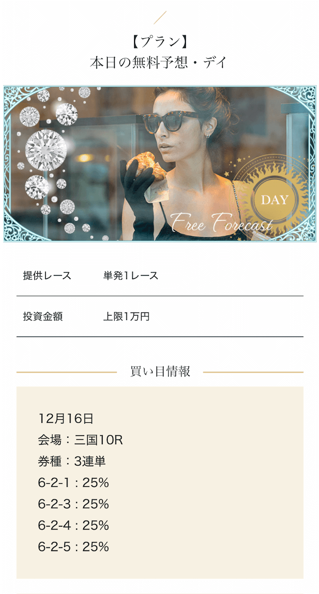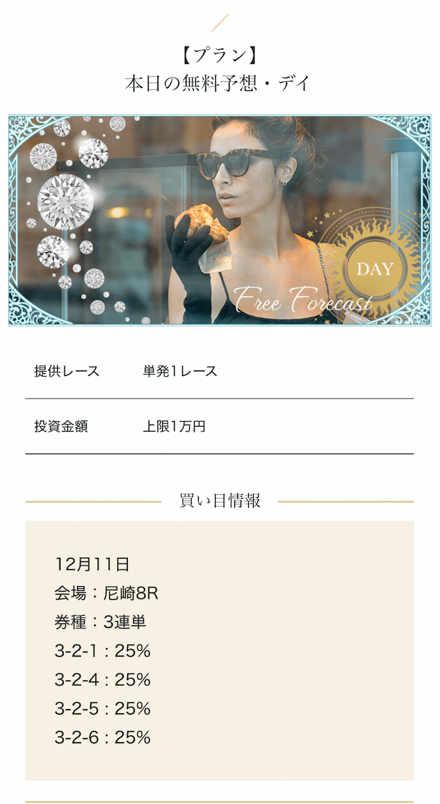 - 中堅プランの的中率が思った以上に高く、連続的中も経験できました。100カラット・75カラットはリスクを抑えながら堅実に資金が増えるのはありがたい。投稿日:2025/01/12