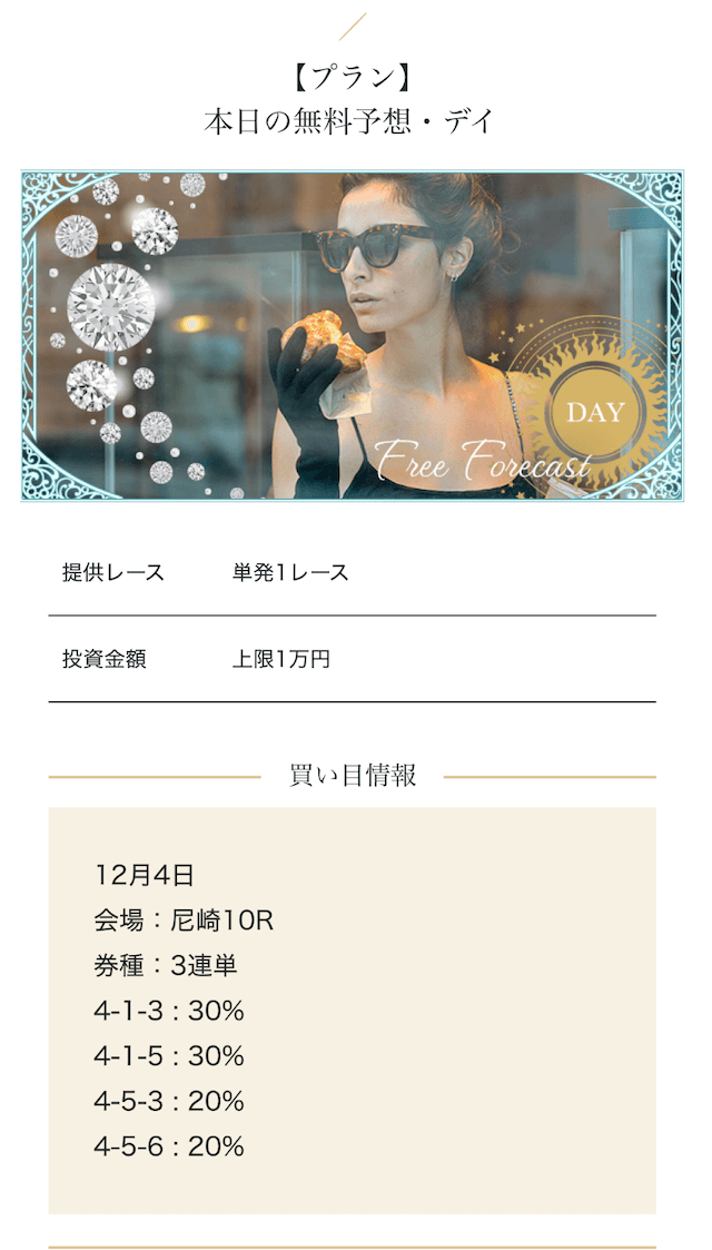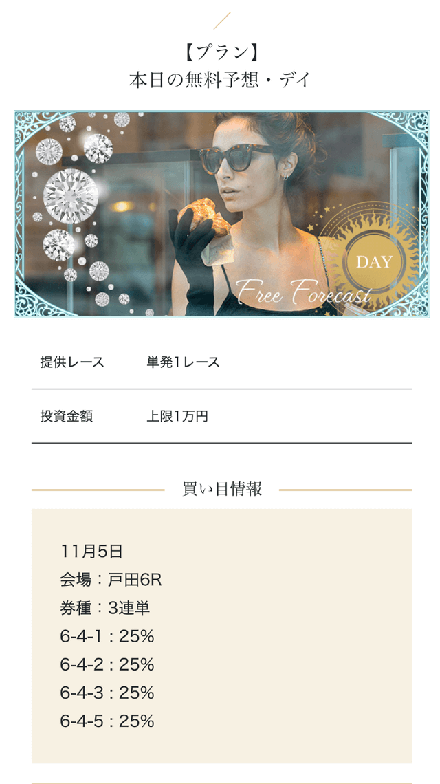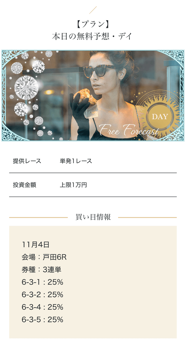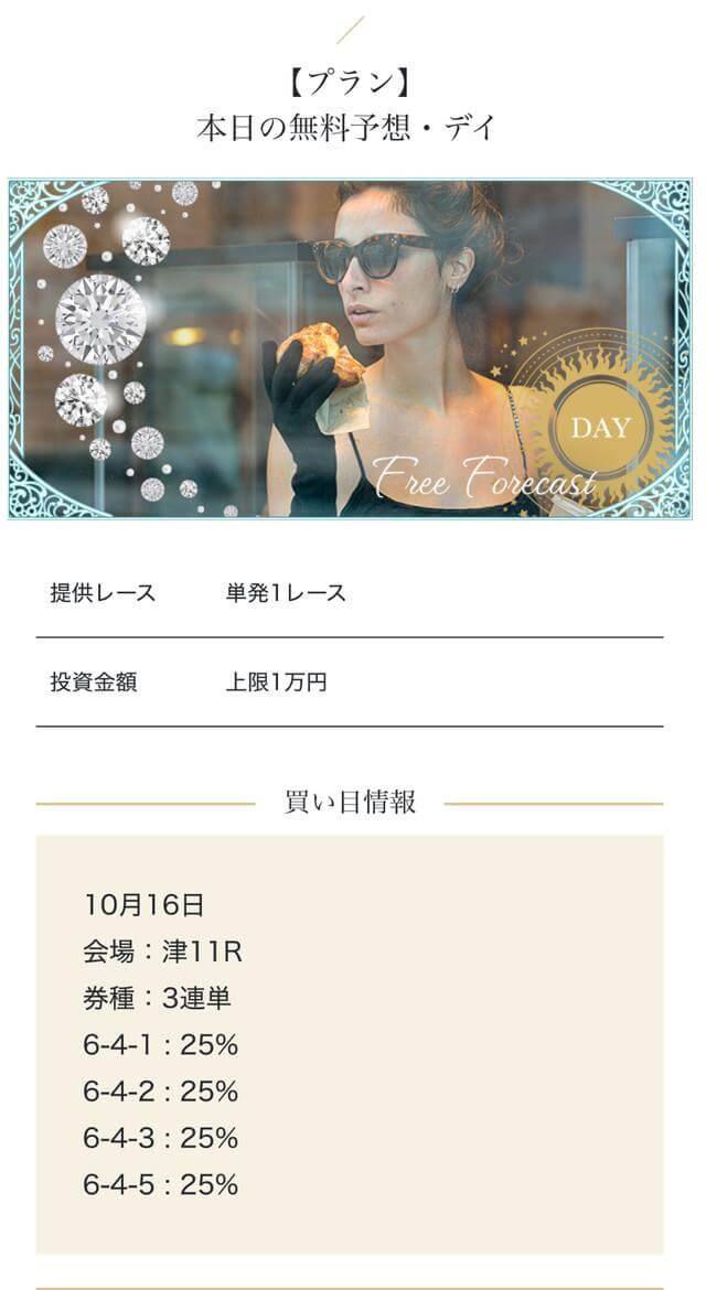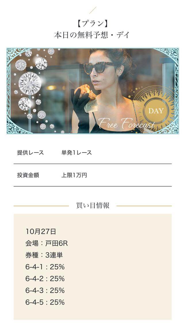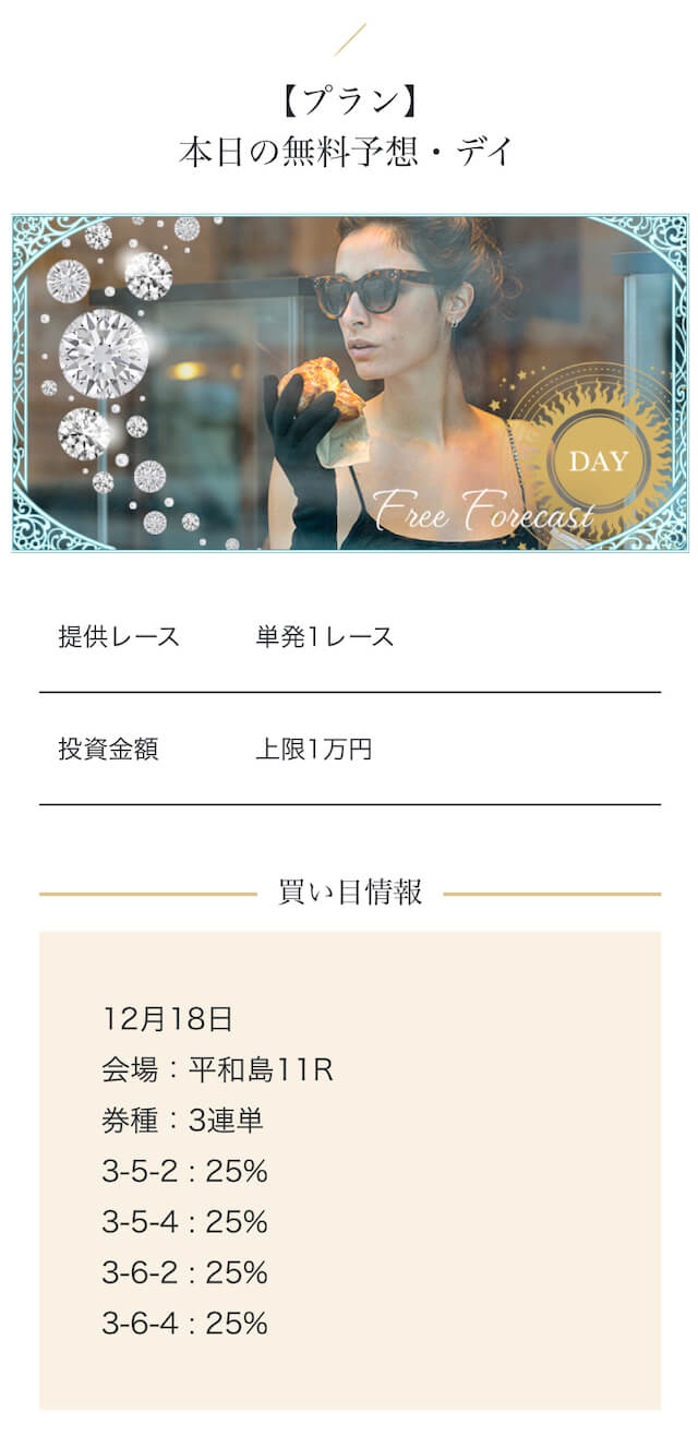 - 中堅プランの的中率が思った以上に高く、連続的中も経験できました。100カラット・75カラットはリスクを抑えながら堅実に資金が増えるのはありがたい。投稿日:2025/01/12
