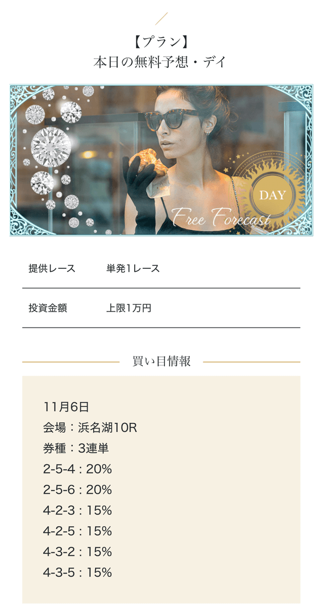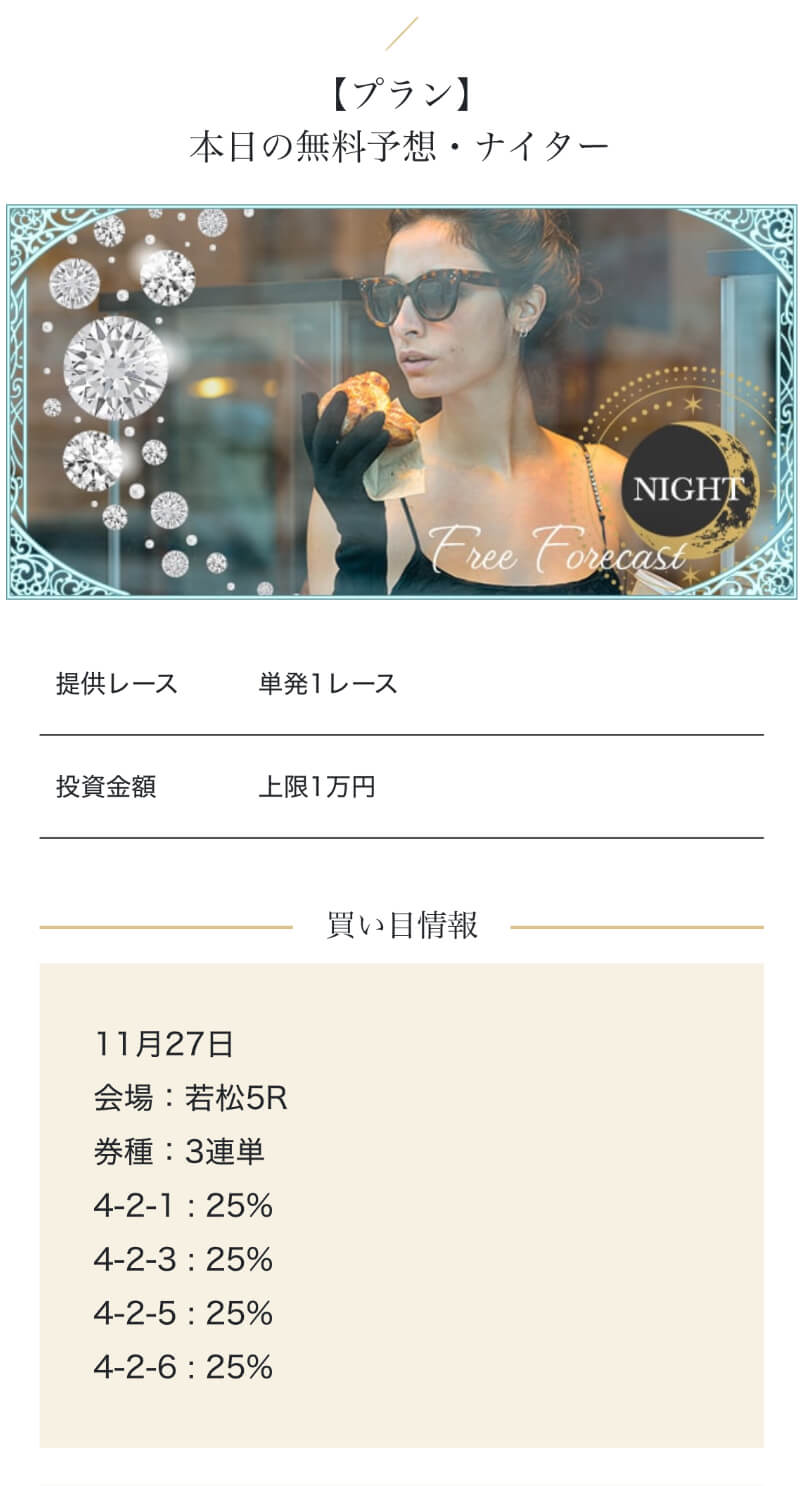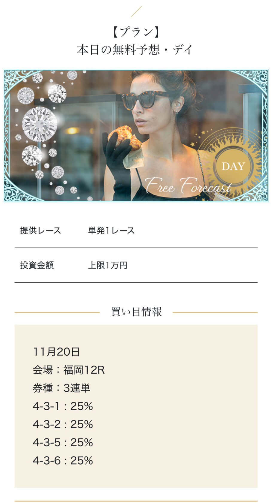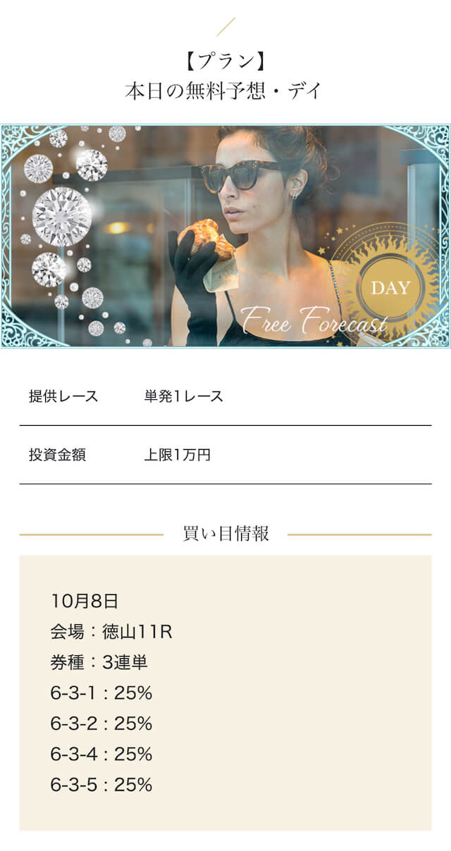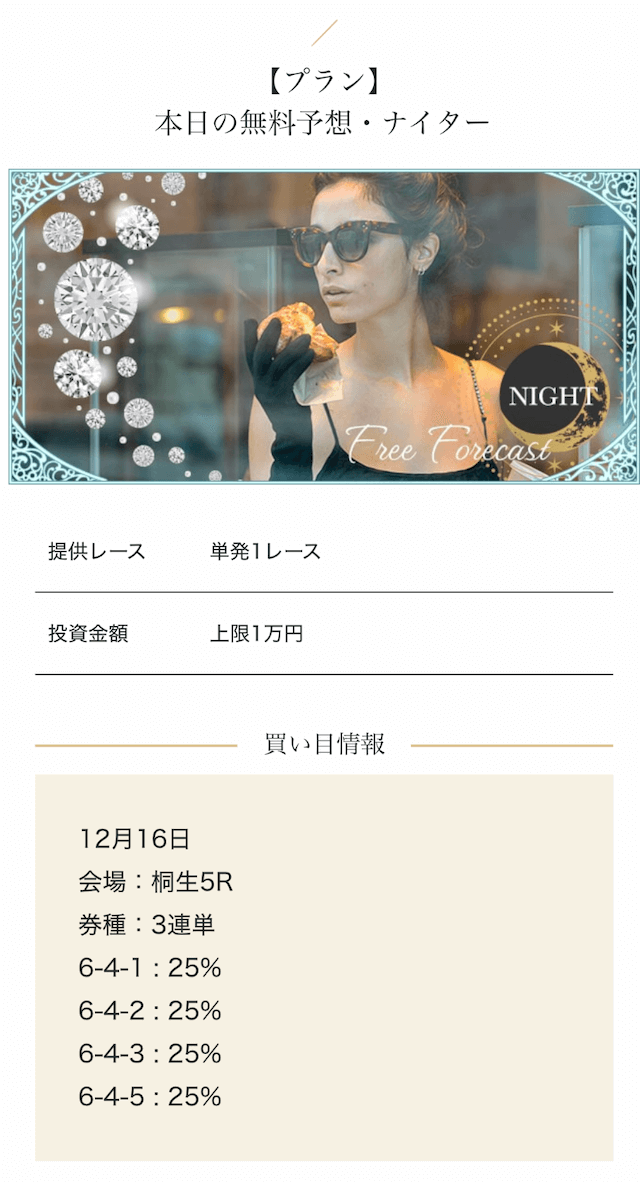 - 中堅プランの的中率が思った以上に高く、連続的中も経験できました。100カラット・75カラットはリスクを抑えながら堅実に資金が増えるのはありがたい。投稿日:2025/01/12