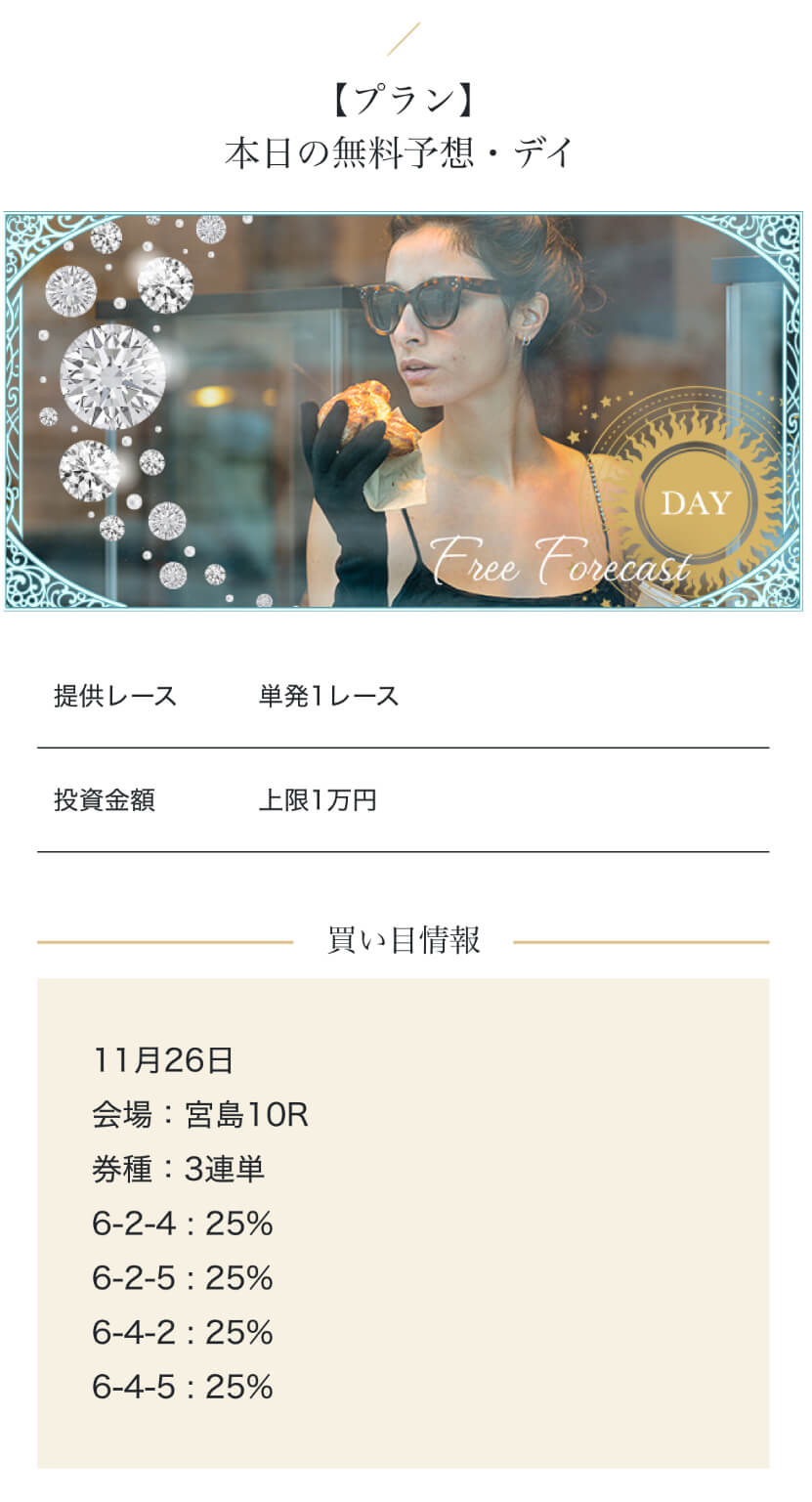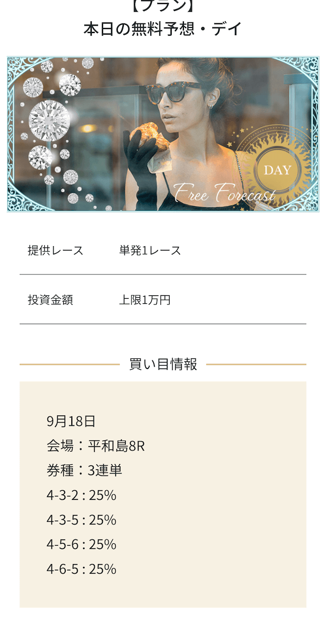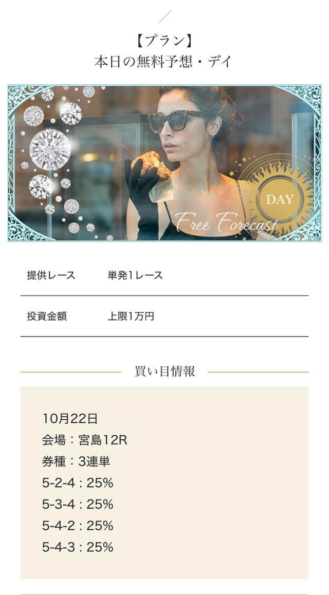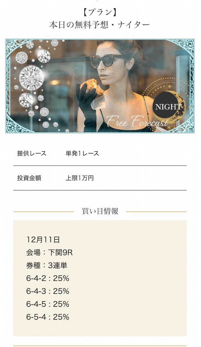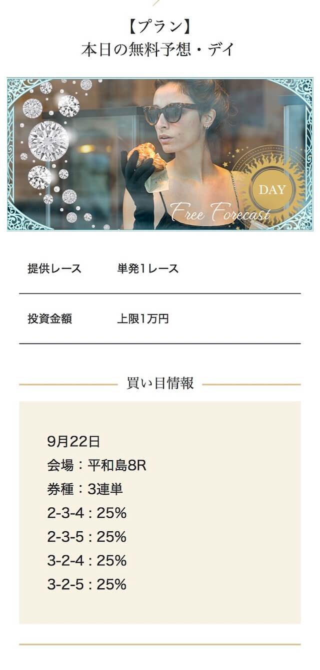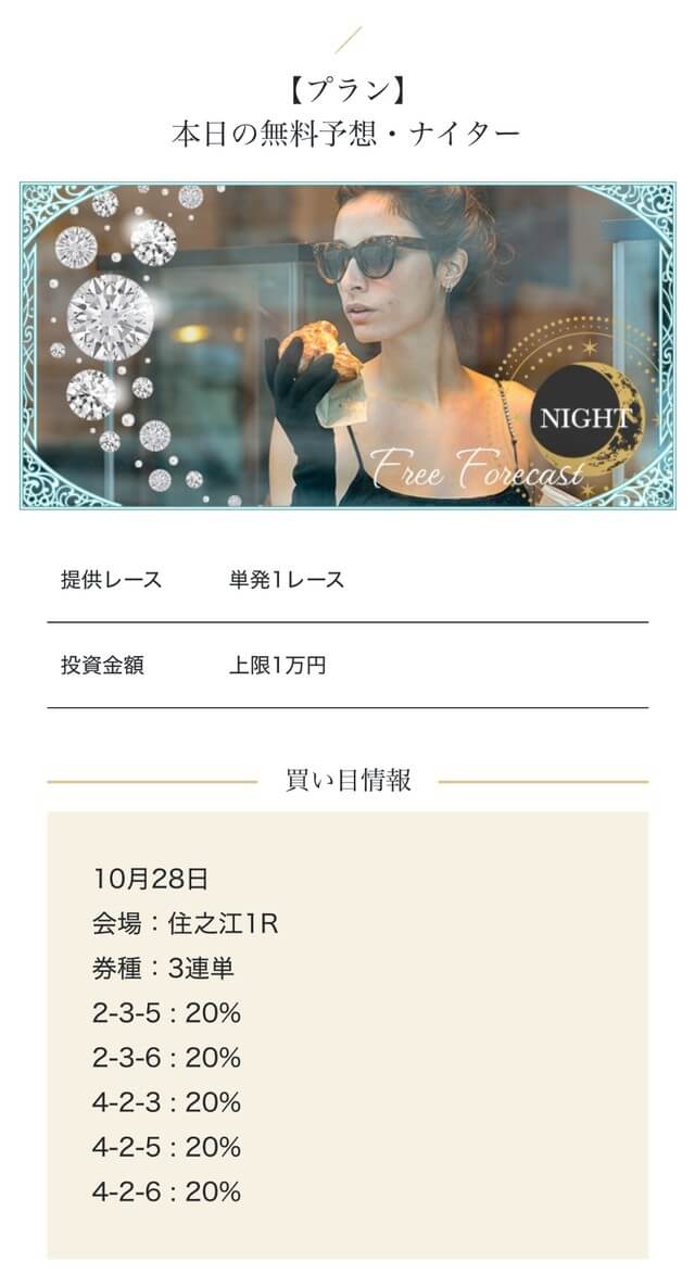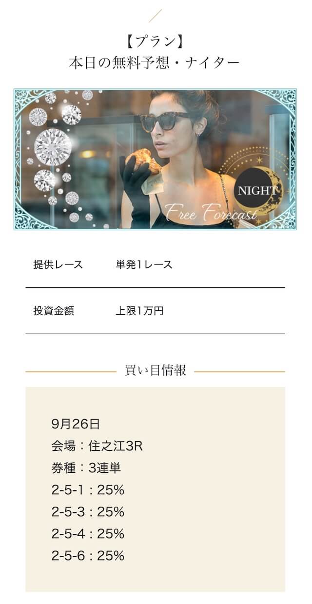 - 2025/09/10的中 無料予想で224,400円獲得2025/08/22的中 無料予想で57,050円獲得2025/06/18的中 無料予想で83,250円獲得2025/04/06的中 無料予想で59,200円獲得2025/03/05的中 無料予想で39,600円獲得2025/02/12的中 無料予想で30,750円獲得2025/01/21的中 無料予想で784,250円獲得2025/01/17的中 無料予想で129,250円獲得2025/01/10的中 無料予想で61,500円獲得2024/12/30的中 無料予想で254,600円獲得