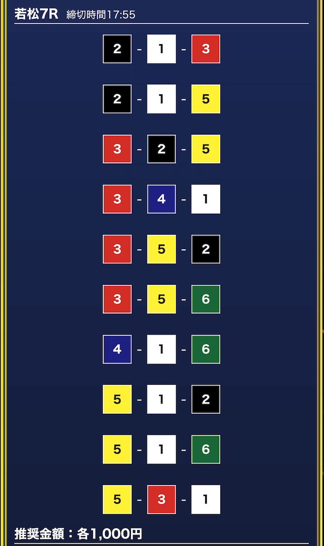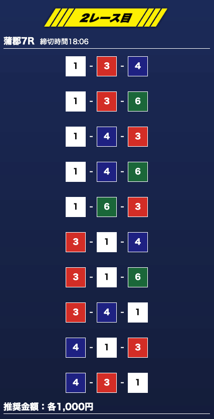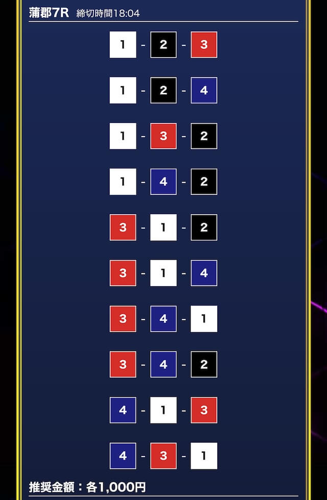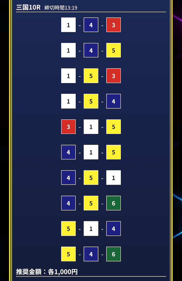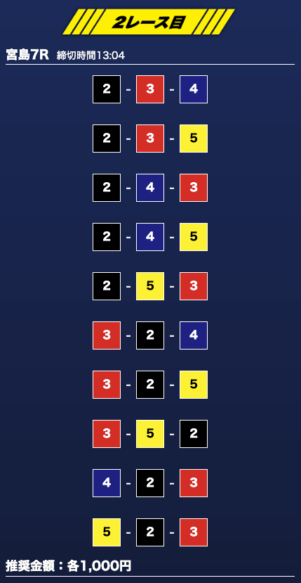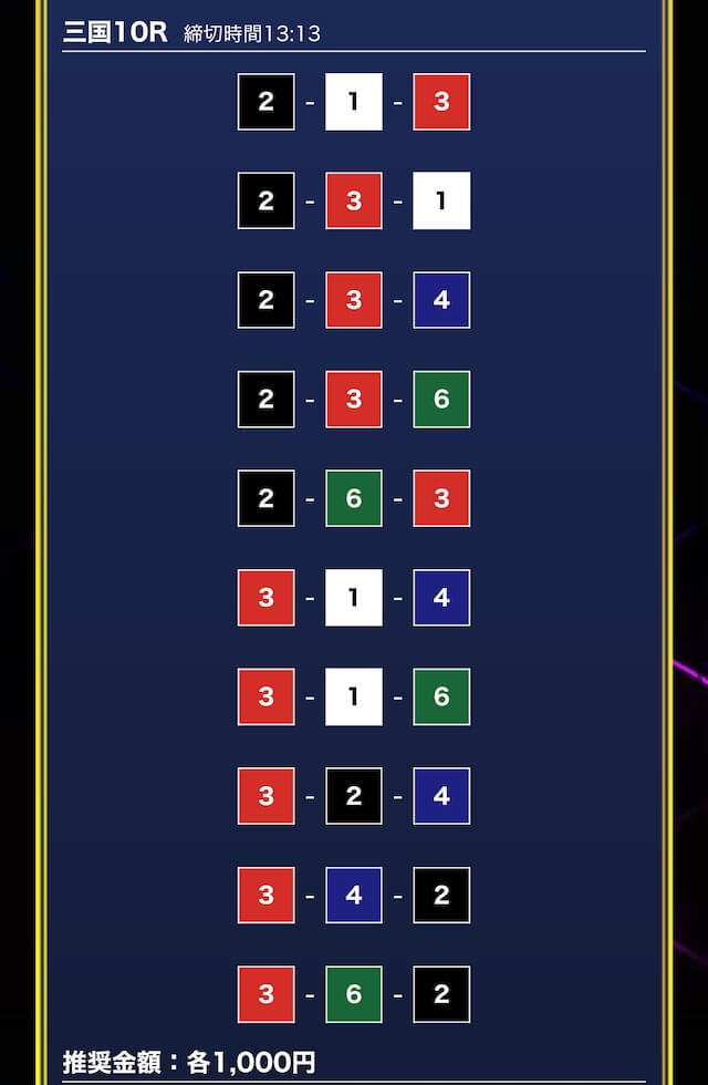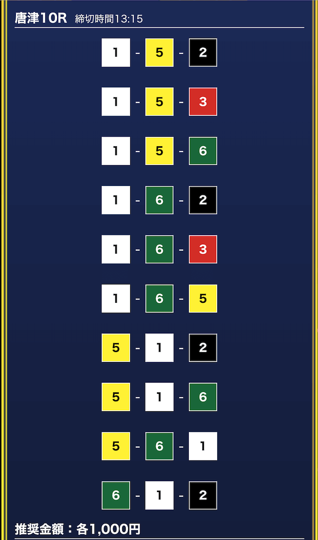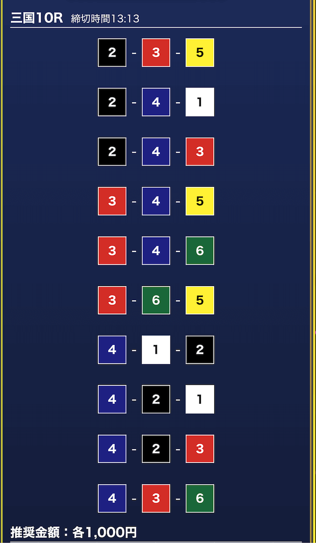 - 券種:3連単10点