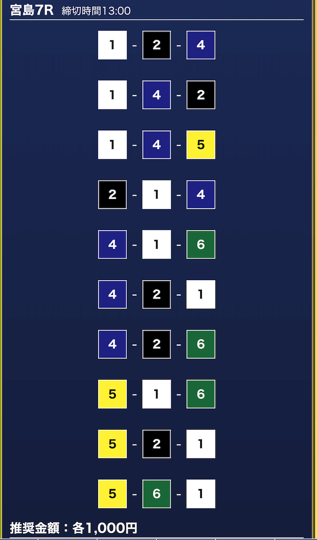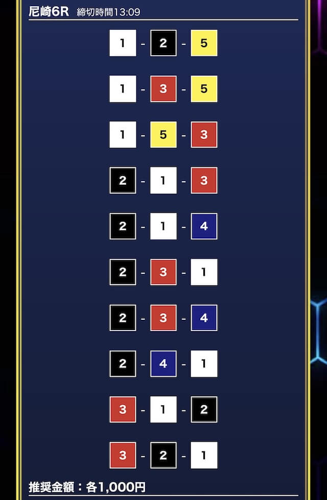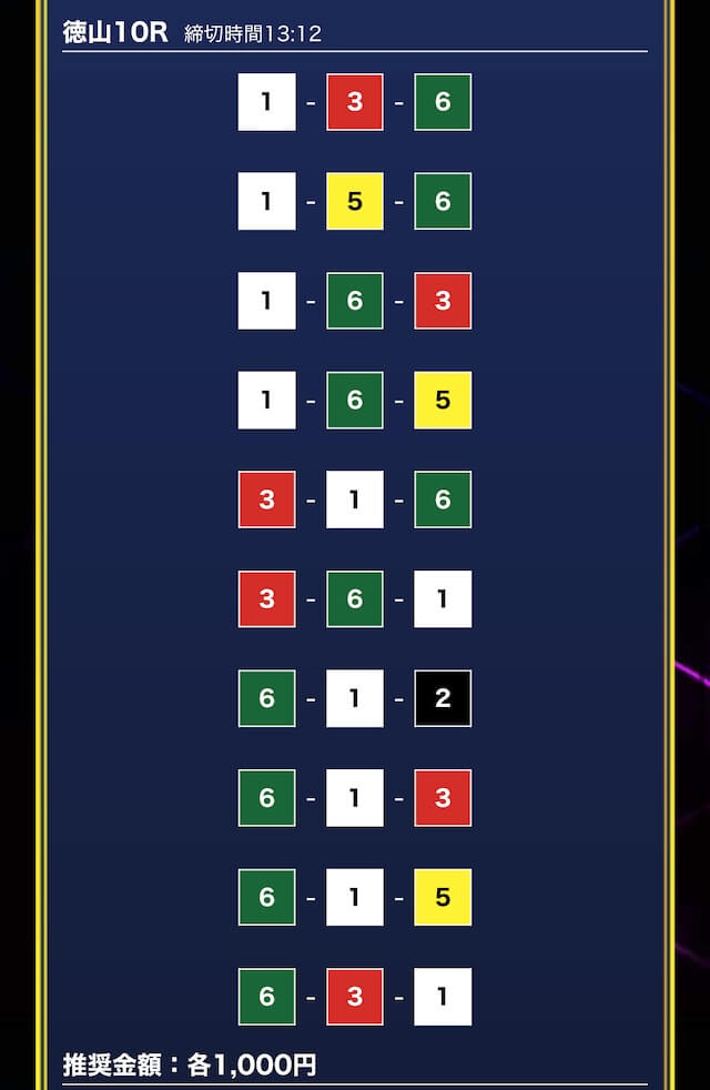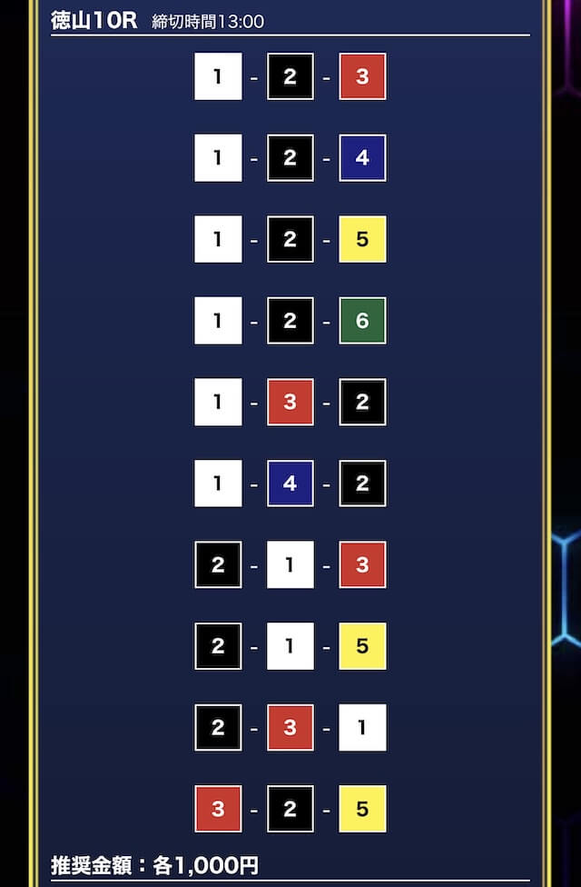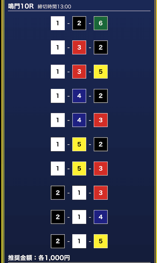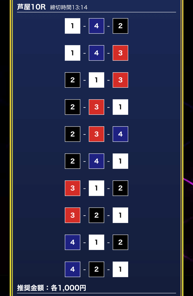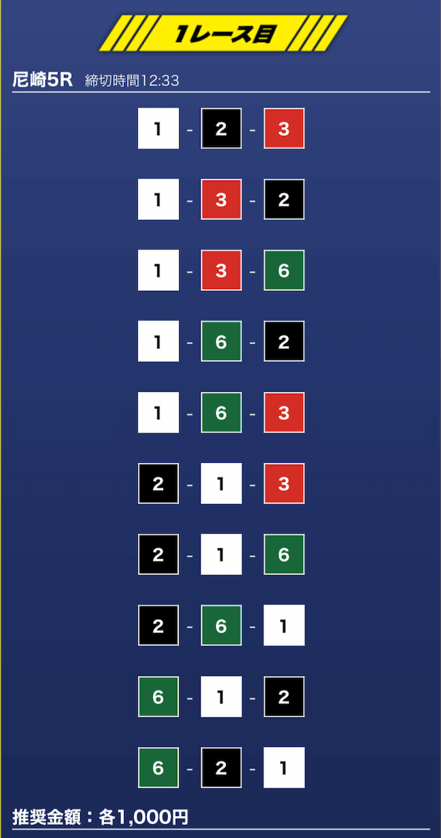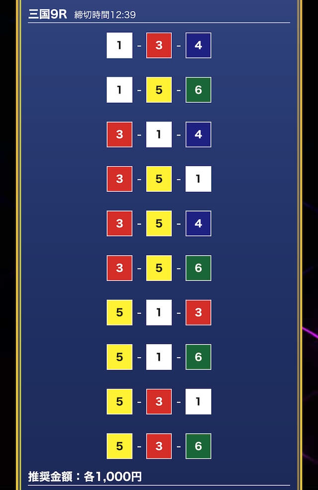 - 券種:3連単10点