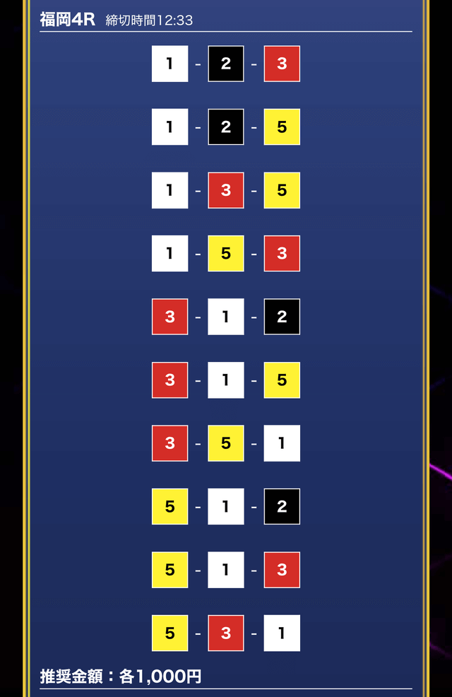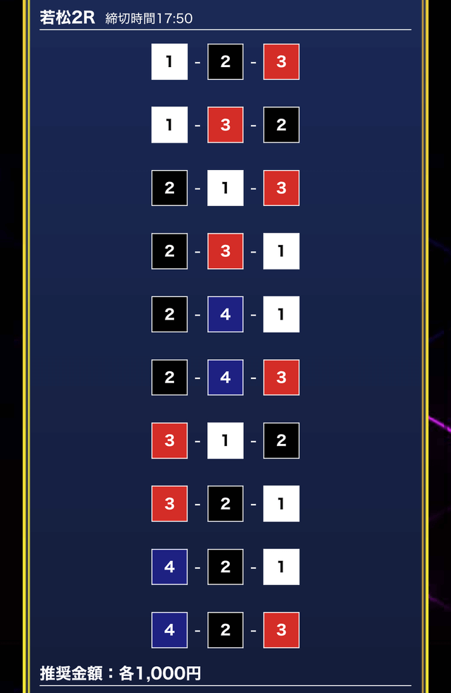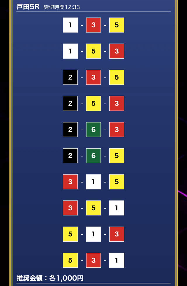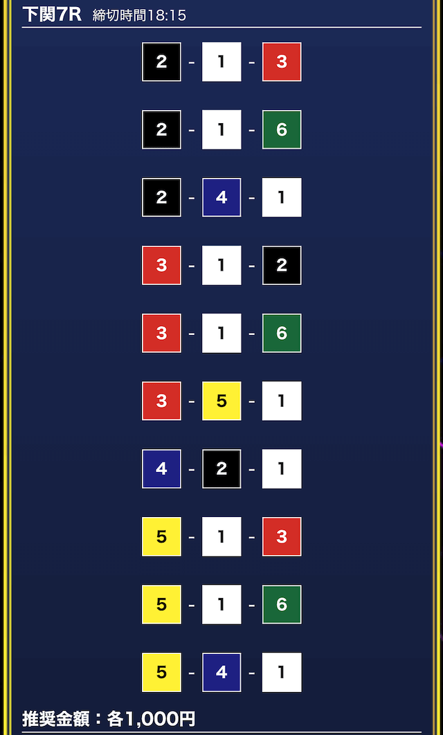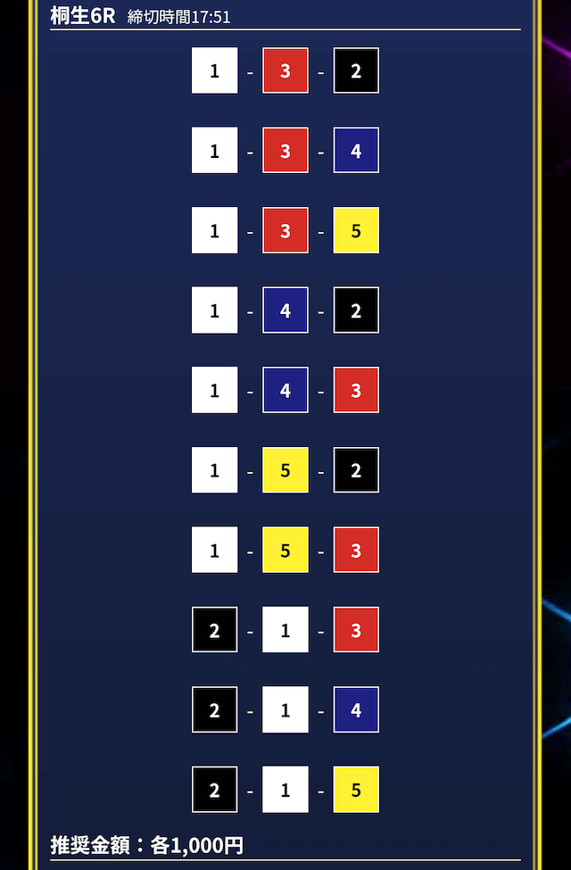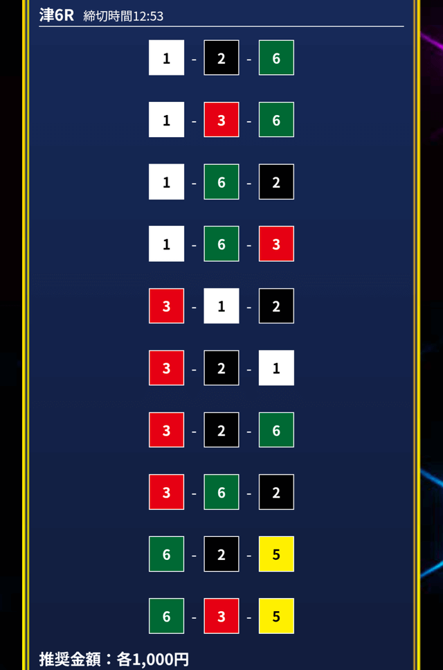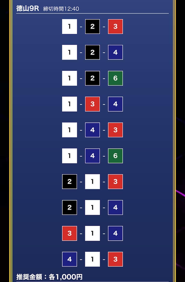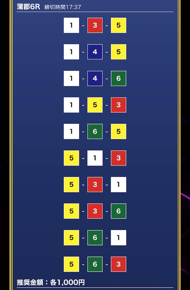 - 券種:3連単10点