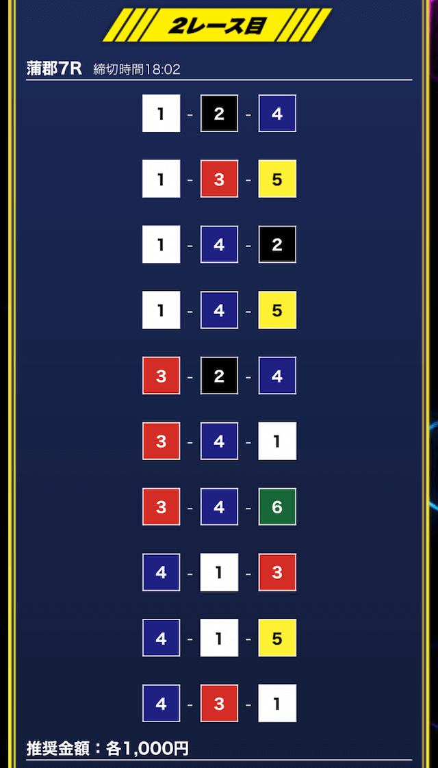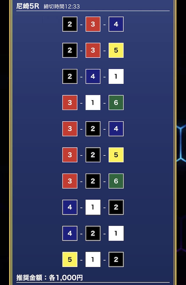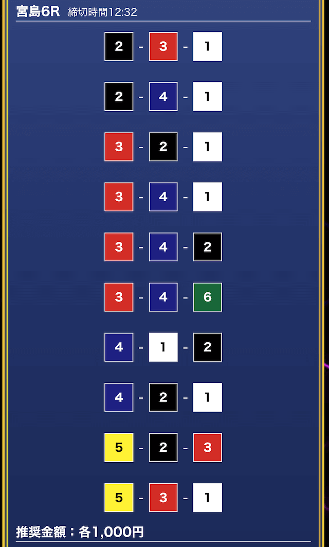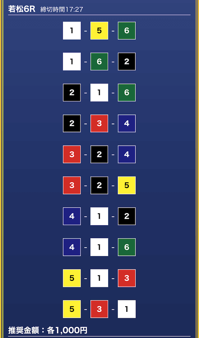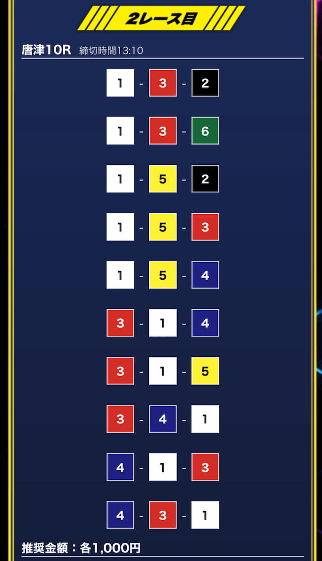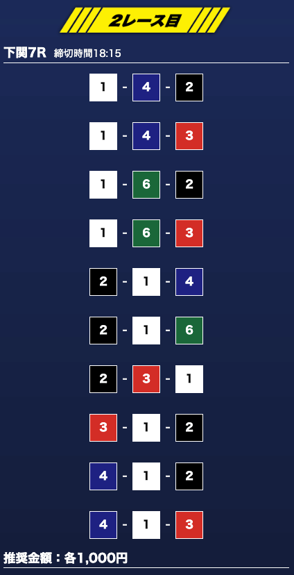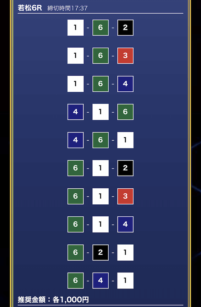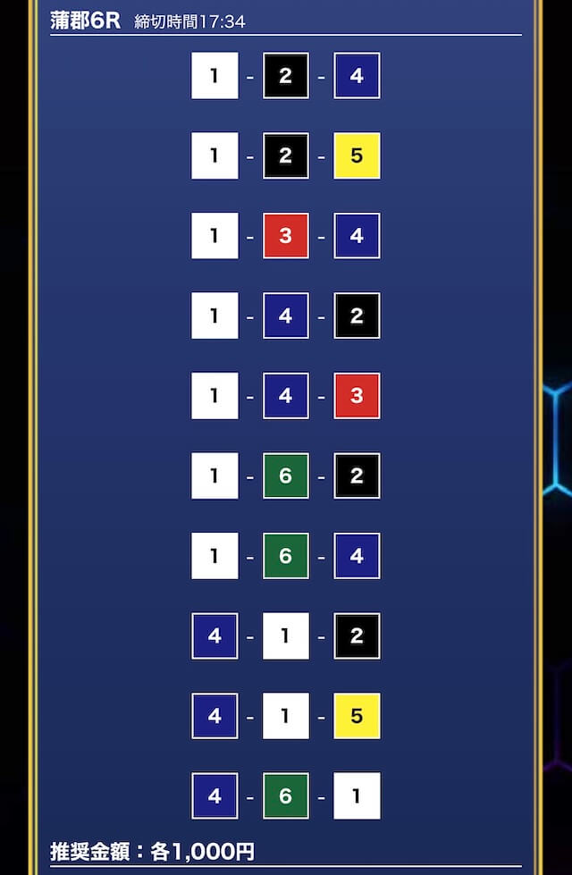 - 買い目点数が多くてコスパは△(無料予想)