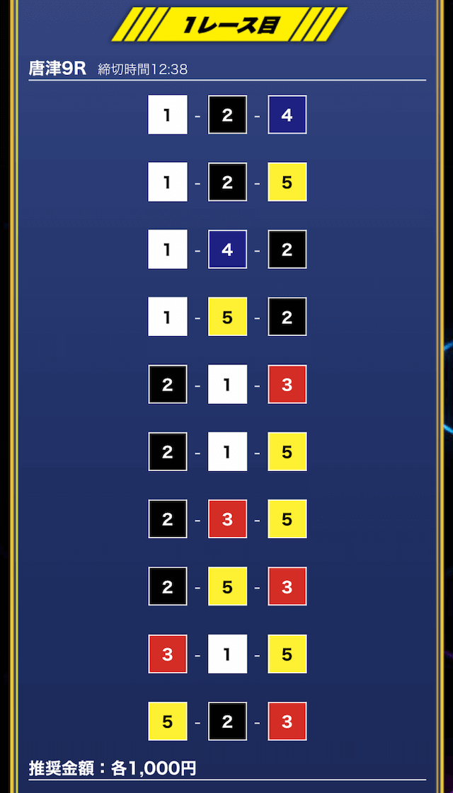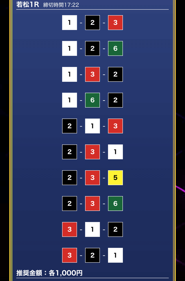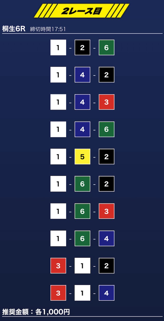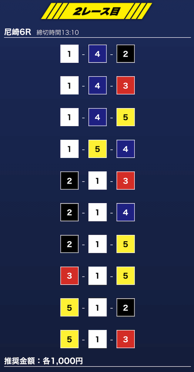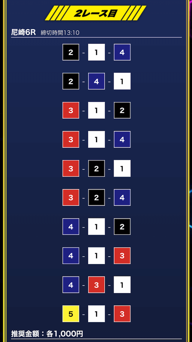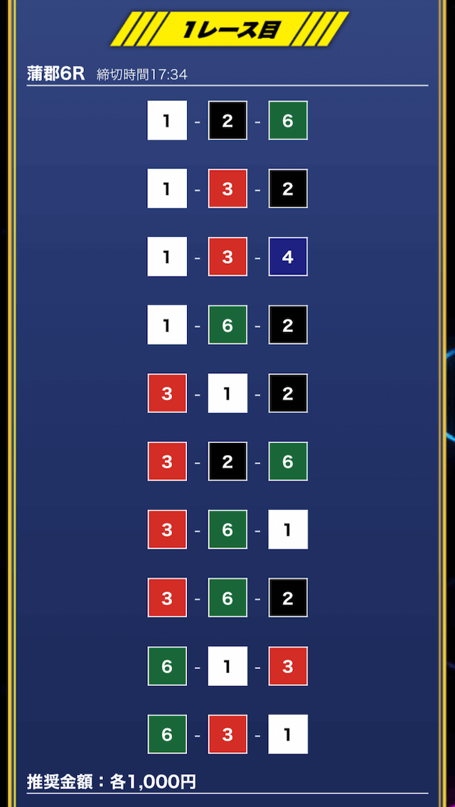 - 買い目点数が多くてコスパは△(無料予想)