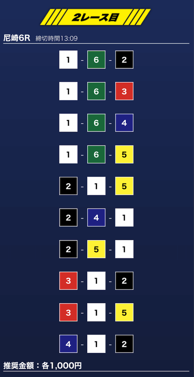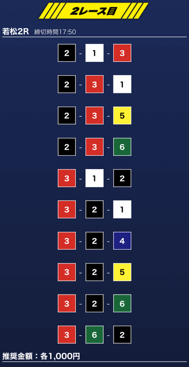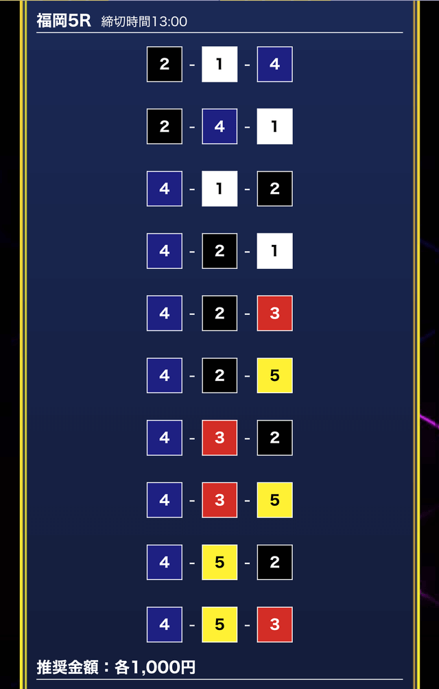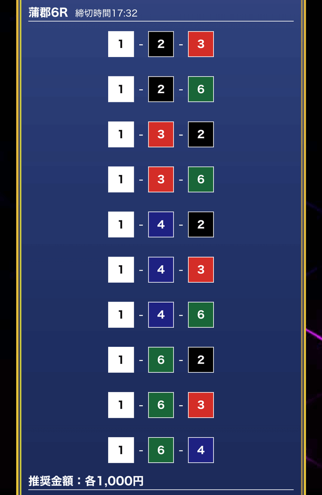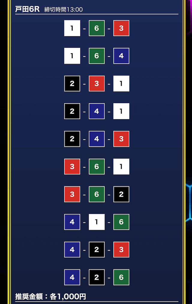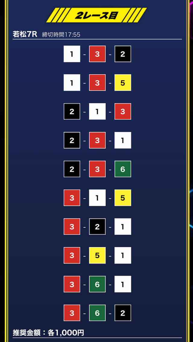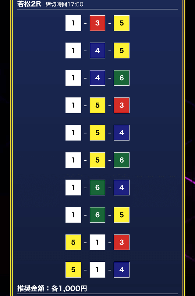 - 買い目点数が多くてコスパは△(無料予想)