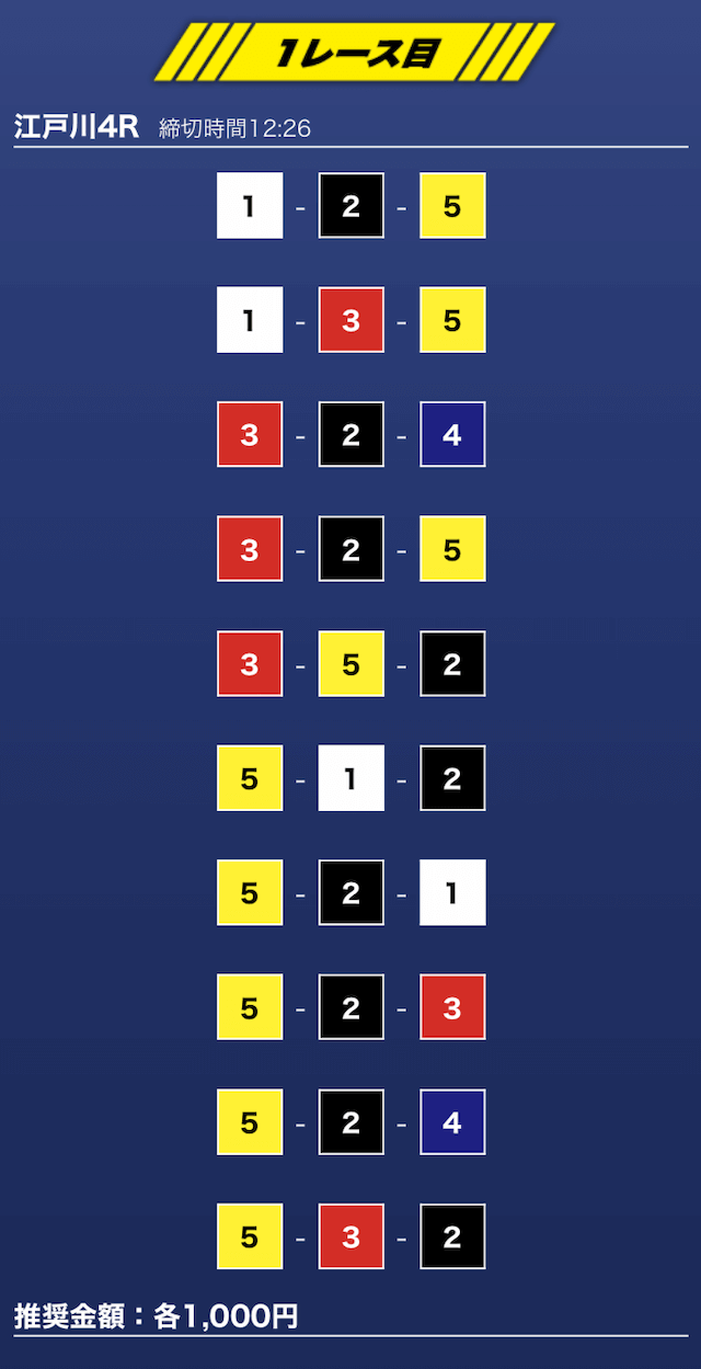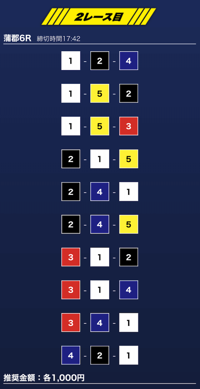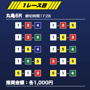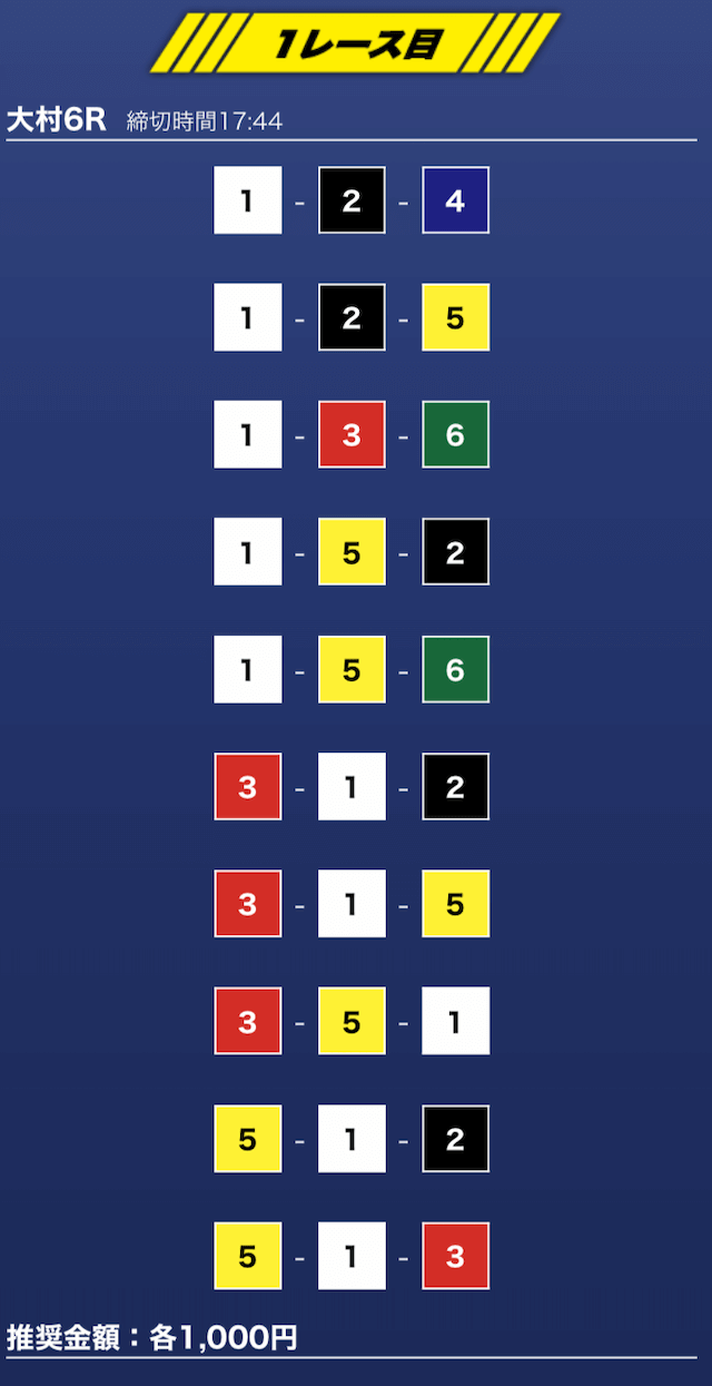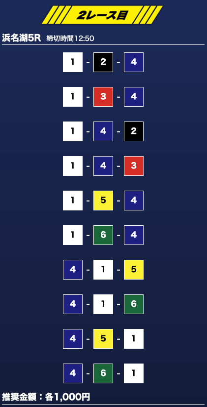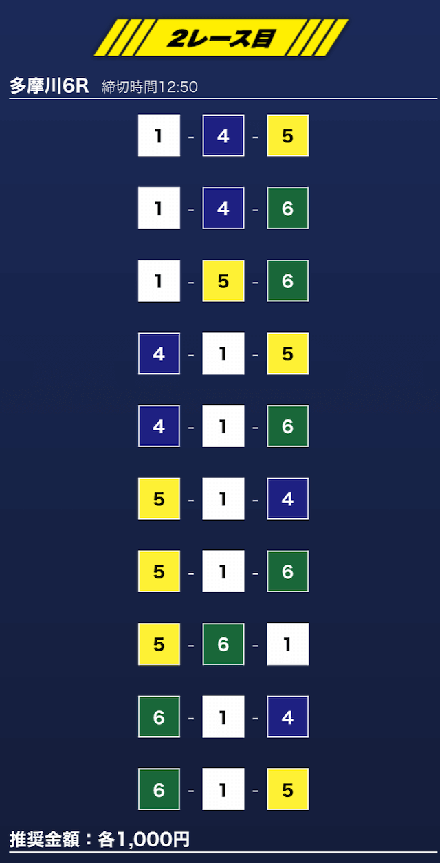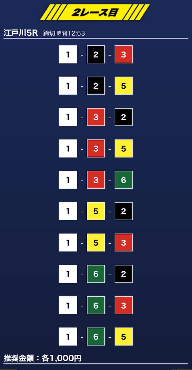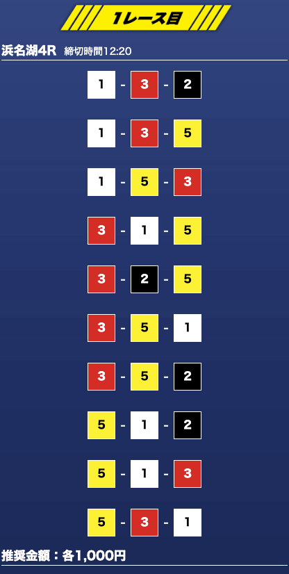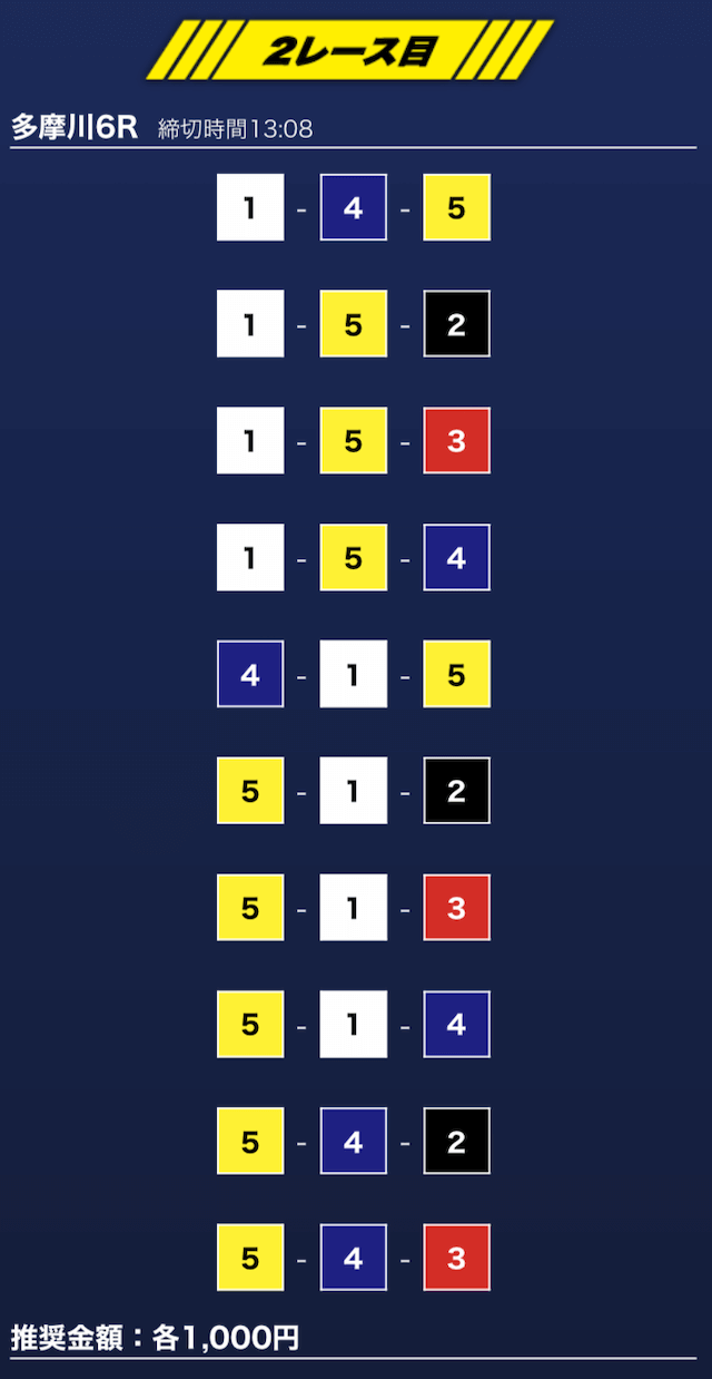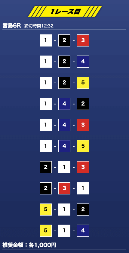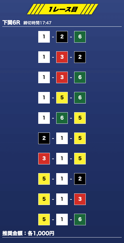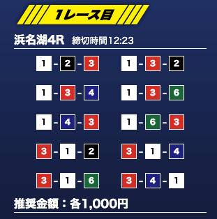 - 推奨舟券代:1万円(1点1,000円)