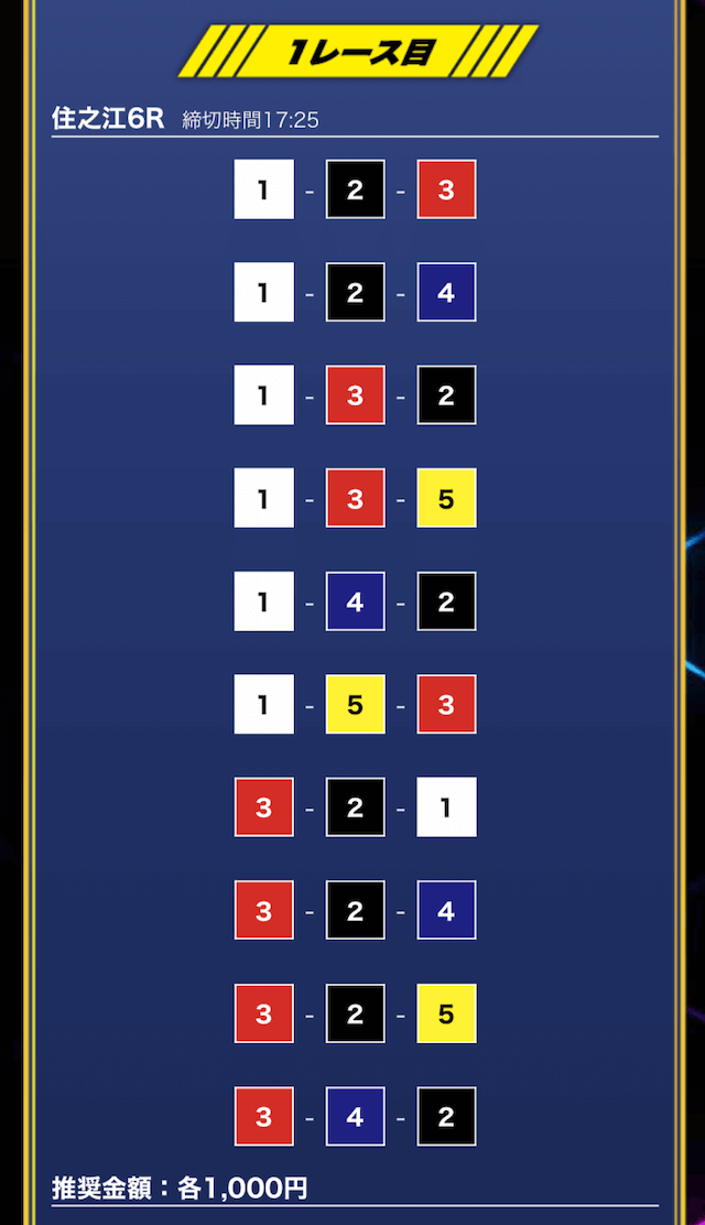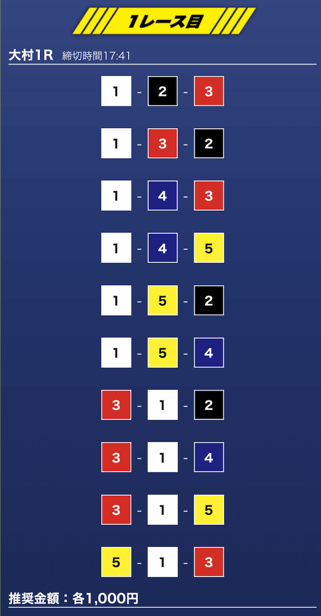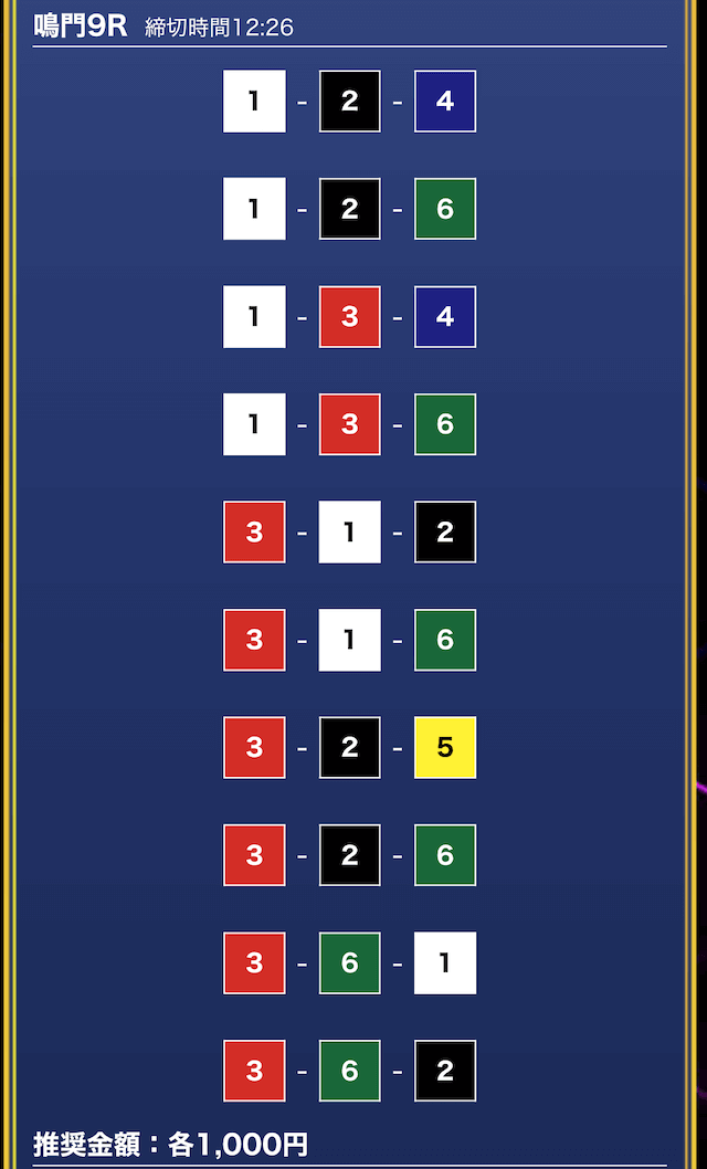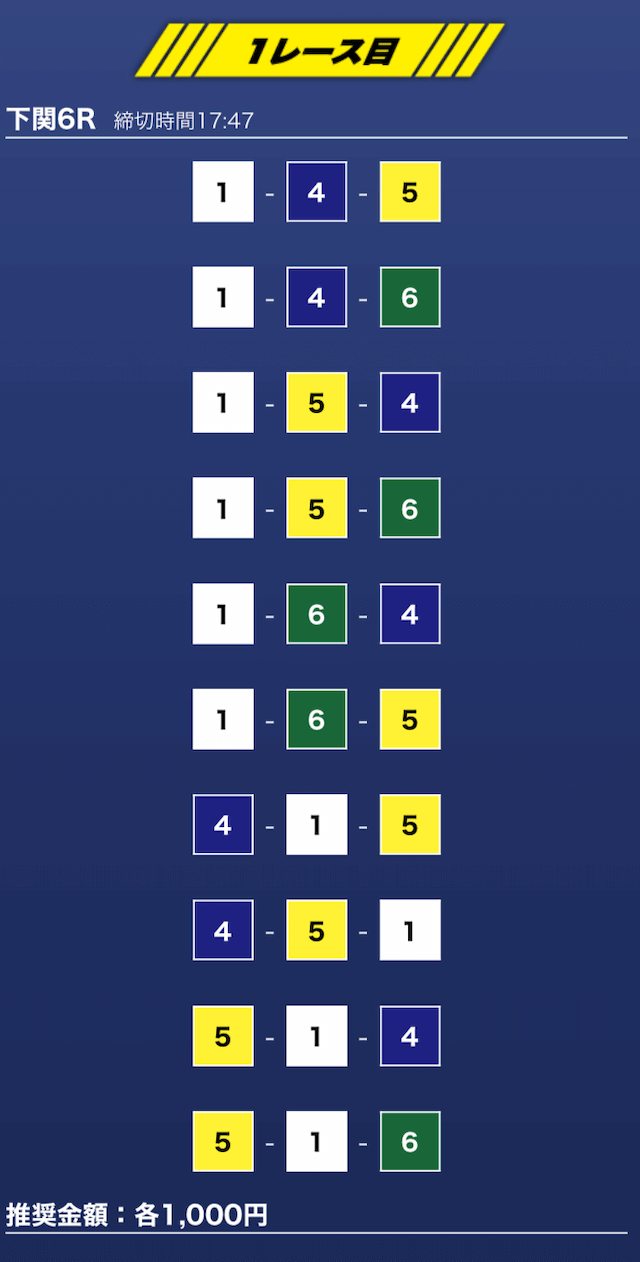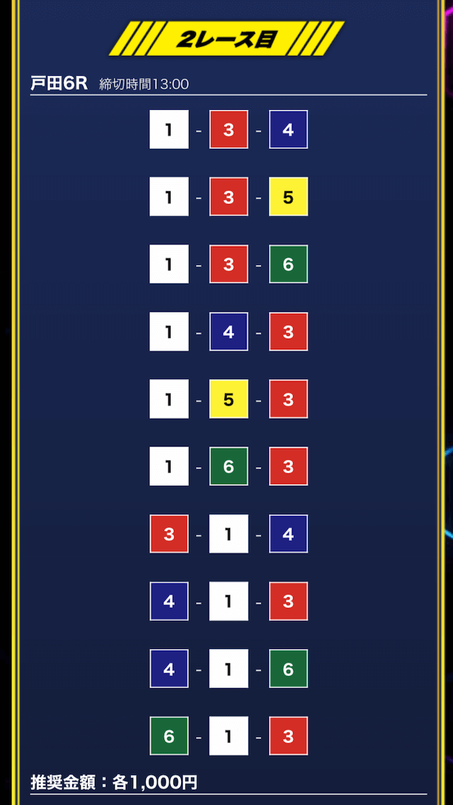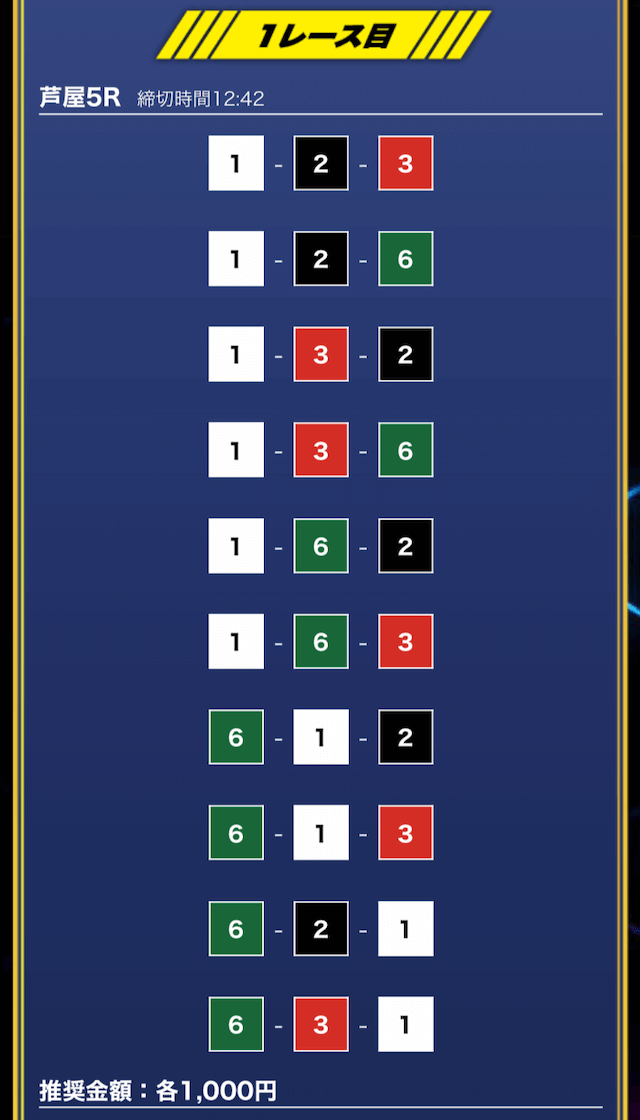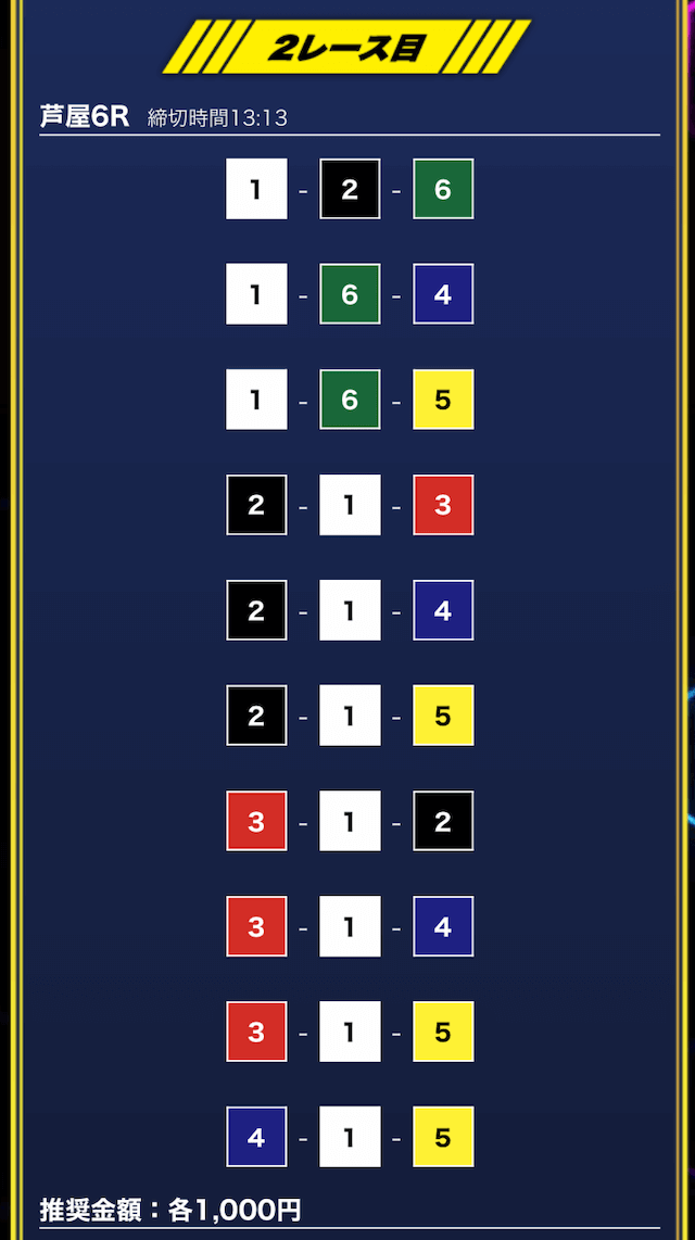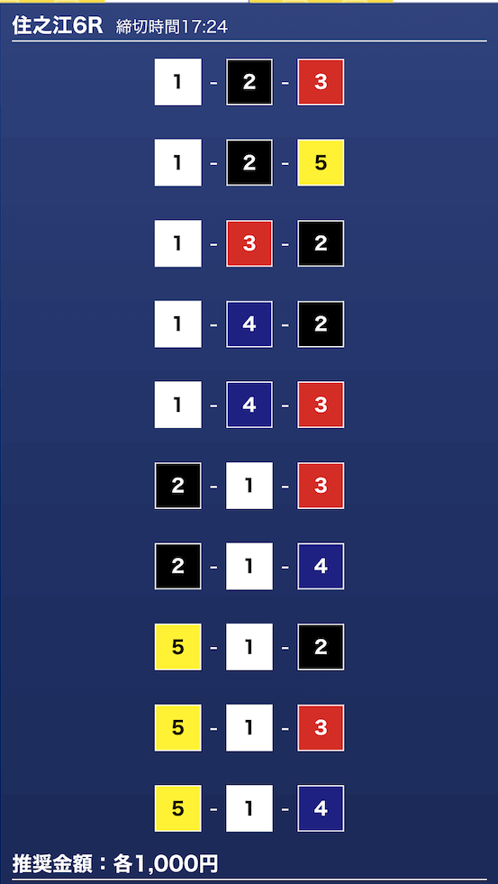 - 推奨舟券代:1万円(1点1,000円)