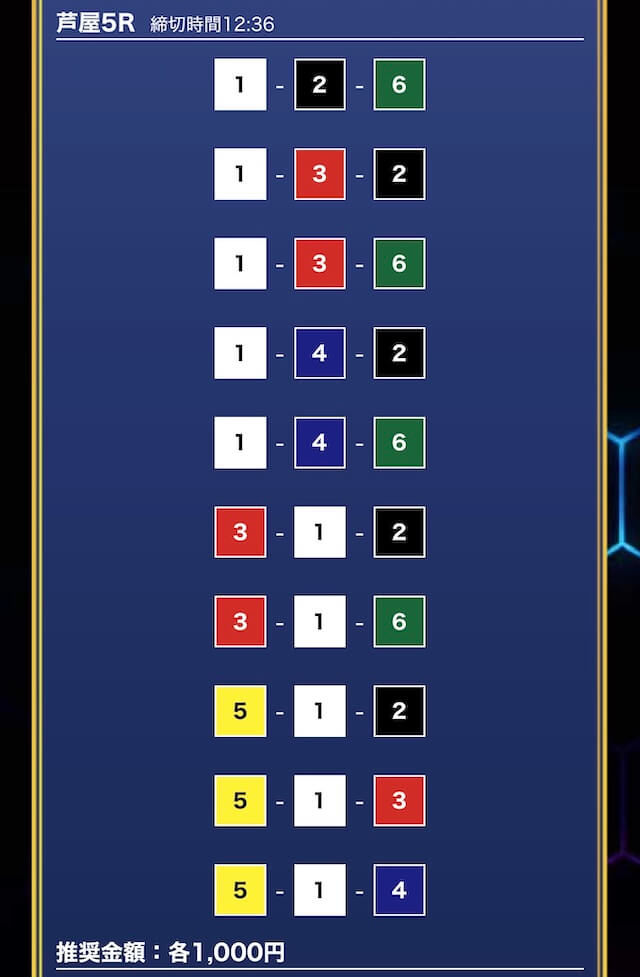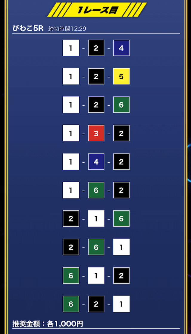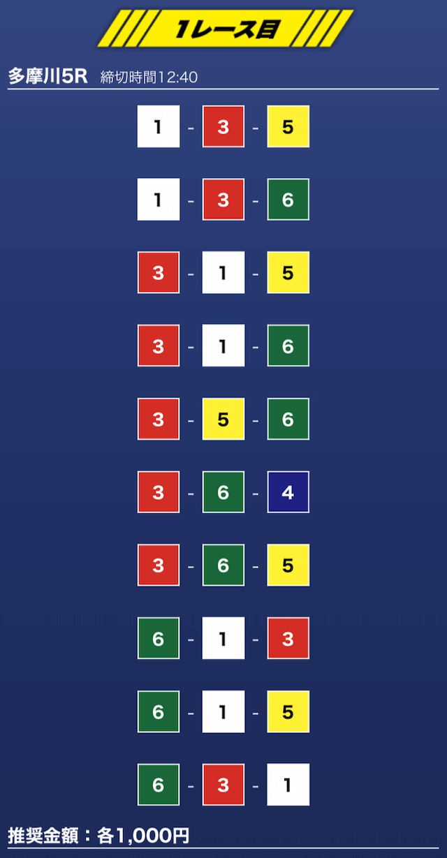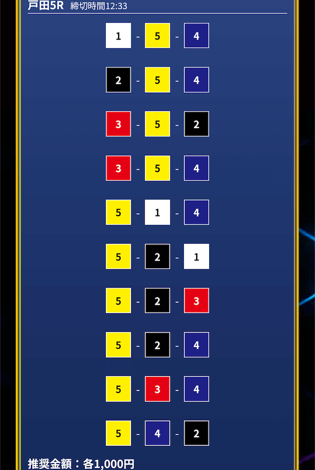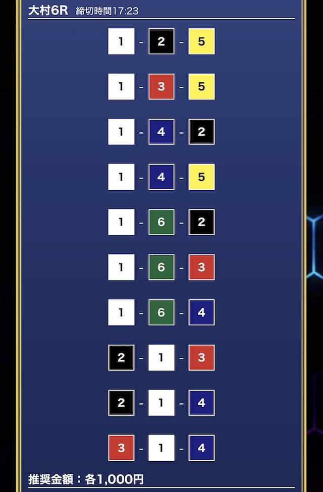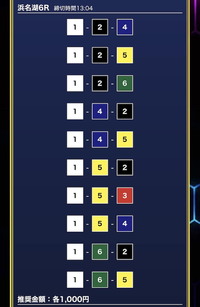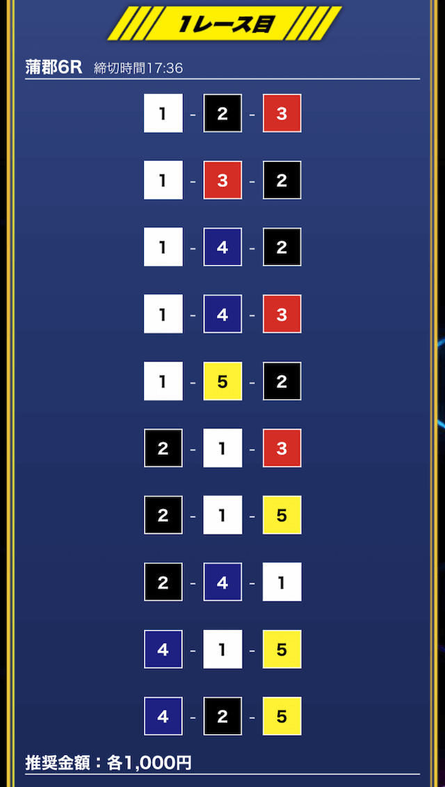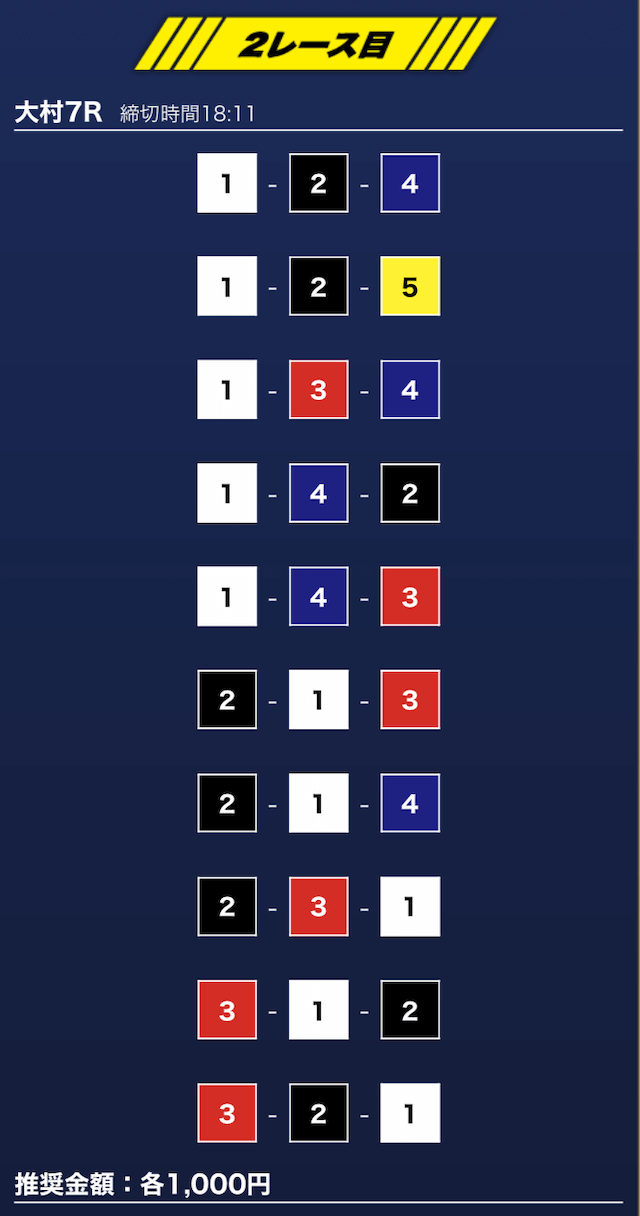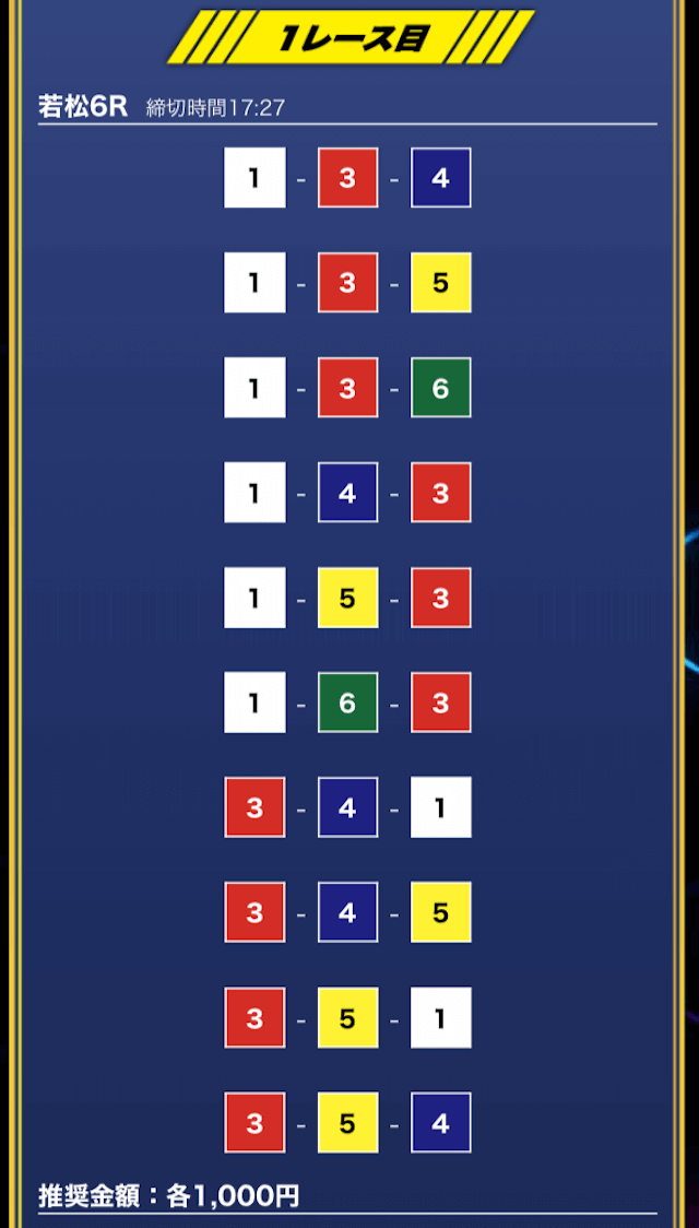 - 推奨舟券代:1万円(1点1,000円)