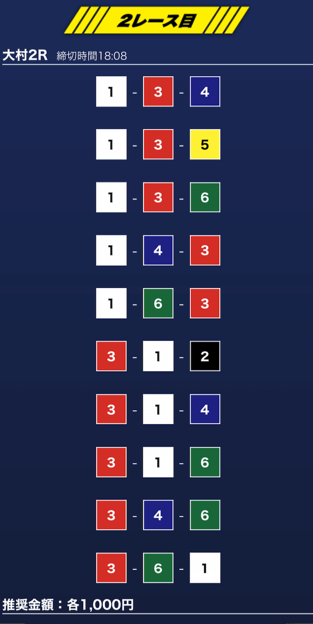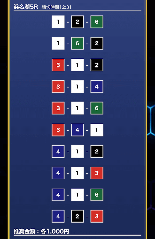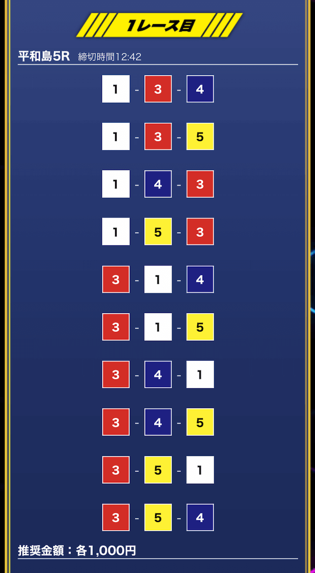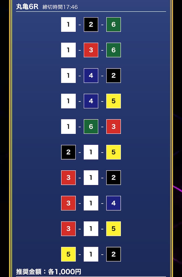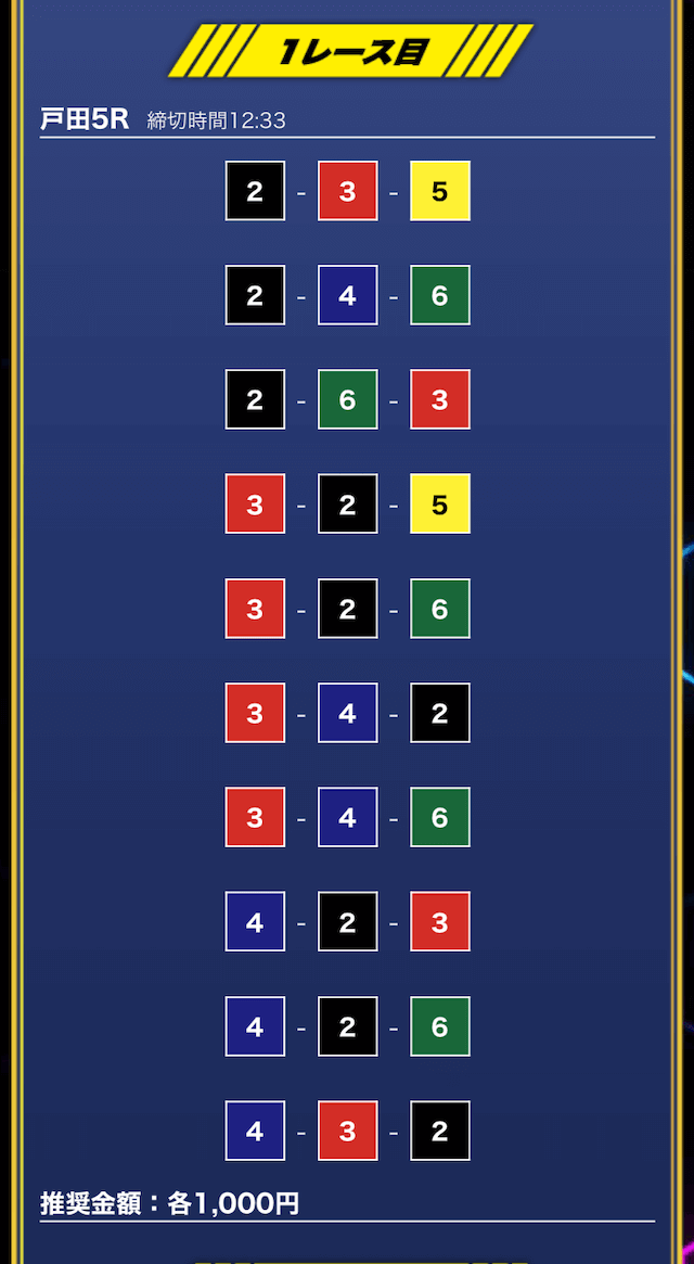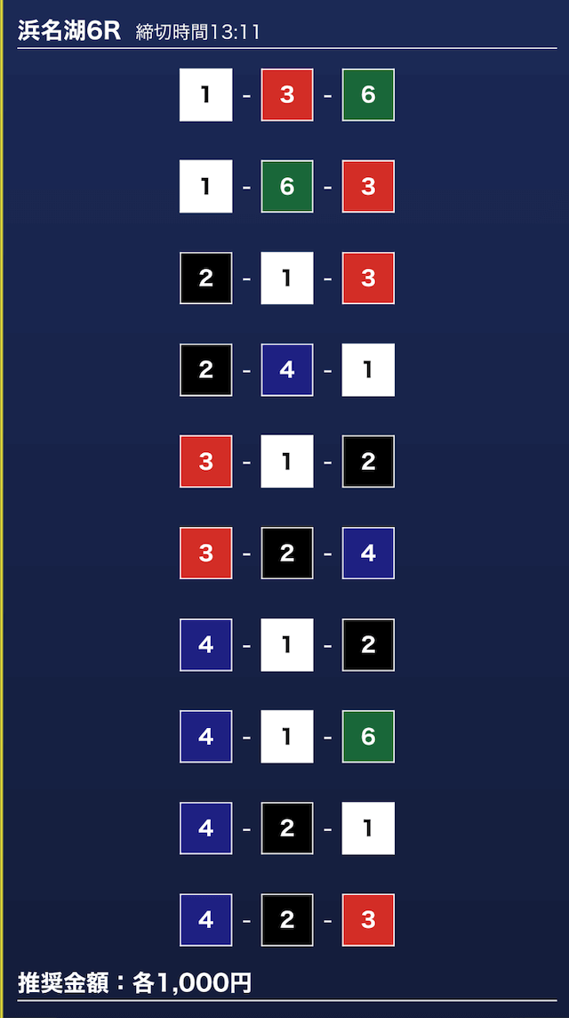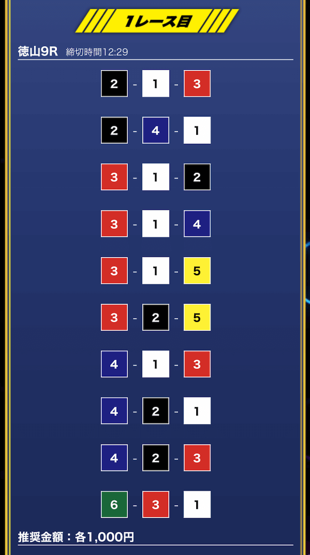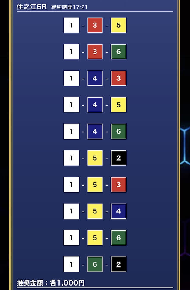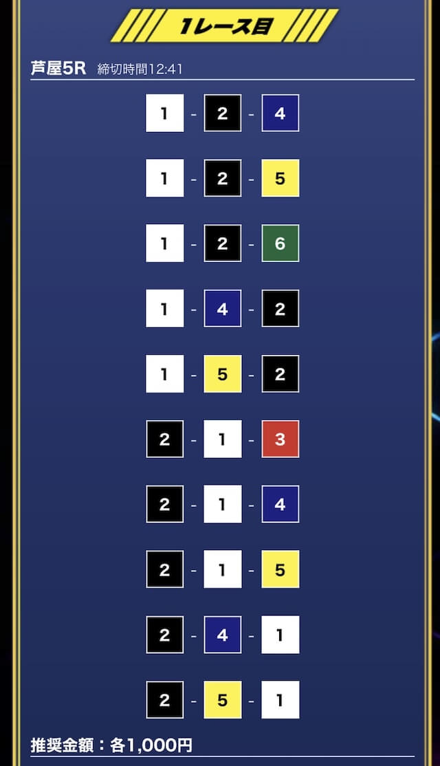 - 推奨舟券代:1万円(1点1,000円)