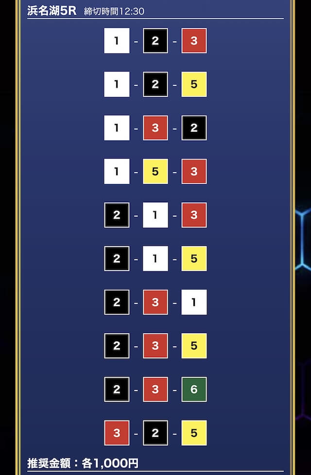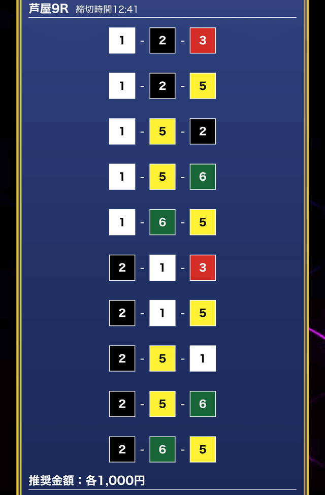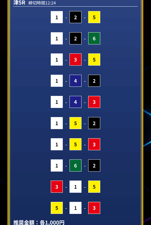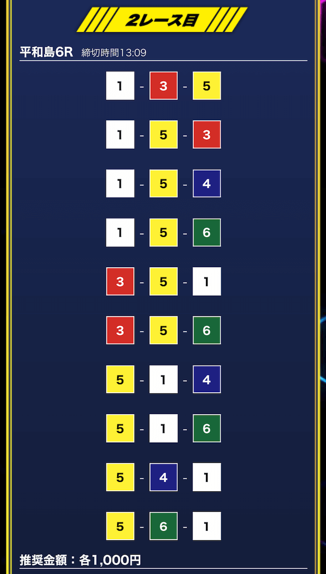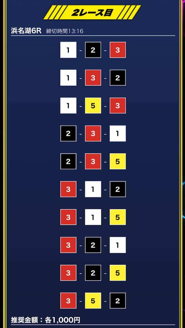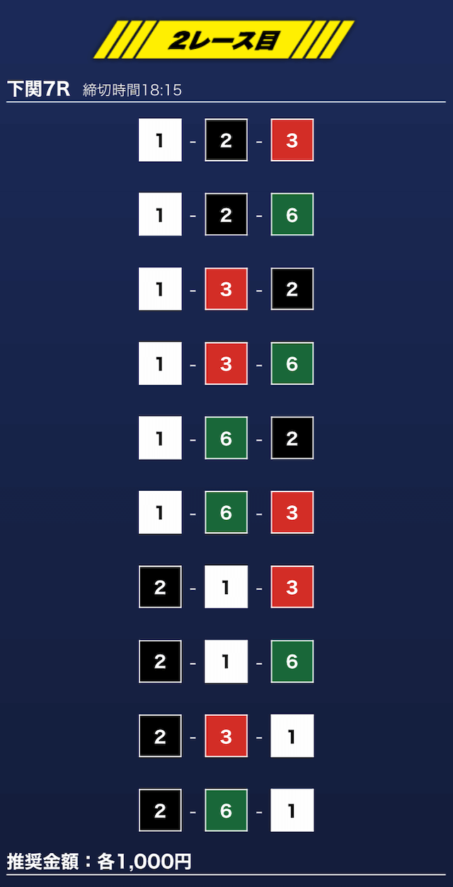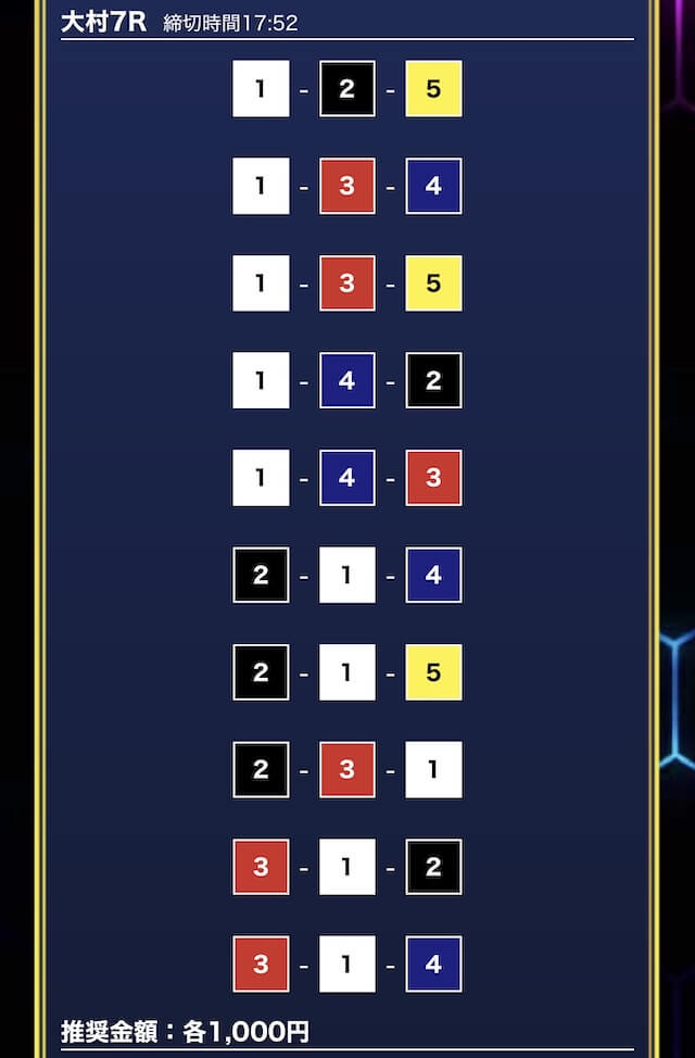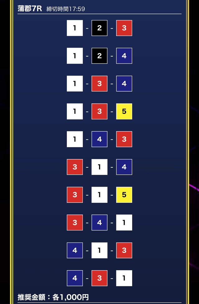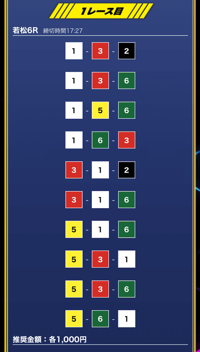 - 推奨舟券代:1万円(1点1,000円)