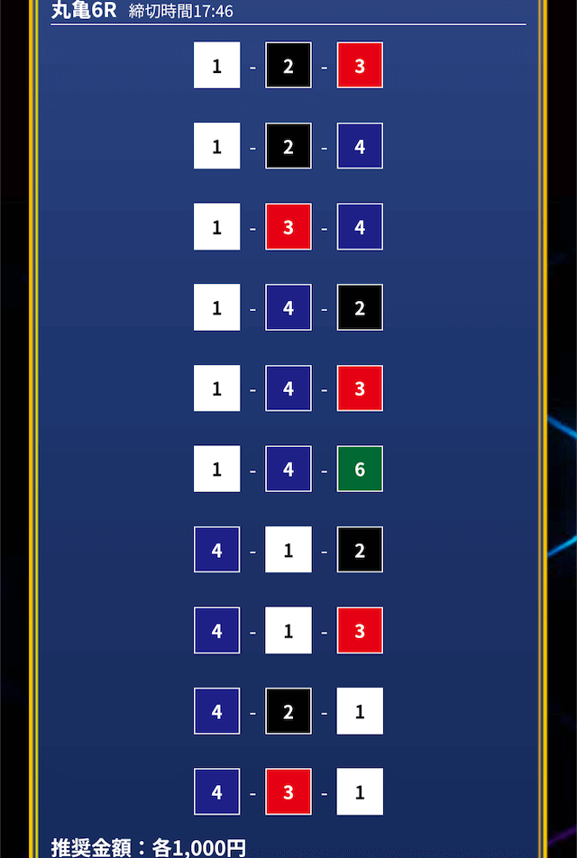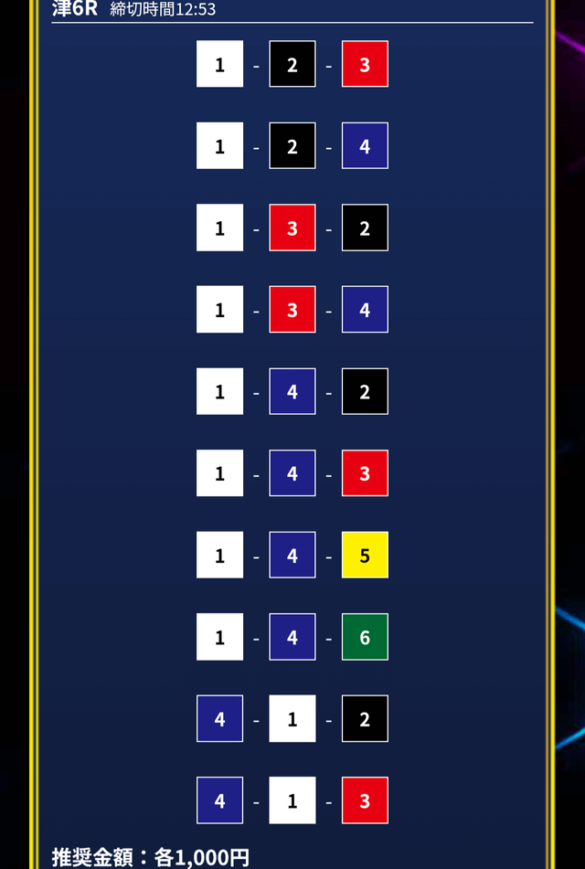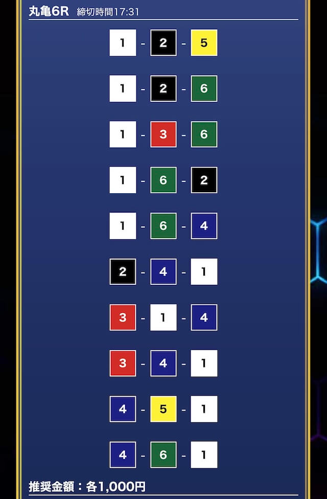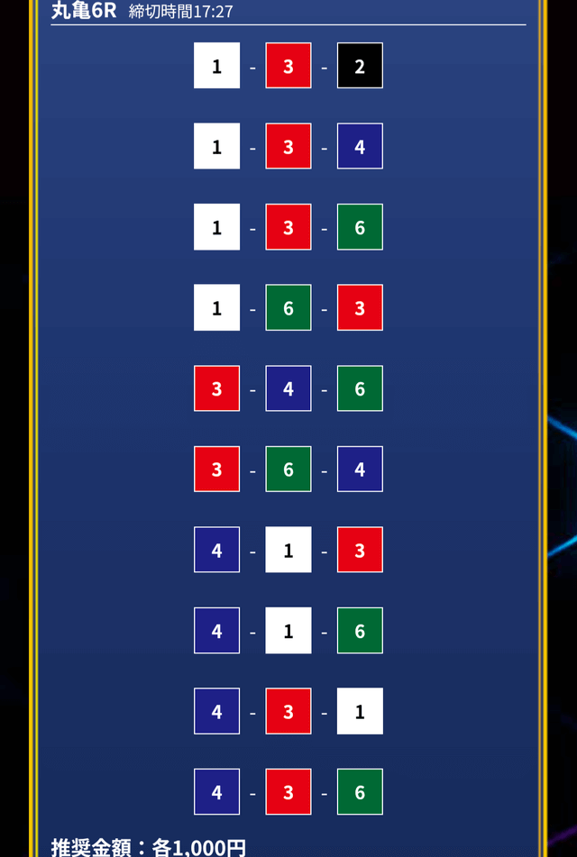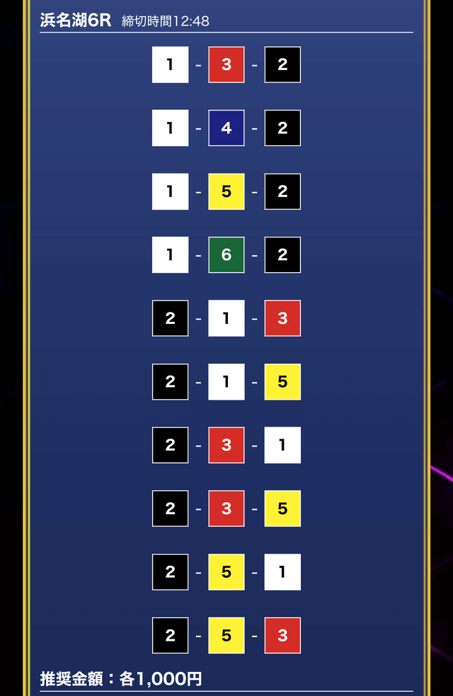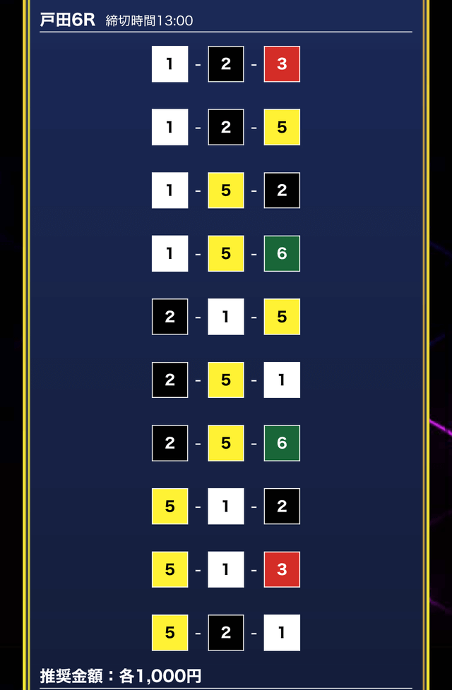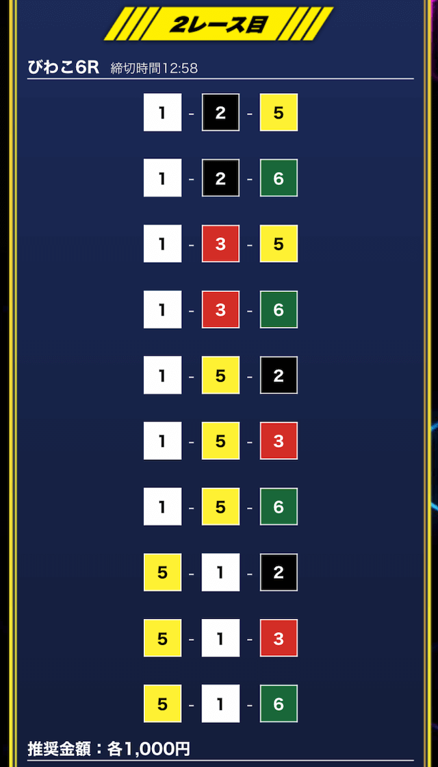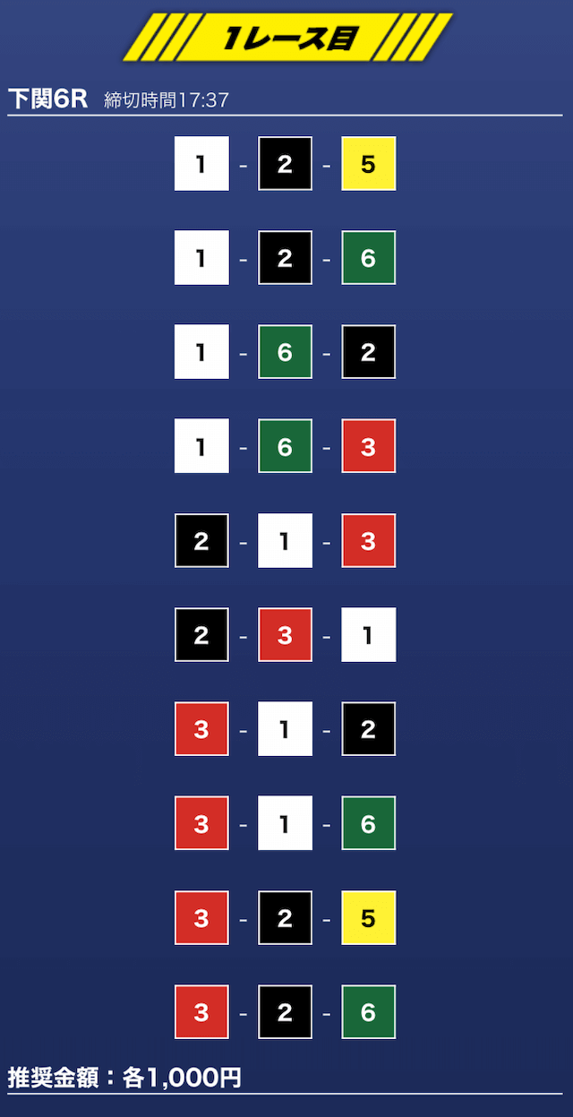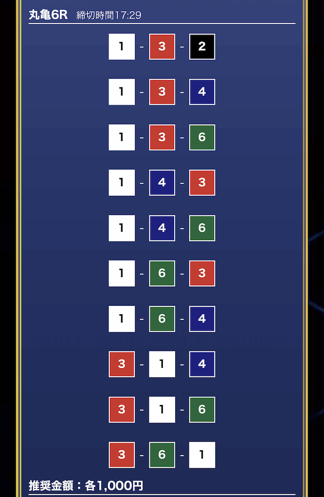 - 推奨舟券代:1万円(1点1,000円)