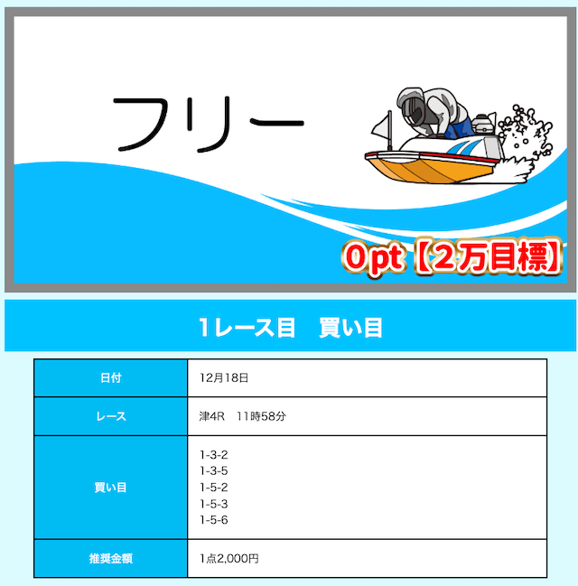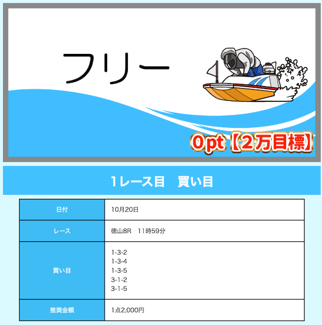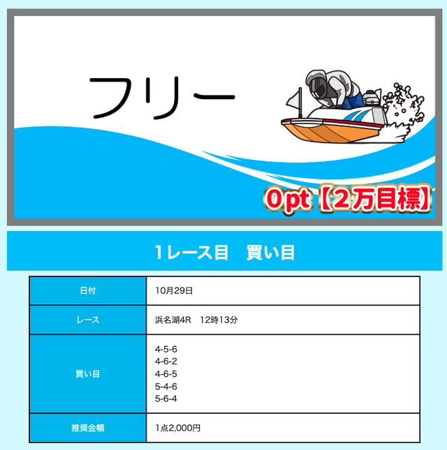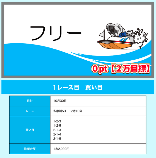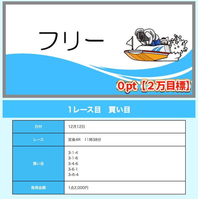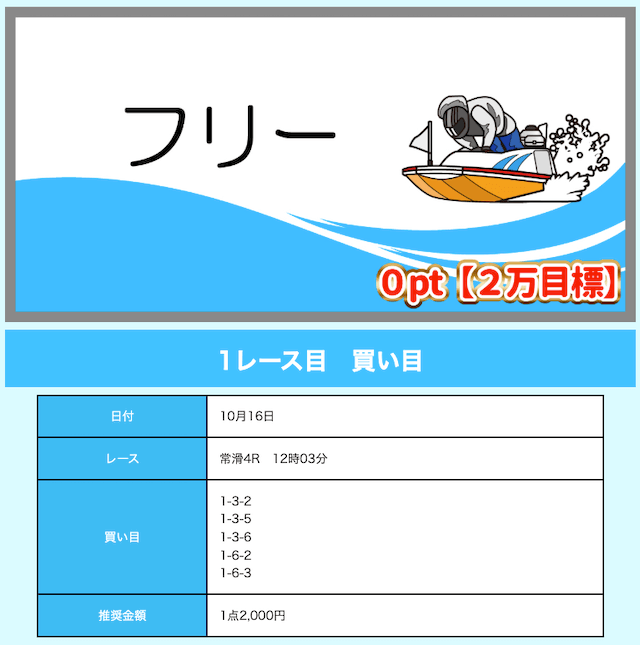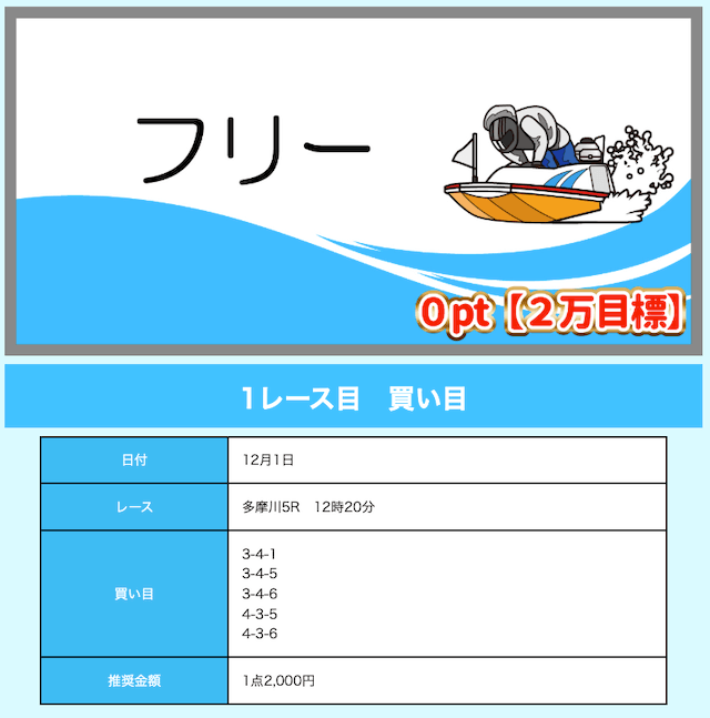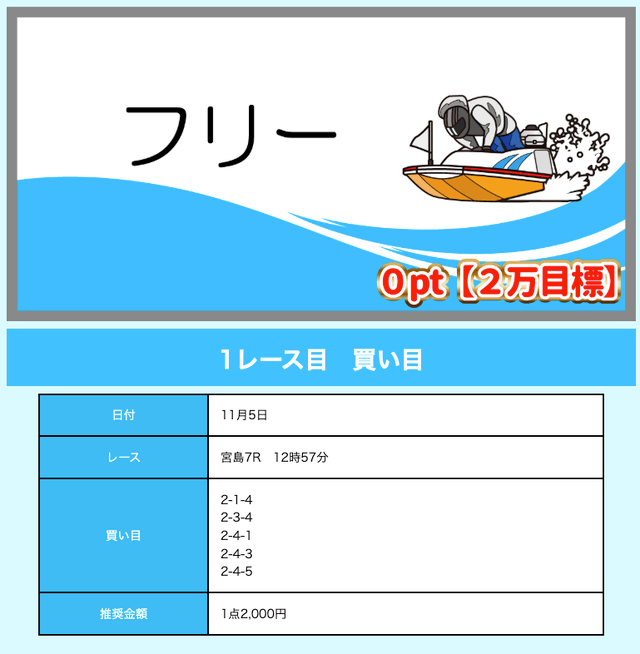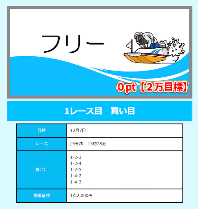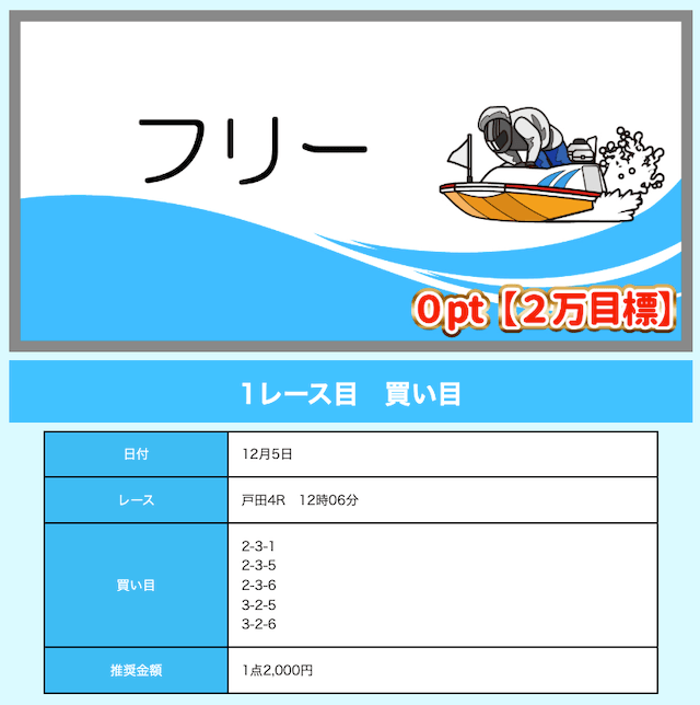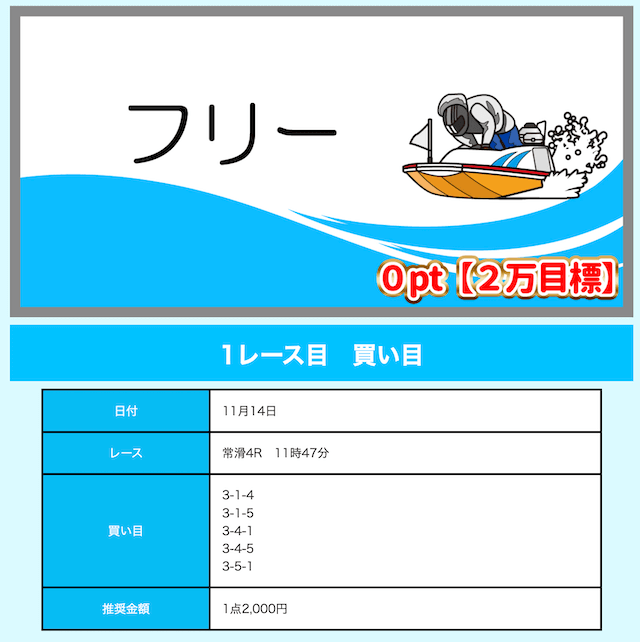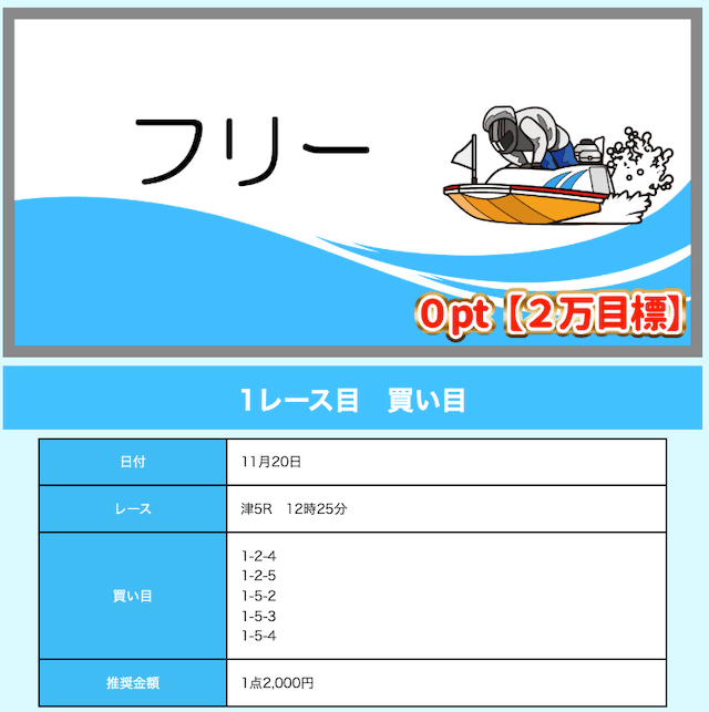 - 舟券代が1万円固定と比較的安め(有料予想)