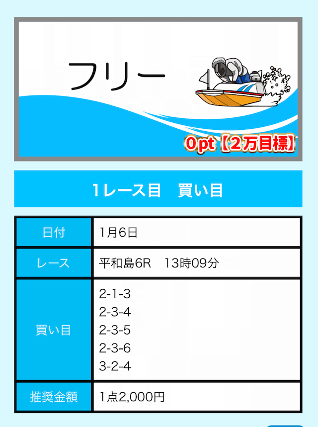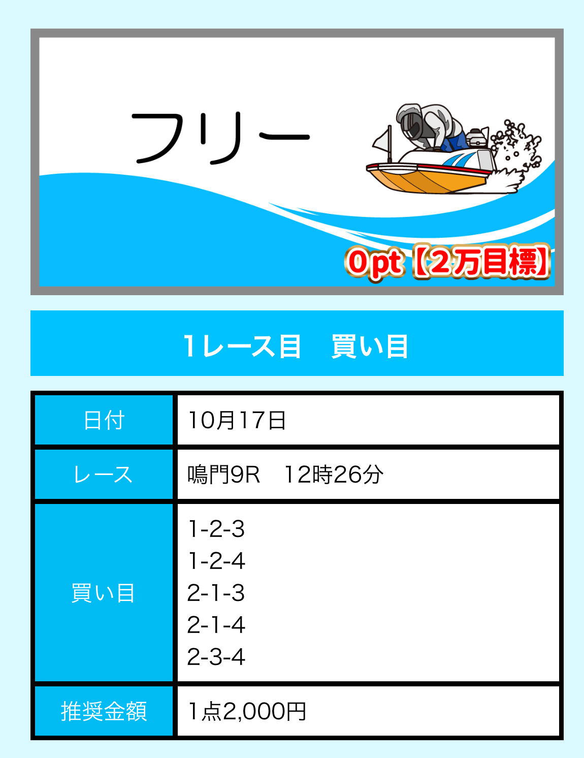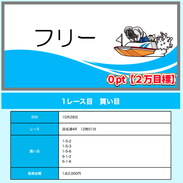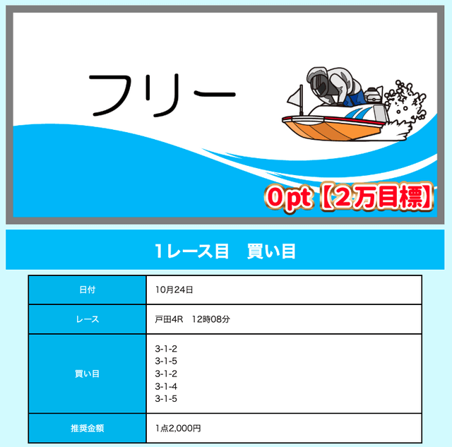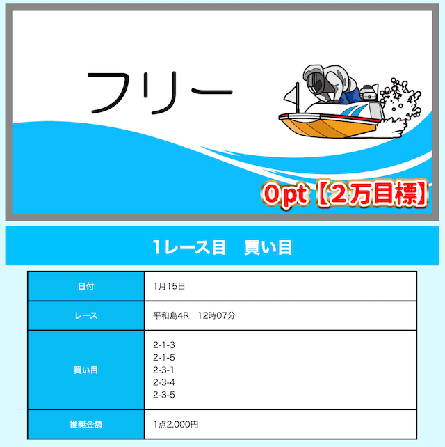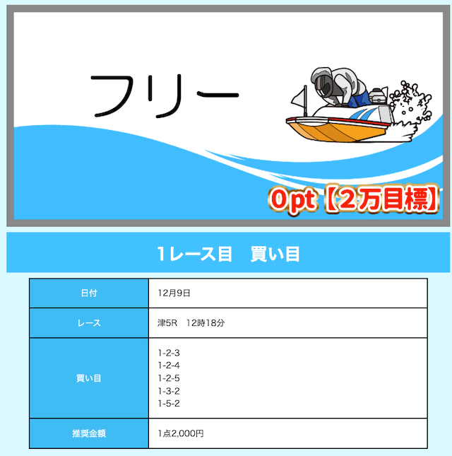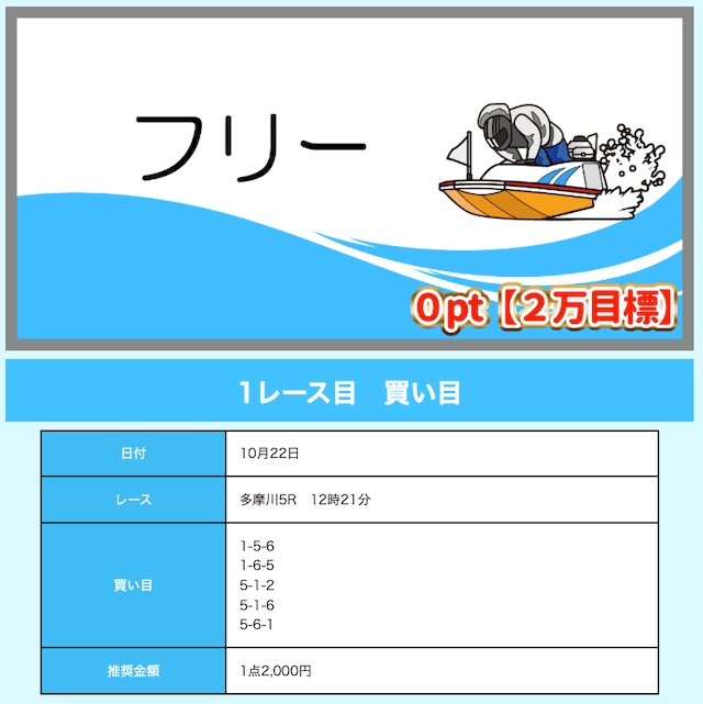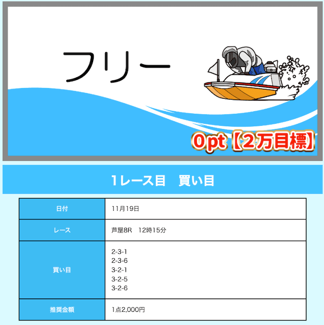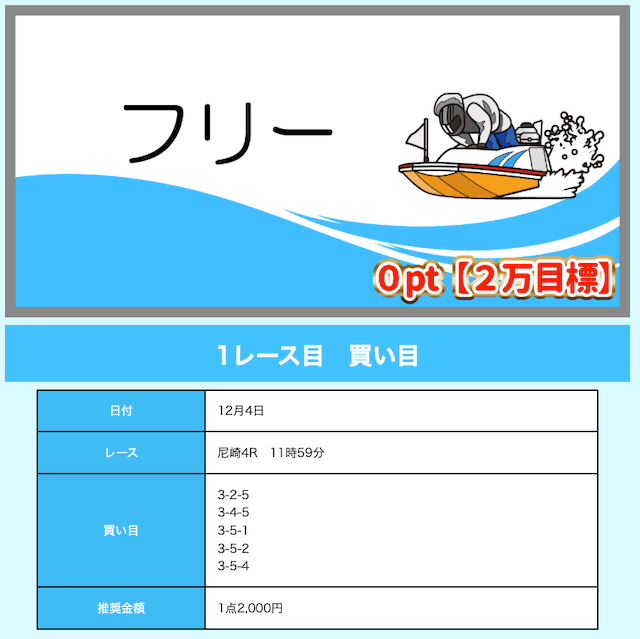 - 舟券代が1万円固定と比較的安め(有料予想)